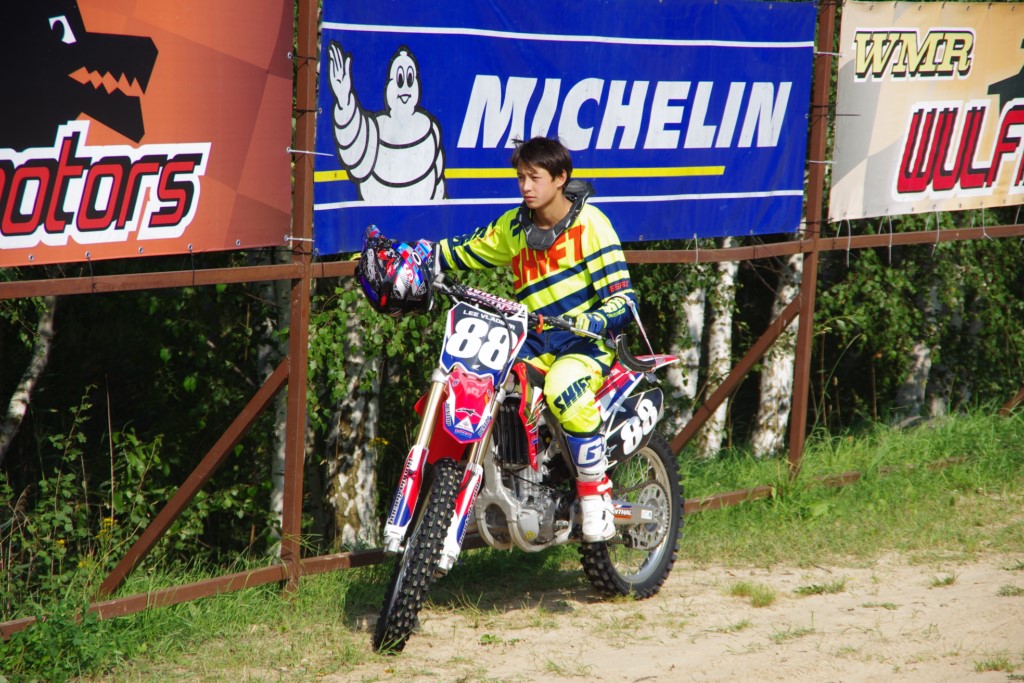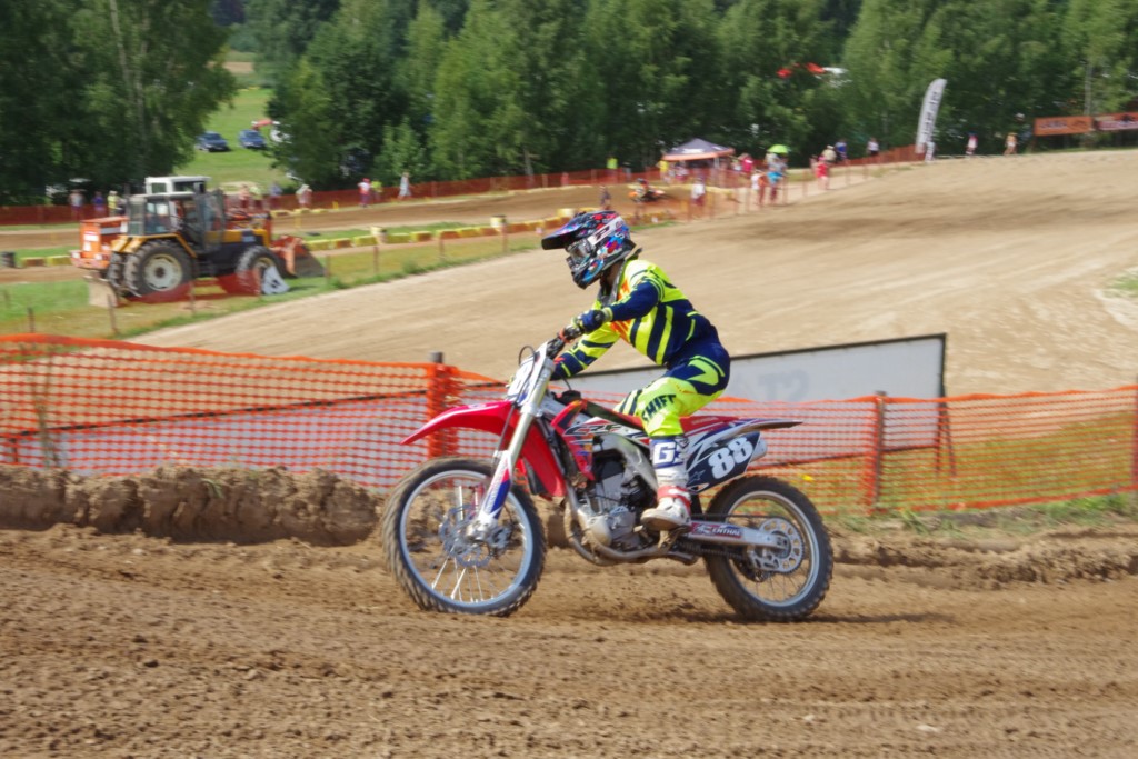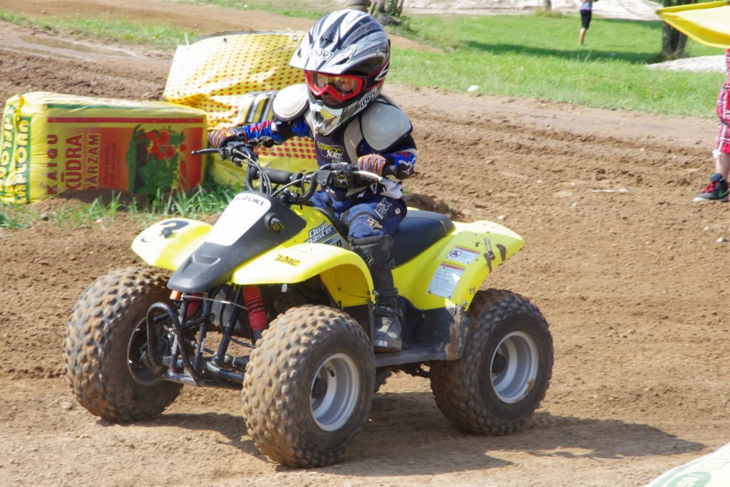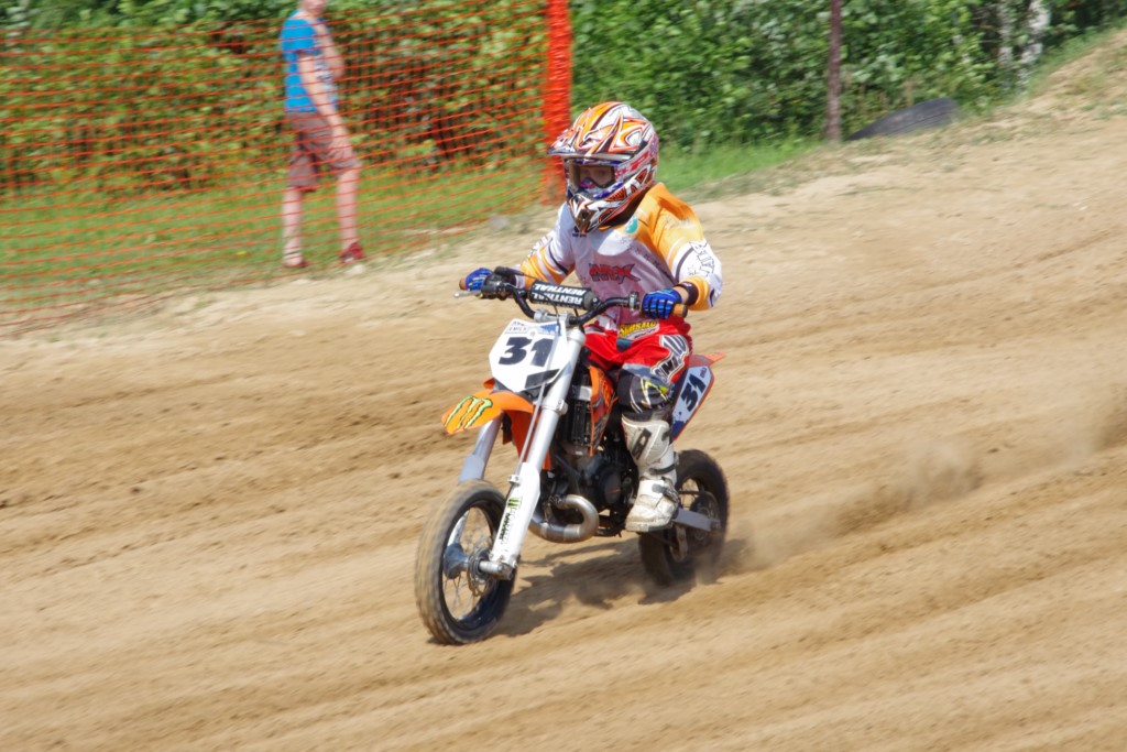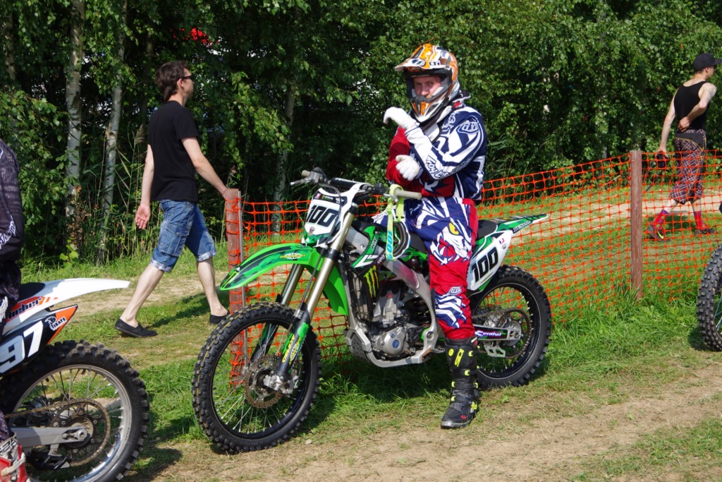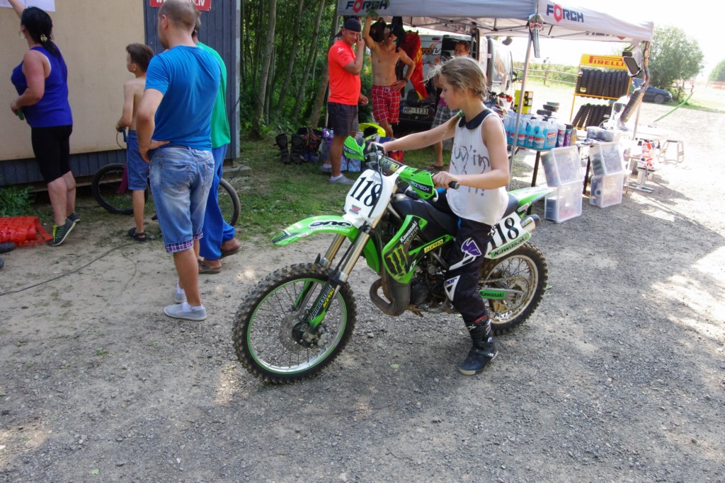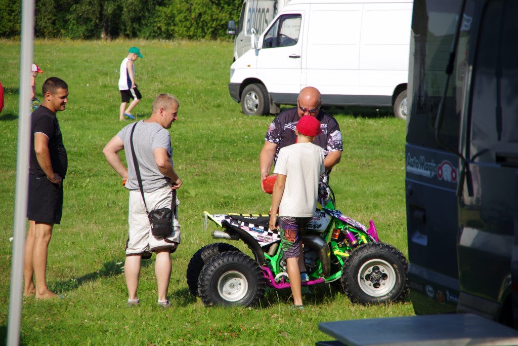 Da', kaukā šogad motokrosus pabildēt nesanāk - šitais man šajā sezonā pirmais. Man autiņa kompis Zorģos ēnā rādīja āra temperatūru 34 !!!. Kaukāda baigā vietējā Taškenta ... nu, Kazahijas motobraucēji ar' tur piedalījās. Pabildēšanai laiku biju izbrīvējis un tā doma man sākotnēji bija šai' datumā pabildēt man mājvietai blakus esošu Bruno Moto motošosejas atklāto treniņa dienu Biķeros, bet pārvarēju slinkumu un aizskrēju uz Zorģiem paskatīties, kā Aināram ar tām lietām, un ... tie jaunieši un bērneļi jau vairāk vērti, kā tie vecie rukši uz piķa...