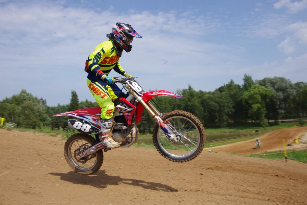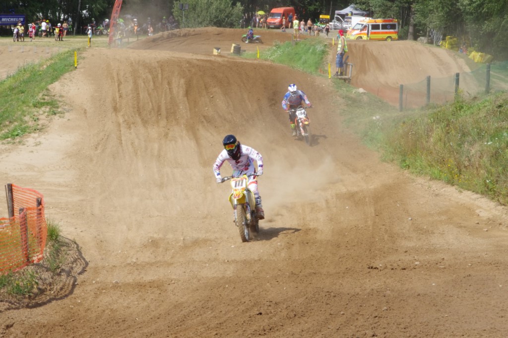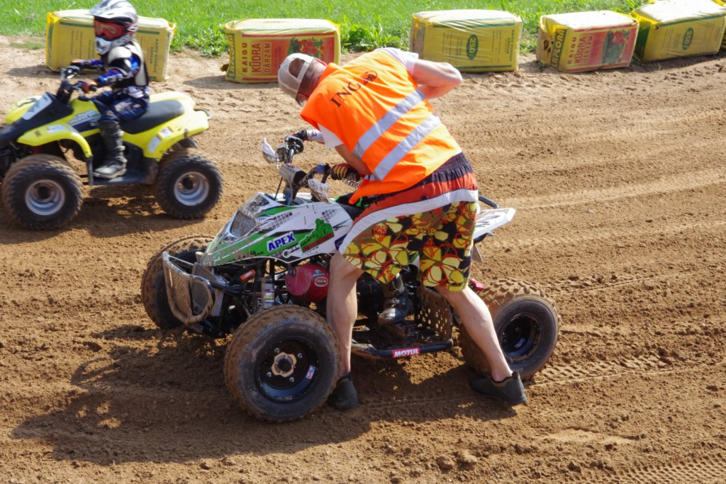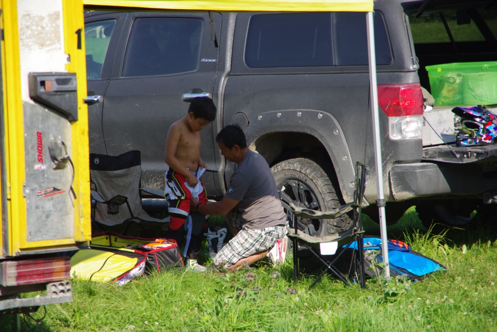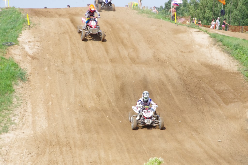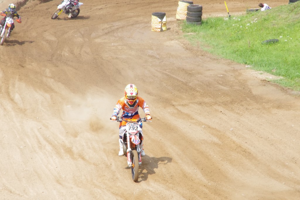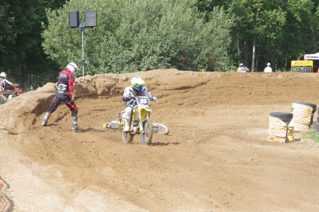 Da', kaukā šogad motokrosus pabildēt nesanāk - šitais man šajā sezonā pirmais. Man autiņa kompis Zorģos ēnā rādīja āra temperatūru 34 !!!. Kaukāda baigā vietējā Taškenta ... nu, Kazahijas motobraucēji ar' tur piedalījās. Pabildēšanai laiku biju izbrīvējis un tā doma man sākotnēji bija šai' datumā pabildēt man mājvietai blakus esošu Bruno Moto motošosejas atklāto treniņa dienu Biķeros, bet pārvarēju slinkumu un aizskrēju uz Zorģiem paskatīties, kā Aināram ar tām lietām, un ... tie jaunieši un bērneļi jau vairāk vērti, kā tie vecie rukši uz piķa...