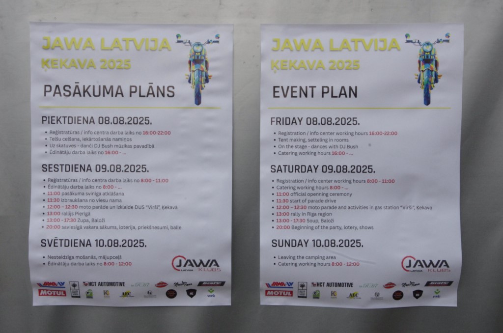"Outdoor Riga 2025" apmeklējuma laikā JAWA stendā apsolīju pabildēt "JAWAfest 2025", kas notika Ķekavā, jo JAWA/ČZ manā sportista un motomīlēšanas karjerā tika spēlējusi būtisku lomu. Nu, kaut vai, tas, ka pirmoreiz par republikas čempionu skijā kļuvu Biķeros, slēpojot aiz Dakāras enduro leģendas "banānu JAWA". Iespaids par pasākumu - vērienīgs pasākums, interesants, pat man, tikai, kā vērotājam, nevis dalībniekam. Piedalījās +/- 200 JAWAs/ČZ/VELOREX motobraucēji ar atbalstītājiem. Atpūtas komplekss "Kāli" - super! Pprotams, satiku dažas pazīstamas vecas un ne tik vecas sejas, pabazarēju. Pamanījos arī klāt esošajam Čehijas vēstniekam privāti paust atzinību par viņa ieinteresētību un viņa valsts devumu Latvijas motobraucējiem, tajā skaitā, minot arī kādreizējās MOTOKOV aktivitātes Latvijā. Pabildēju, kas pašam subjektīvi acīs iekrita, provējot bildēt arī ko nedaudz objektīvas reportāžas sniegšanas virzienā. Te pieliku klāt arī dažas izstādē "Outdoor Riga 2025" pietaisītās agrāk nekur nepublicētās bildes JAWA stendā.