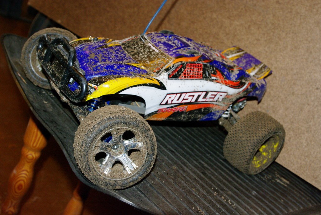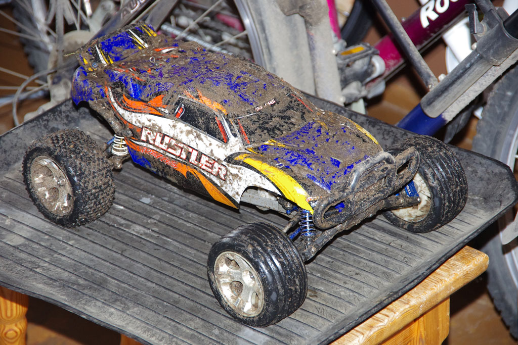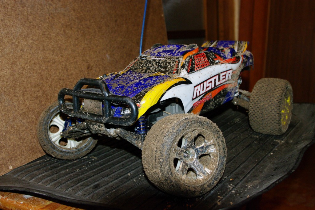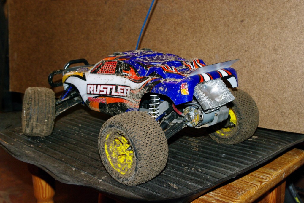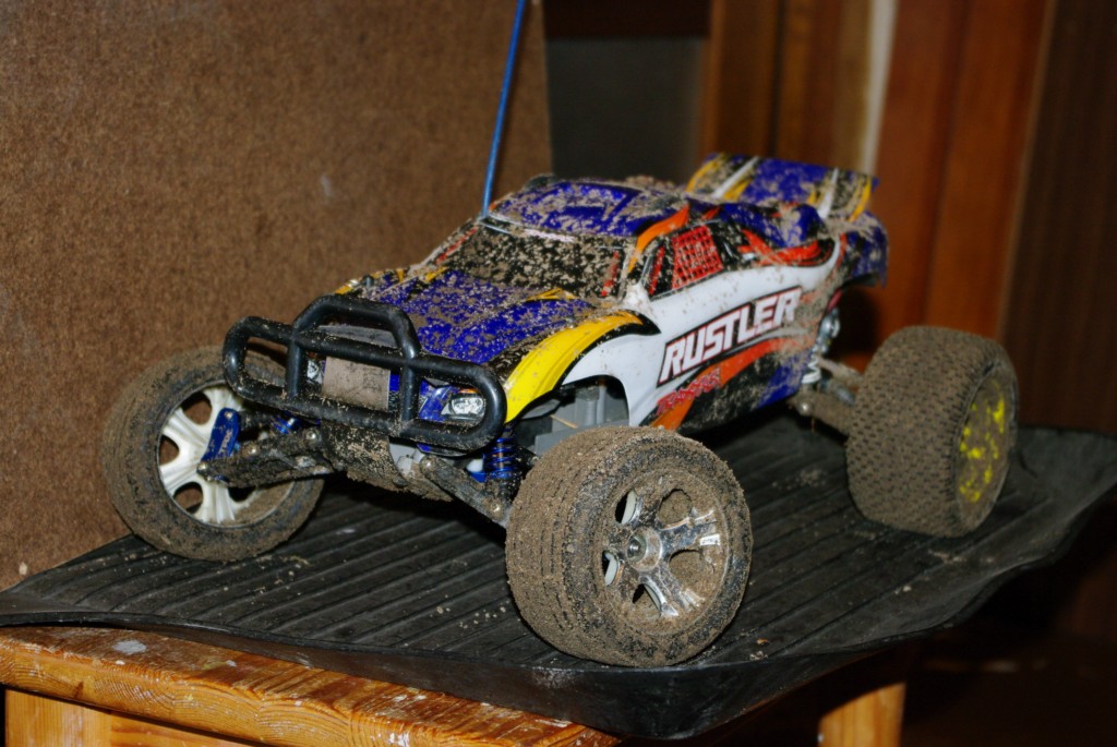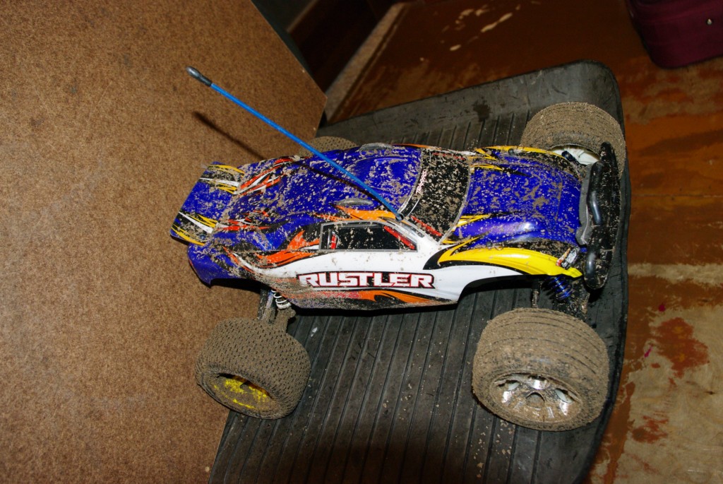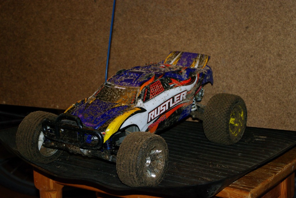 22.10.2011. Drīz būs gads, kā šitamējo modeli trenkāju un skrūvēju. Viss furičī labi. Šķiet, ka beidzot esmu sapratis, kā no modeļa orģinālā dzinēja izspiest maksimumu. Kā tas man izdevās ir pieskribelēts manas lapas blakus sadaļā par skrūvēšanu un tādām lietām. Bet te pietaisīju dažus bilžukus, kāds izskatās RUSTLERīt's tiko kā no lietainas un smilšainas trases atvests, un tīrīšanai nolikts. Tagad rudenī un vēlāk - ziemā ar šito modeli ir tā īstā braukšana. Vasarā ir ... pārāk karsti kā man, tā modelim.