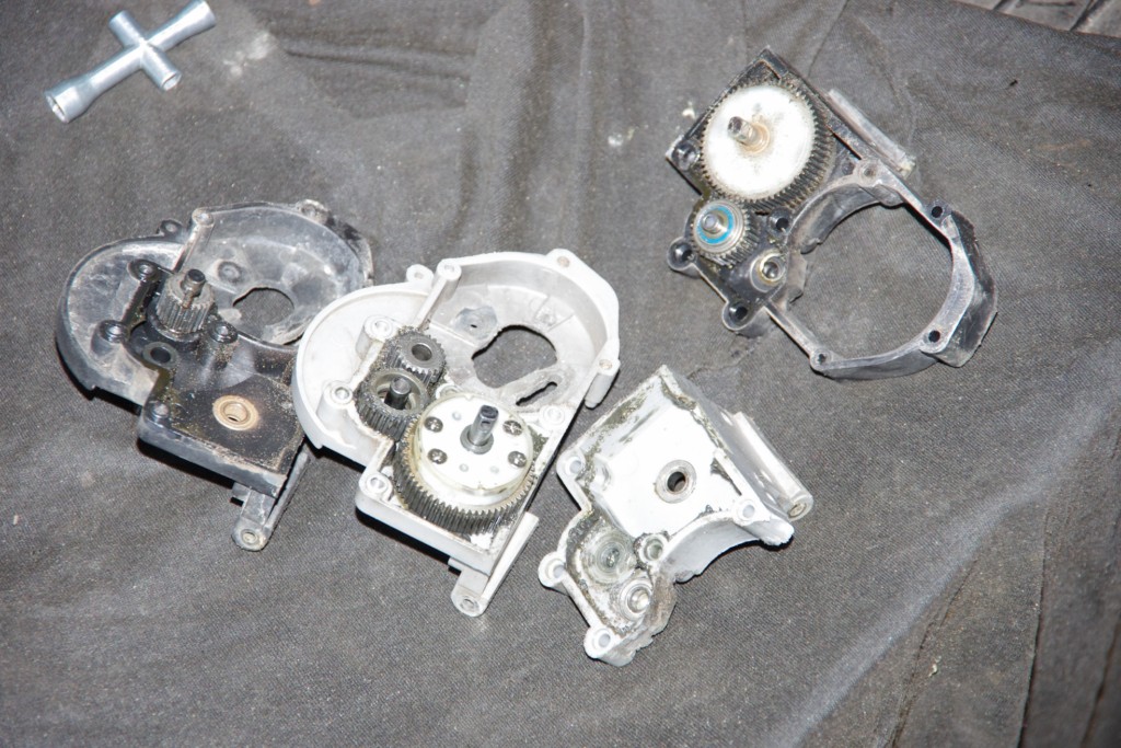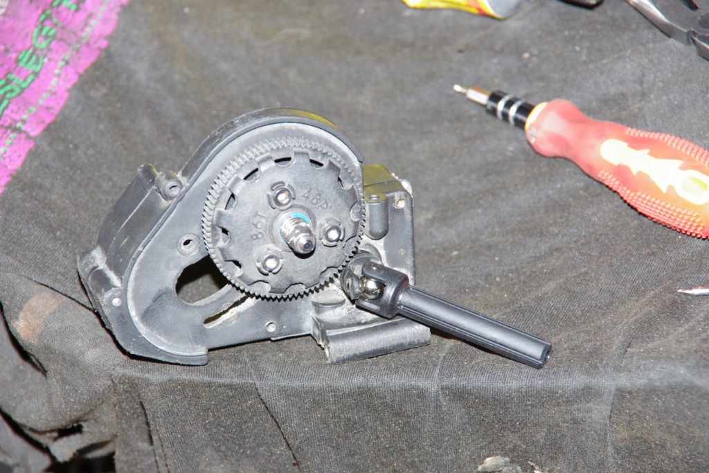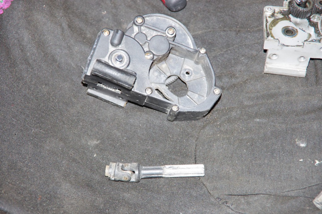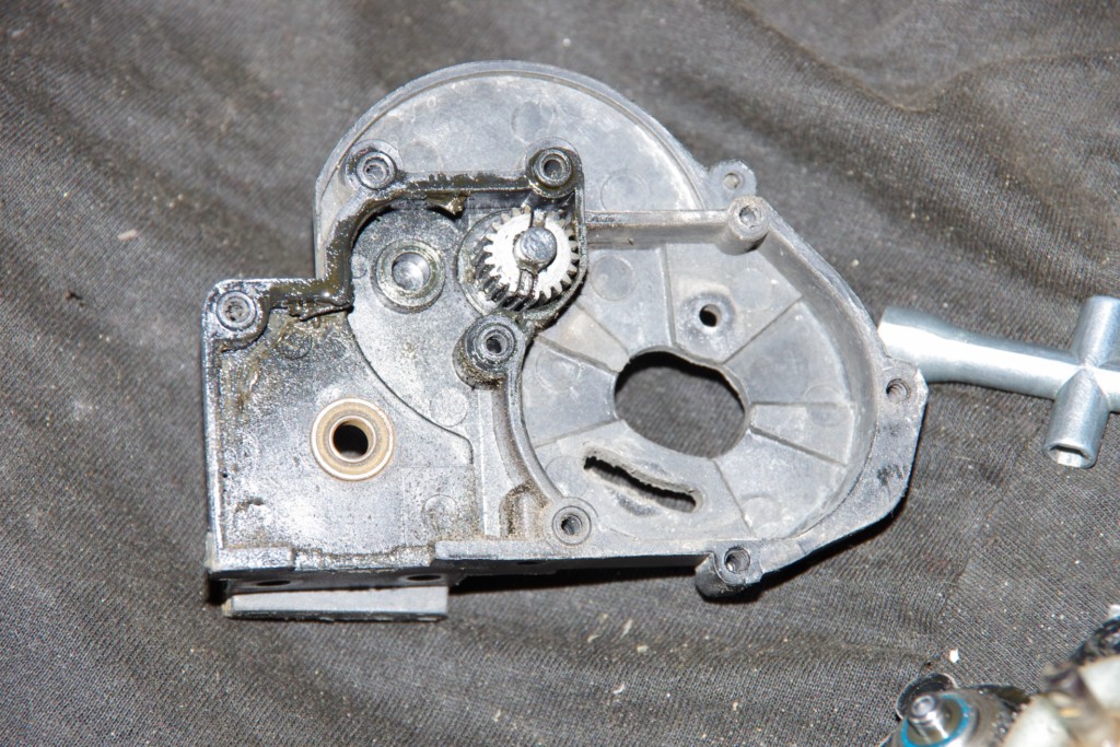 Mana visai bezkaunīgā attieksme pret orģinālo Titan T12 dzinēju darīja savu un matoriņa oglīšu suku saturošās atsperu plāksnes visai drīz nodega. Pat īss brīdis ar nobloķētiem riteņiem pie pilnas jaudas šito matorīti piebeidz. Tā viš' i'. Fiksi atradu līdzīgu oglīšu bloku no kompresora automašīnas riepu pumpēšanai. Brītiņu man jaunizveidotais dzinējs visai labi kalpoja, bet biju jau iegādājies Tamiyas vigli tjūnētu citu. Labs. Turpināju arī rotaļāties ar manis pārveidoto Titānu, līdz arī šim oglīšu atsperes sadega. Tad atradu kādu lēto Truck Puller zemo apgriezienu matorīti, kam atņēmu suku bloku, ko man ar dažām viltībām izdevās iemānīt Titāna dzinējā. Tā kā jaunizveidotā dzinēja rotors man konstruktīvu iemeslu dēļ nobīdījās pa asi par ~pusotru mm, maksimālais apgriezienu skaits matorītim pamatīgi palēcās, un ar 28 zobu dzinēja zobratu bez slodzes (rokās turēts) ar pilniem apgriezieniem riepas gandrīz sadriskā pa pieskari. Pagaidām uz šosejas nav sanācis izmēģināt, atbilstošas riepas arī vēl neesmu pasūtījis, bet domāju, ka ap 100 km/h vajadzētu skriet. Te kauko no šitā teksta arī ilustrēju: |