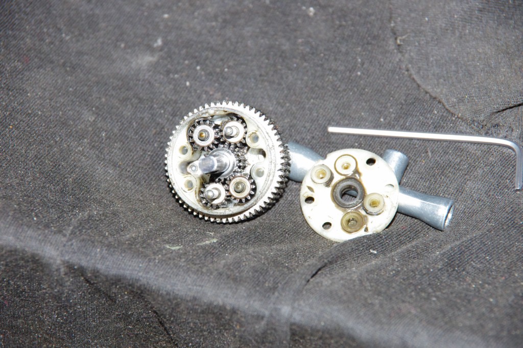 19.05.2013. Sadales kārbā sāka kaukas grabēt un tirkšķēt. Nācās izjaukt un, šaubīgās detaļas nomainot, pārkrāmēt. Brītiņu iepriekš biju jau nomainījis sadales kārbas korpusu, bet vecajā glabāšanai salicis dažas jaunas un dažas vēl labas daļas. "Sakrustoju" labāko no abiem komplektiem. Te bilži par to, kas "lācītim" vēderā: