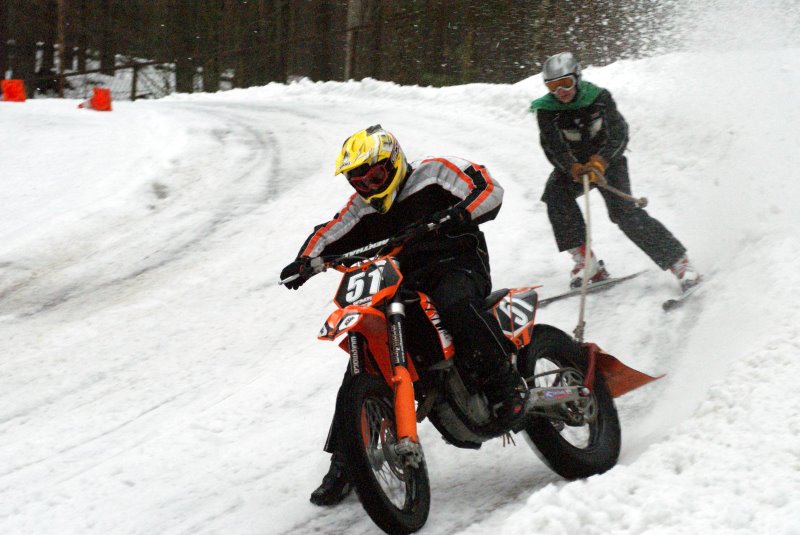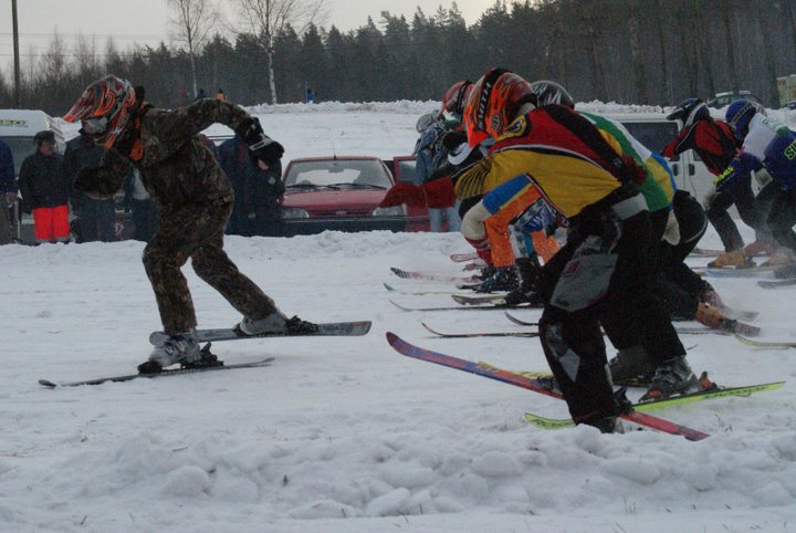 Nezinu, cik ātri tas ir, bet skijoringa trasēs 4taktu MX klašu moči mēdz braukt arī ar pilnu ručku 5.ātrumā. Tas ir vairāk kā 150 km/st. Loģiski, ka lielākas izredzes slēpotājam šajā ātrumā noturēties ir ar tieši ātrumam piemērotām slēpēm. Savukārt, tīra, vai gandrīz tīra ledus trasēs tās lietderīgākās ir kalnu slēpošanas disciplīnai slalomam paredzētās slēpes ar mazāku, vai arī - ar pavisam mazu pagrieziena radiusu.