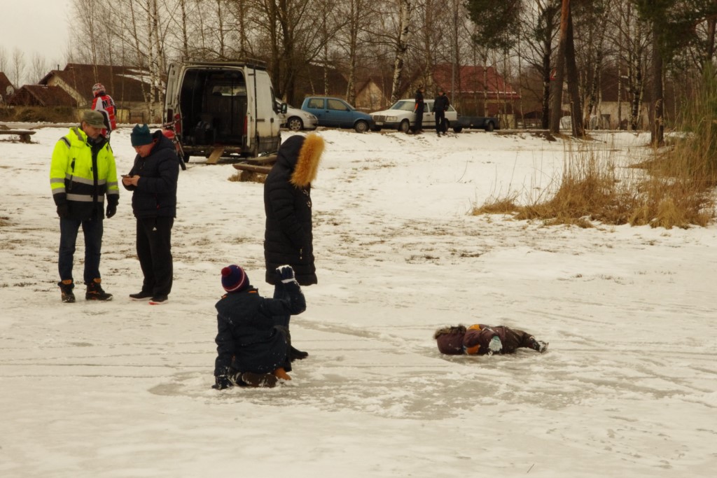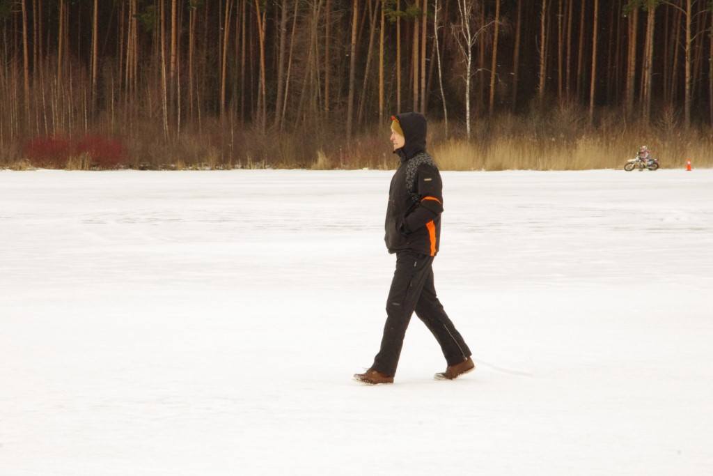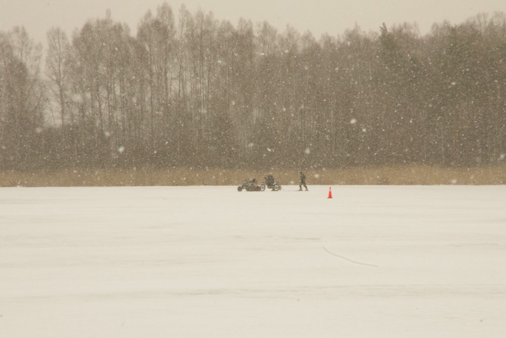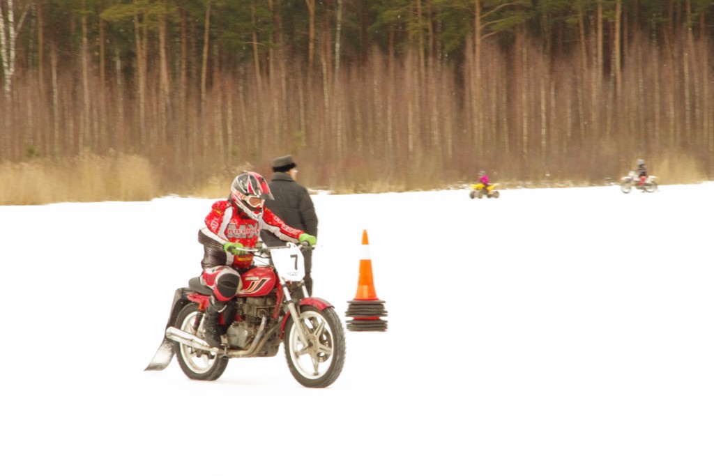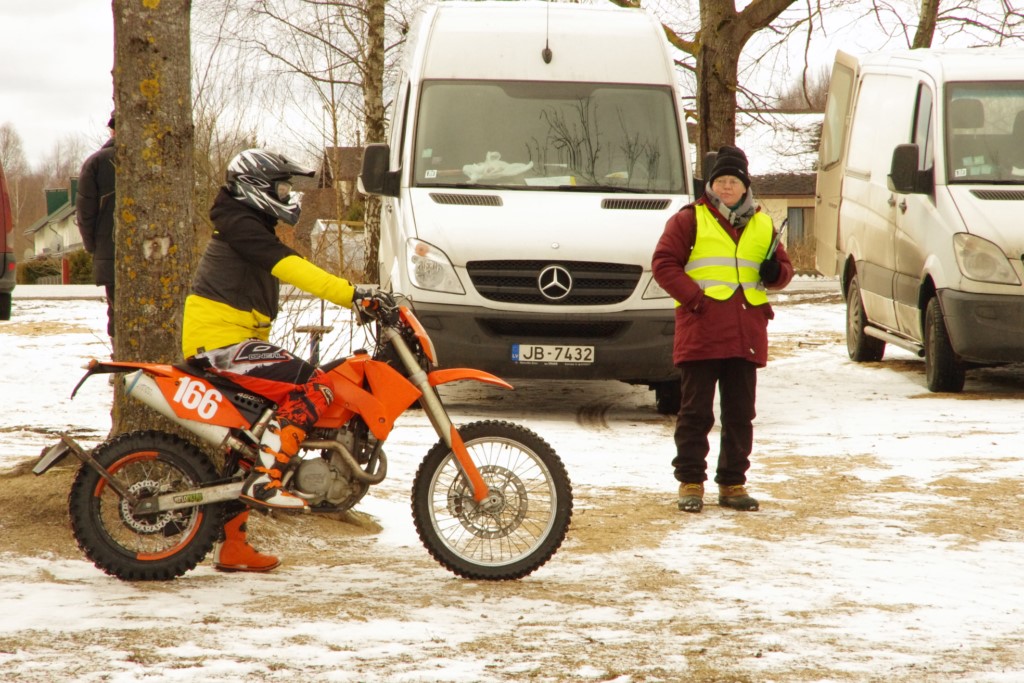 Joprojām ledus, ... bet lielākajā trases daļā riepai bij', kur ieķerties pēc atkušņiem vēl atlikušajā un nu jau sasalušajā sļurā. Braukšana bij', pat, diezgan ātra. Dalībnieki tā pamaz. Pats noslēpoju trīs klasēs, un tādēļ man saknipsējās tikai daži pirmsstarta mūļi....