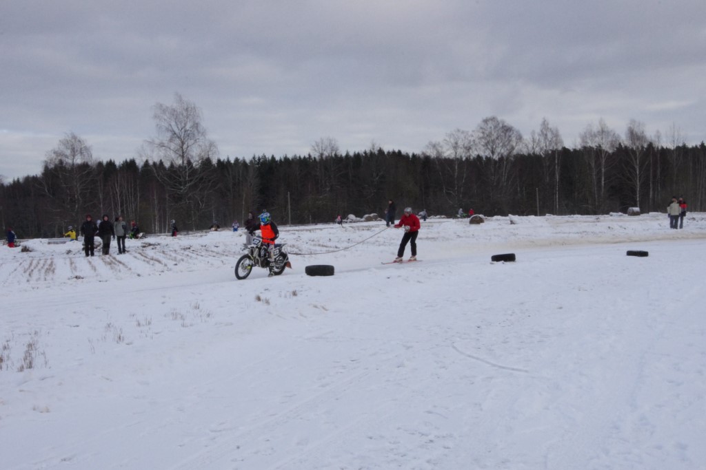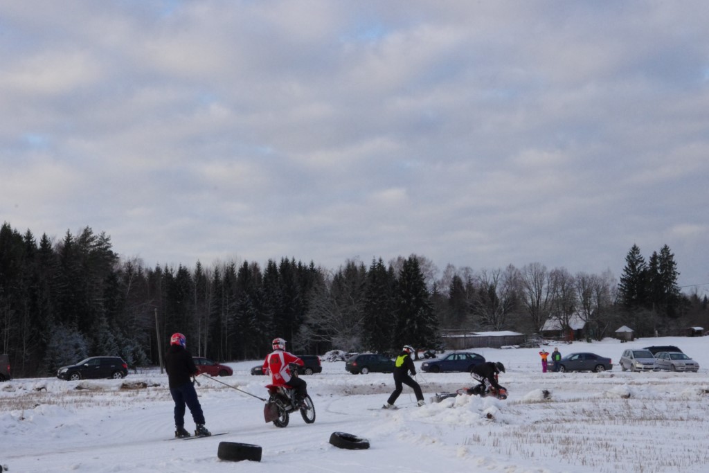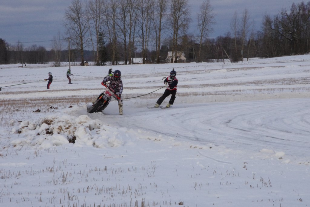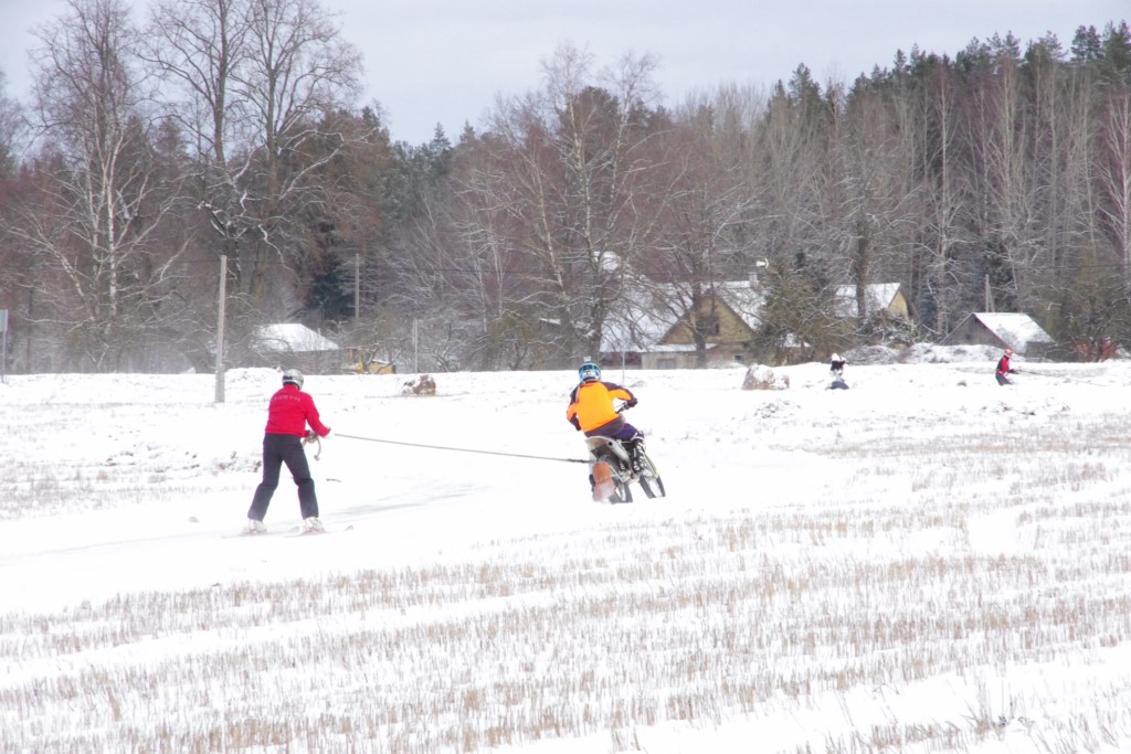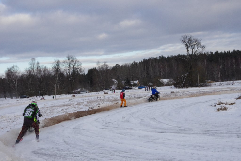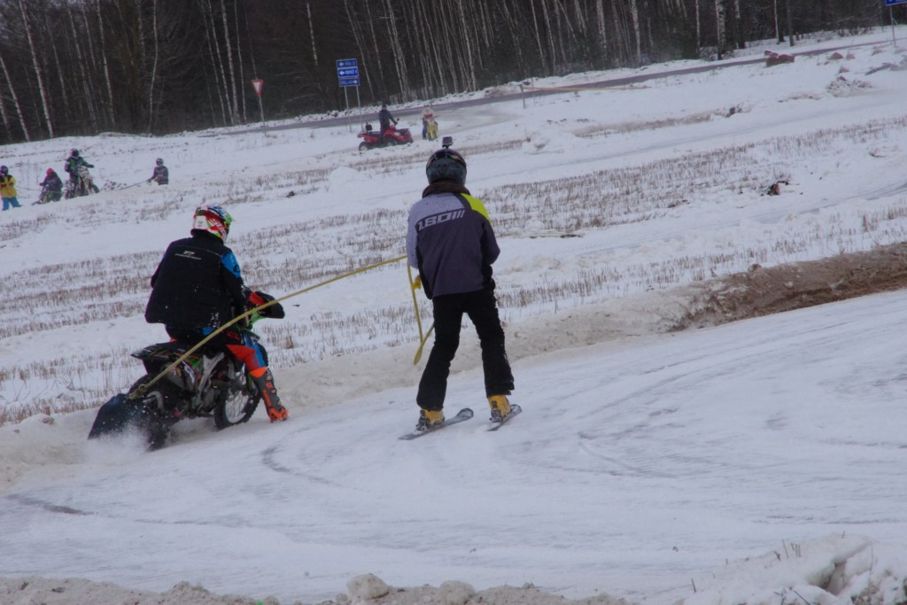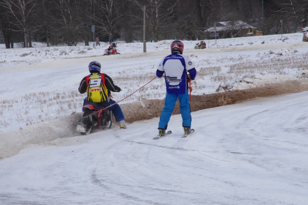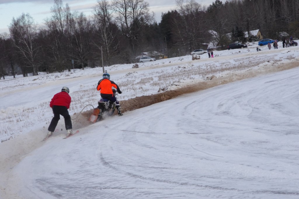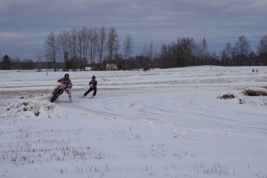 Lieliski organizēts skijoringa treniņš Ropažos! Laika apstākļi lieliski, pats pa priekšu mazo meistaru kalsē slēpojot, neviegli līdz finišam izturēju...nu, ne jau tik smagi, bet, bailes bij' nokrist, slēpojot ar vienu kāju pa trases ārmalas motoriepu risi, kurā katrā nākamajā aplī nezināju, ko sagaidīt - kūleni, vai ko tāsdā garā!