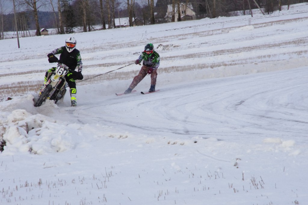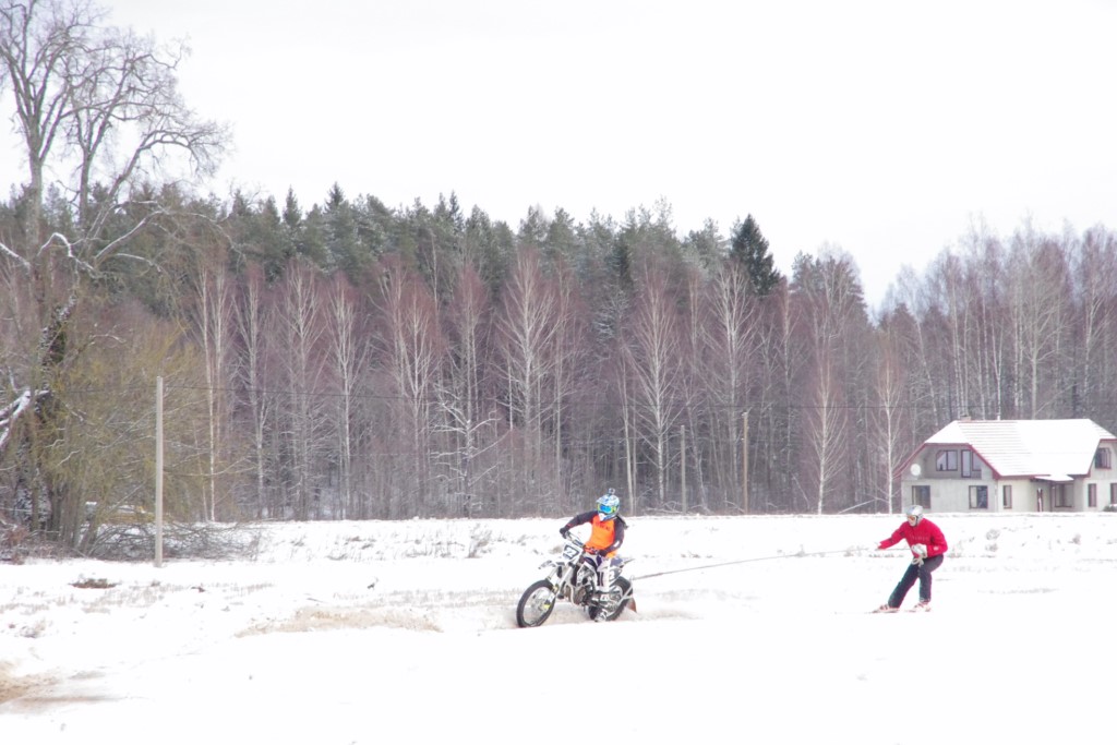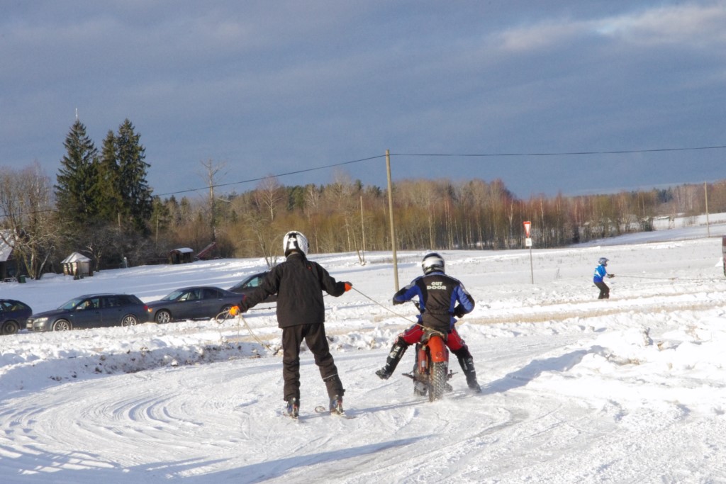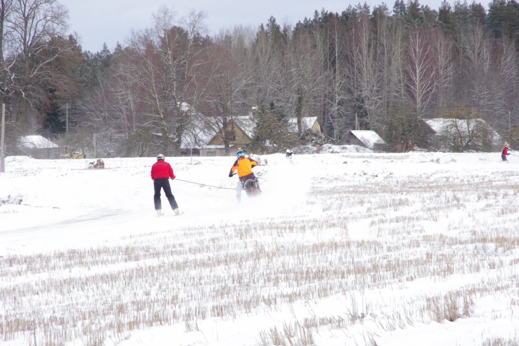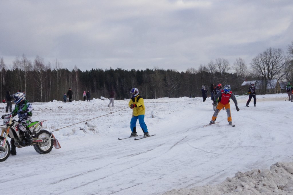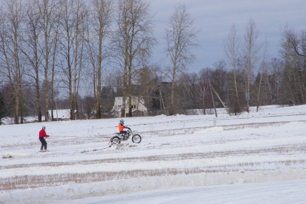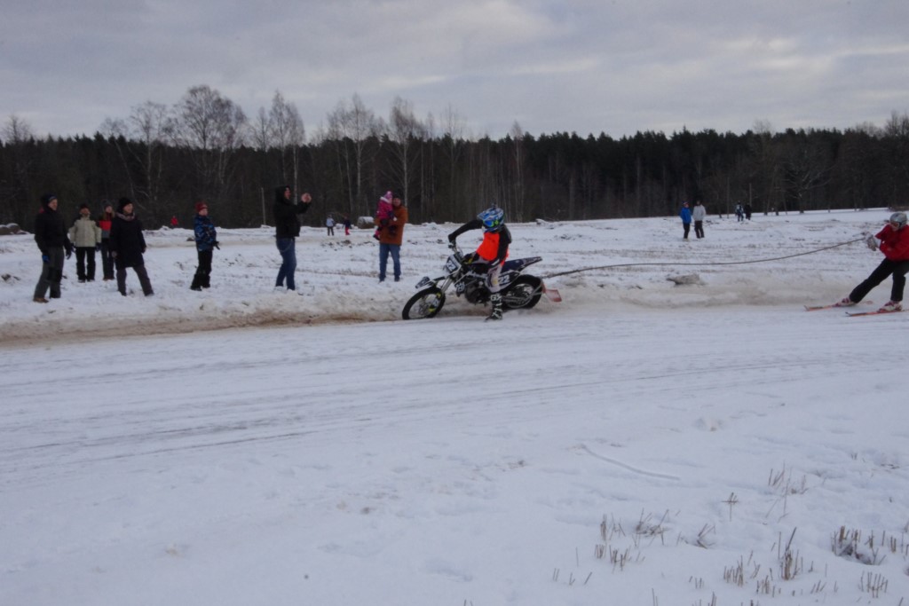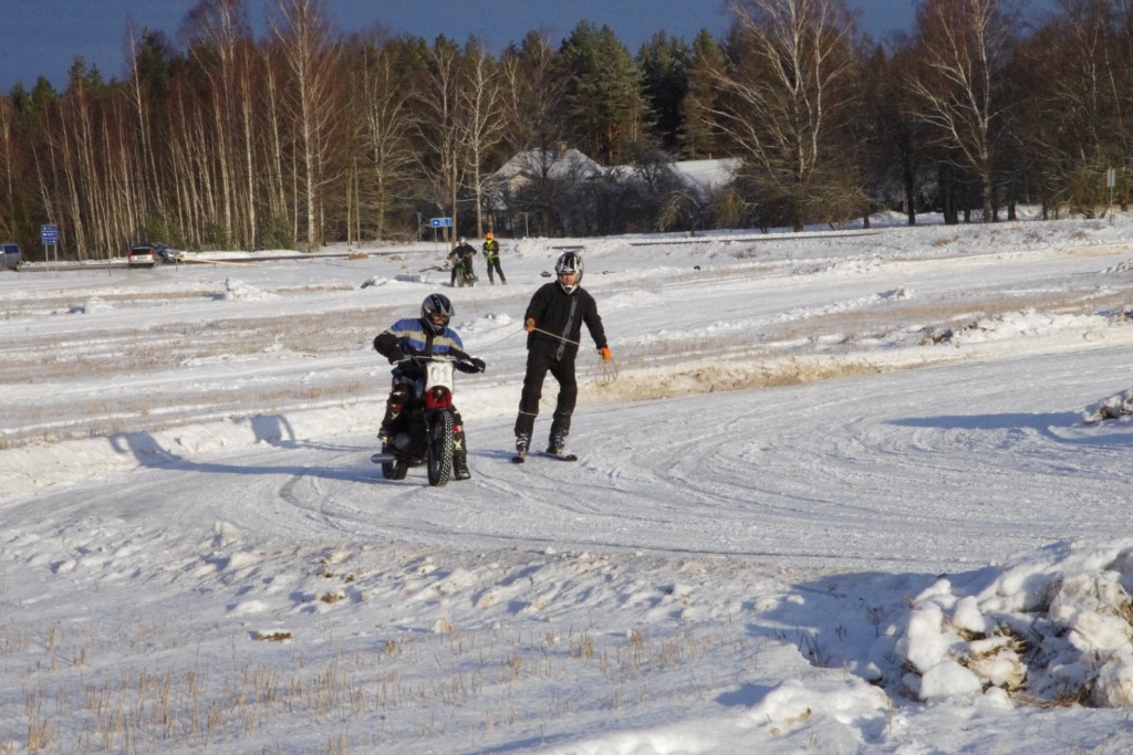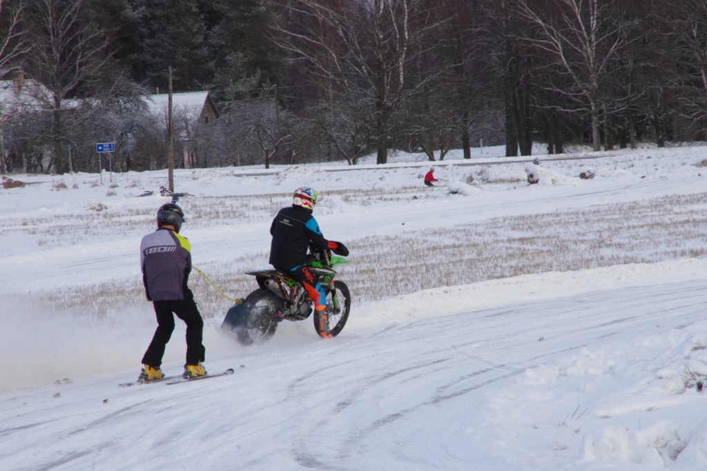 Lieliski organizēts skijoringa treniņš Ropažos! Laika apstākļi lieliski, pats pa priekšu mazo meistaru kalsē slēpojot, neviegli līdz finišam izturēju...nu, ne jau tik smagi, bet, bailes bij' nokrist, slēpojot ar vienu kāju pa trases ārmalas motoriepu risi, kurā katrā nākamajā aplī nezināju, ko sagaidīt - kūleni, vai ko tāsdā garā!