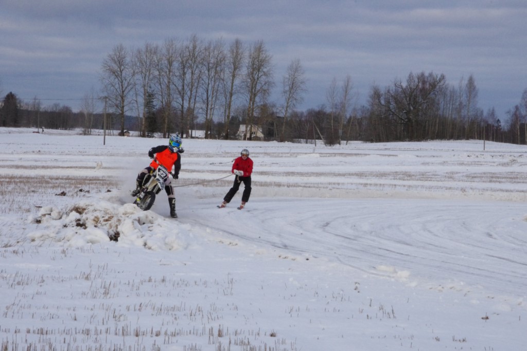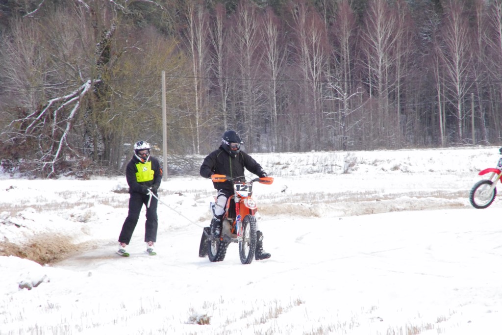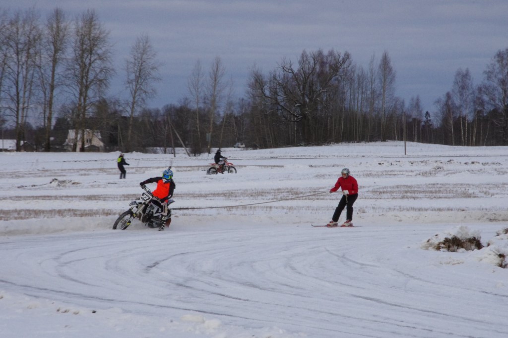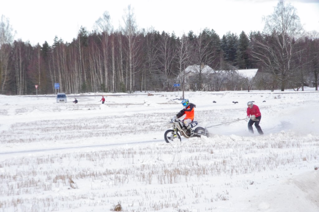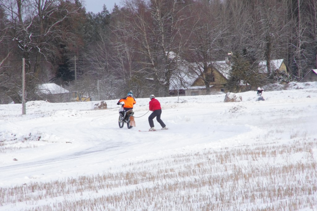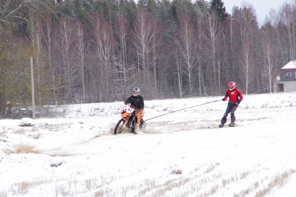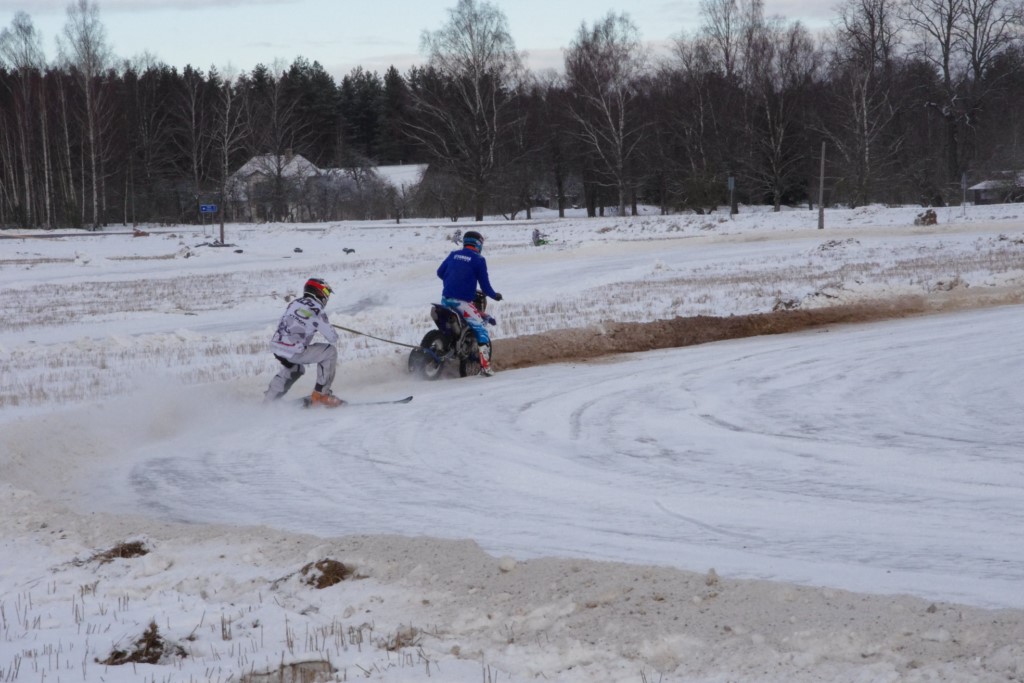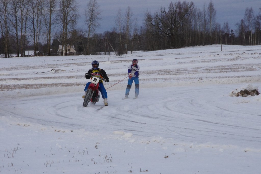 Lieliski organizēts skijoringa treniņš Ropažos! Laika apstākļi lieliski, pats pa priekšu mazo meistaru kalsē slēpojot, neviegli līdz finišam izturēju...nu, ne jau tik smagi, bet, bailes bij' nokrist, slēpojot ar vienu kāju pa trases ārmalas motoriepu risi, kurā katrā nākamajā aplī nezināju, ko sagaidīt - kūleni, vai ko tāsdā garā!