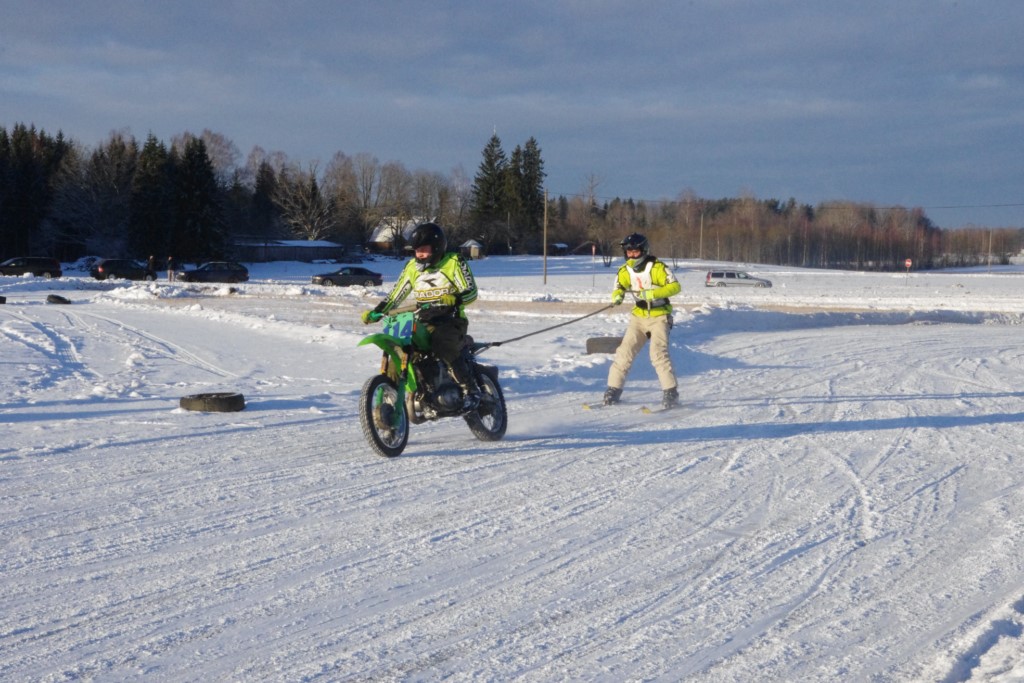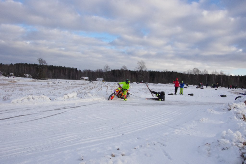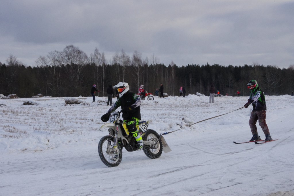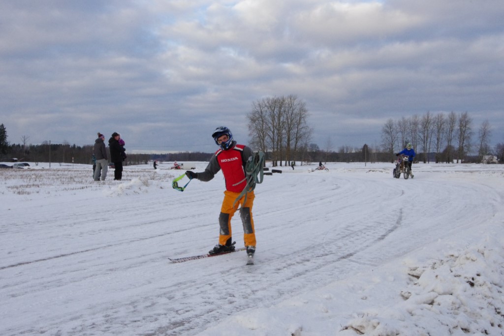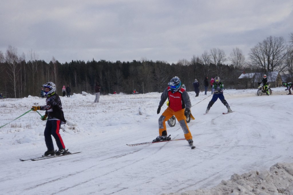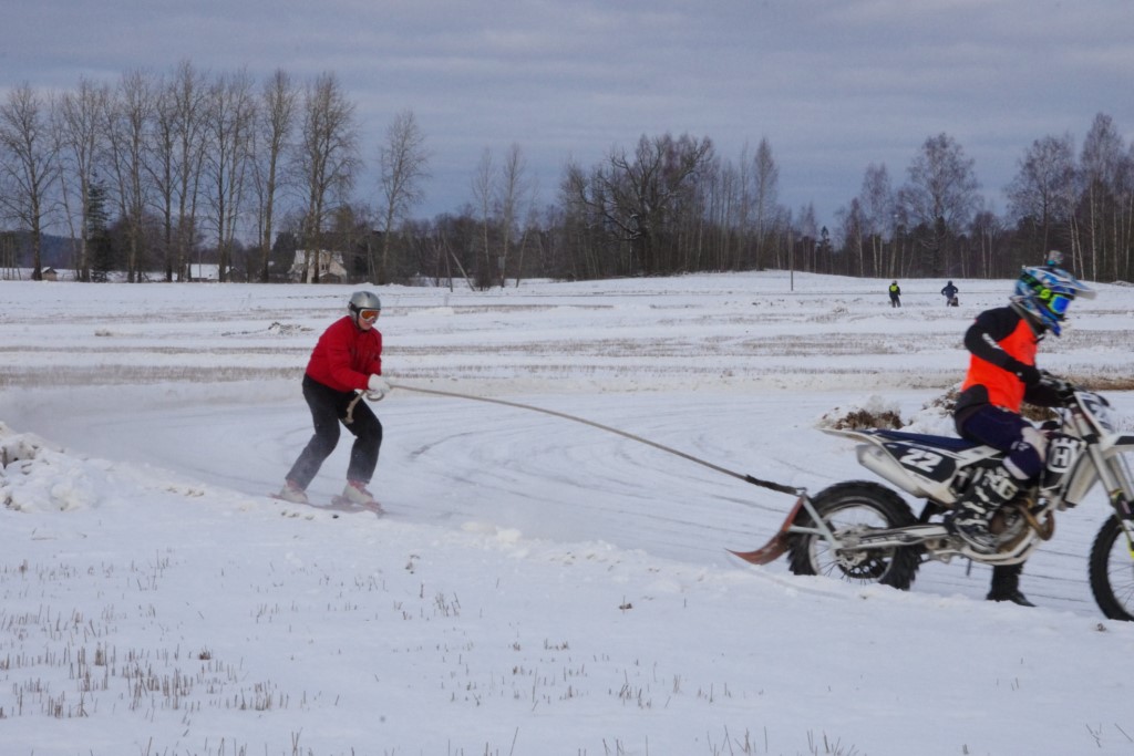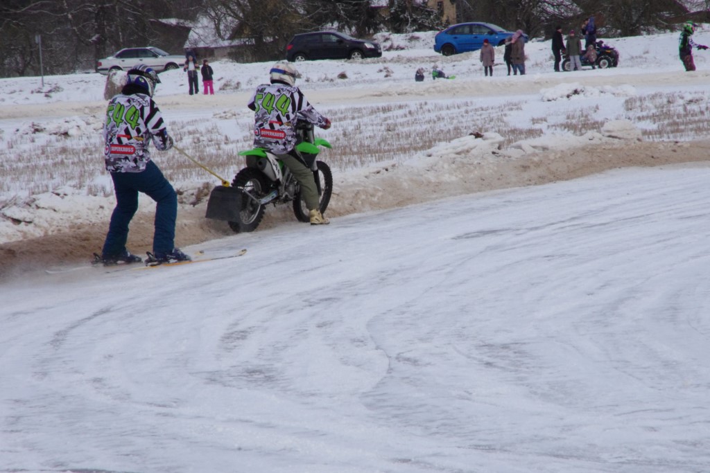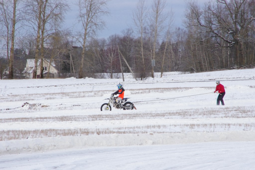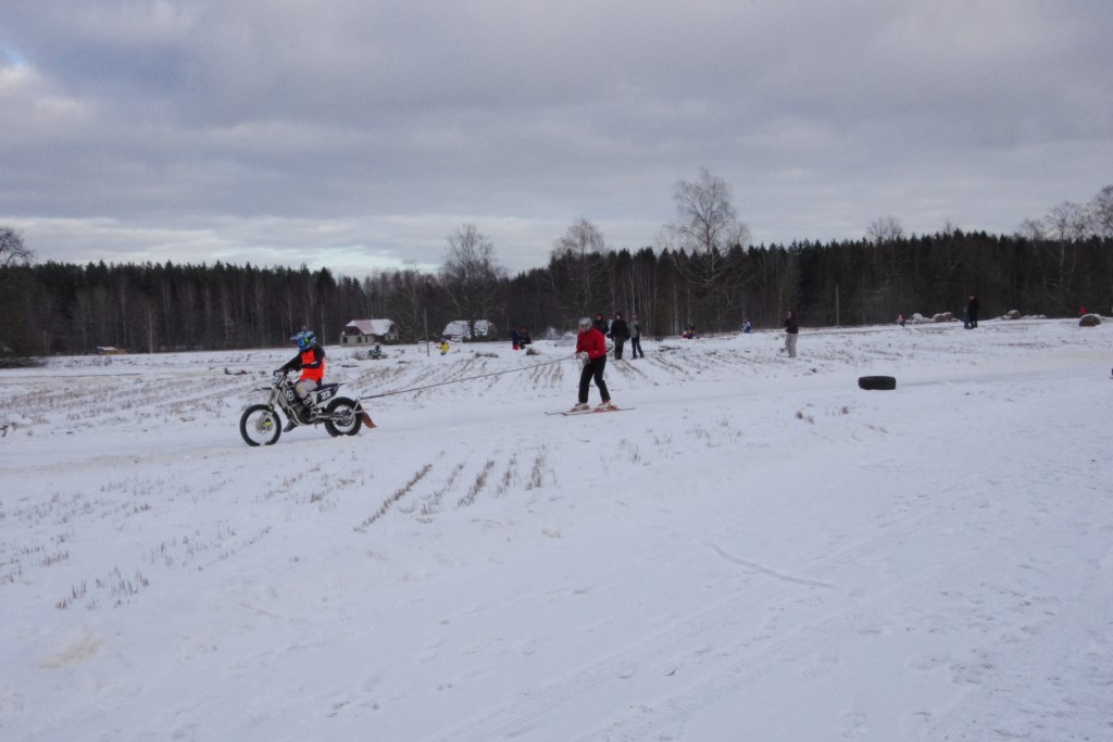 Lieliski organizēts skijoringa treniņš Ropažos! Laika apstākļi lieliski, pats pa priekšu mazo meistaru kalsē slēpojot, neviegli līdz finišam izturēju...nu, ne jau tik smagi, bet, bailes bij' nokrist, slēpojot ar vienu kāju pa trases ārmalas motoriepu risi, kurā katrā nākamajā aplī nezināju, ko sagaidīt - kūleni, vai ko tāsdā garā!