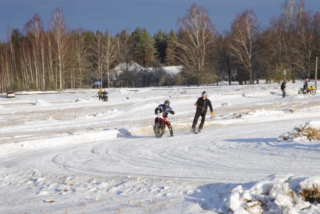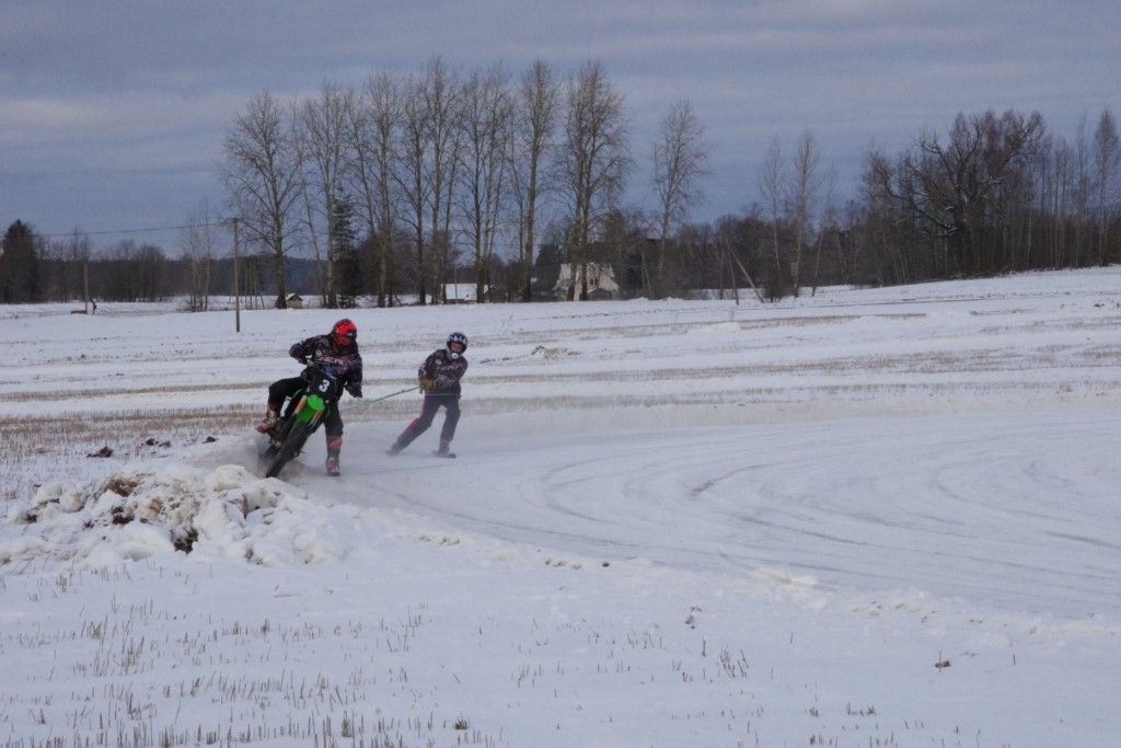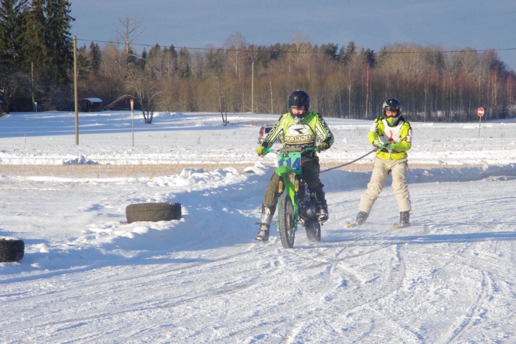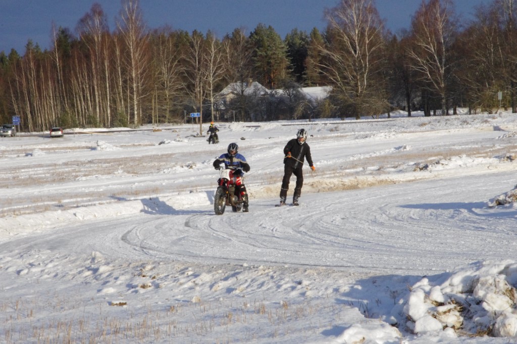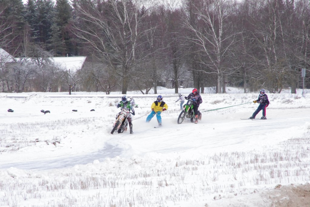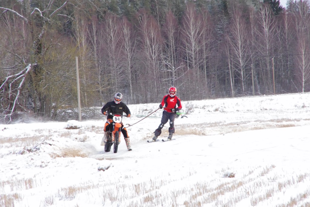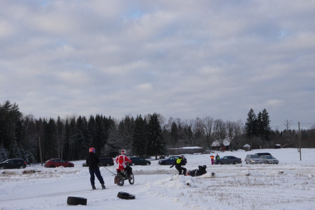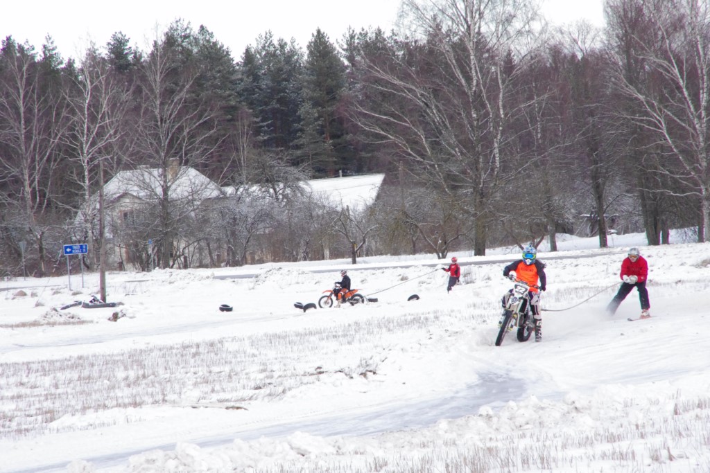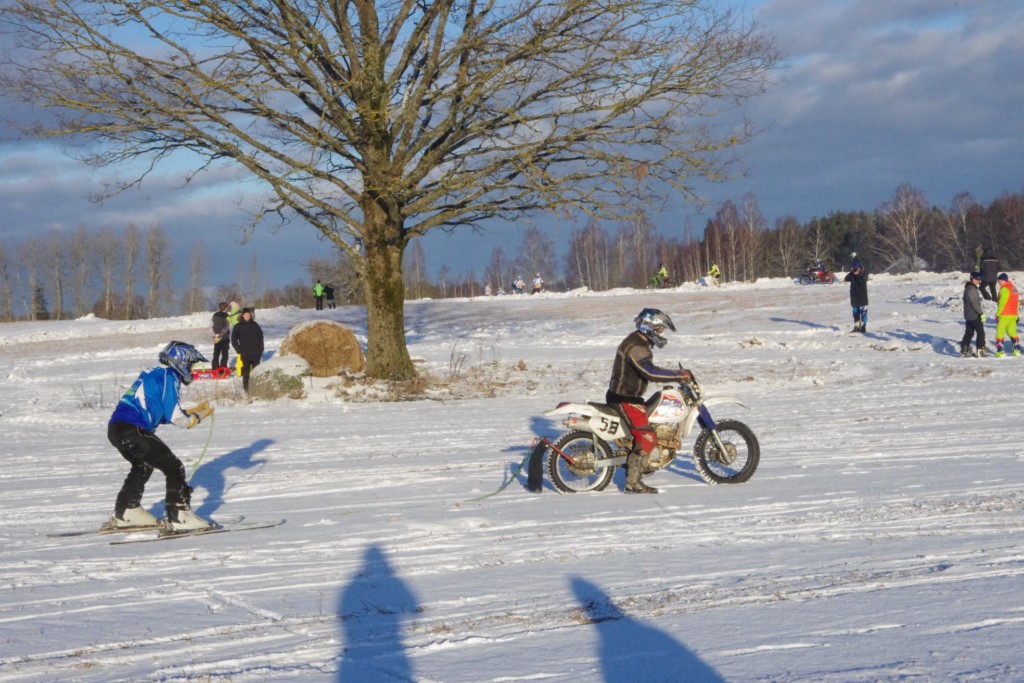 Lieliski organizēts skijoringa treniņš Ropažos! Laika apstākļi lieliski, pats pa priekšu mazo meistaru kalsē slēpojot, neviegli līdz finišam izturēju...nu, ne jau tik smagi, bet, bailes bij' nokrist, slēpojot ar vienu kāju pa trases ārmalas motoriepu risi, kurā katrā nākamajā aplī nezināju, ko sagaidīt - kūleni, vai ko tāsdā garā!
