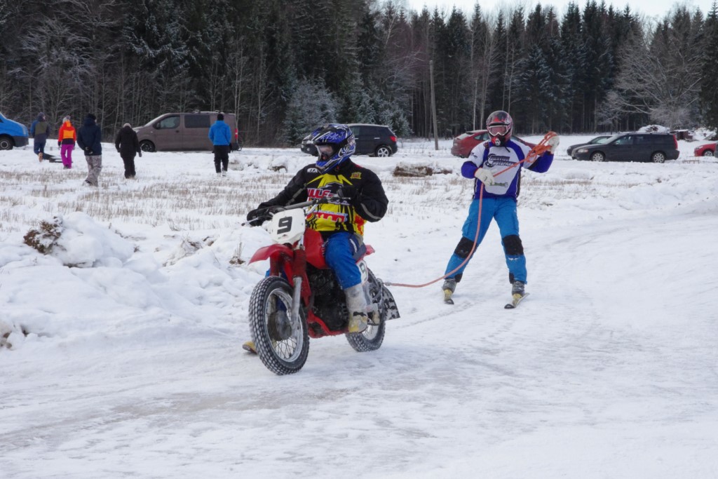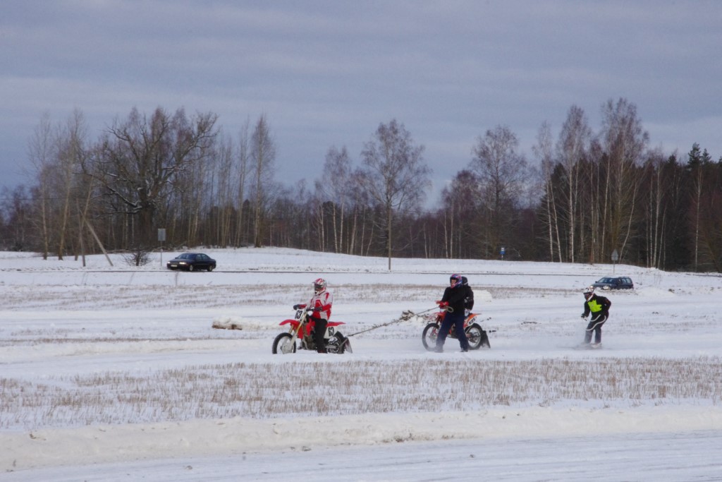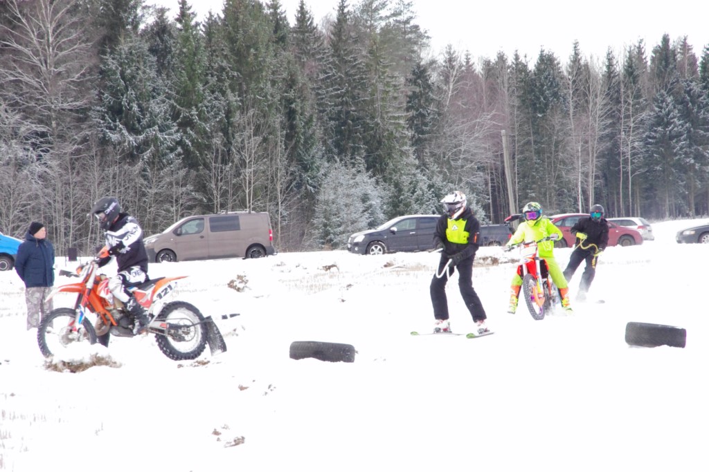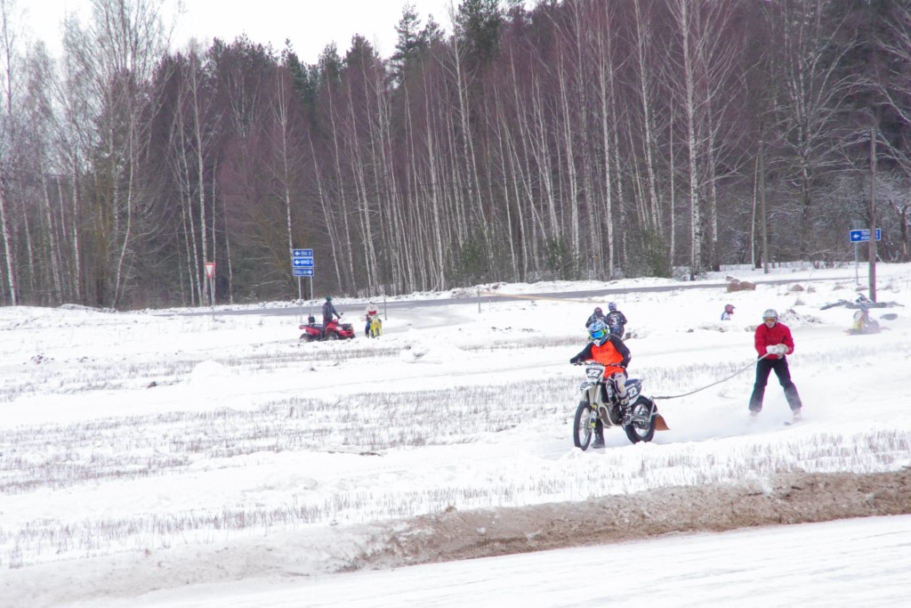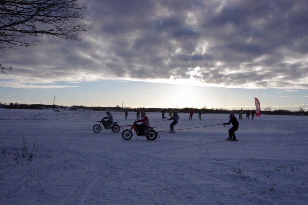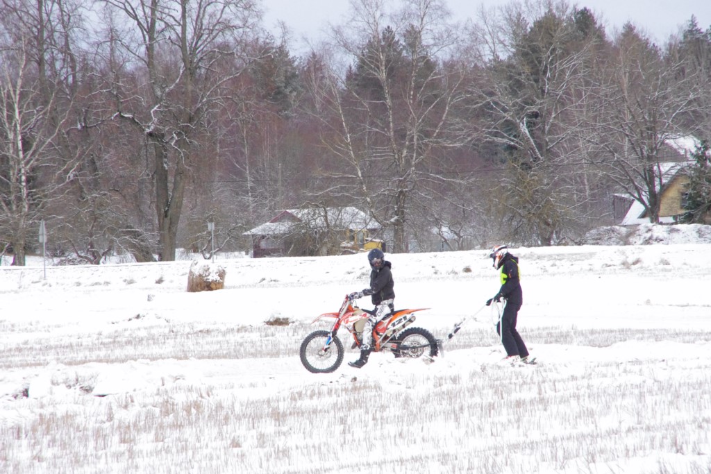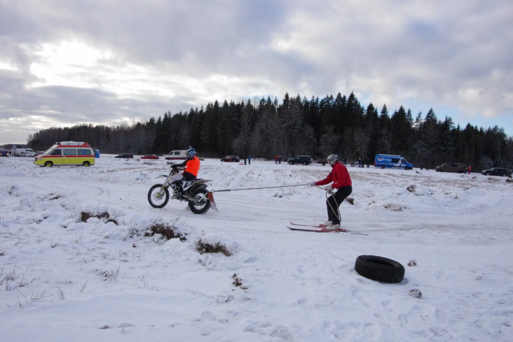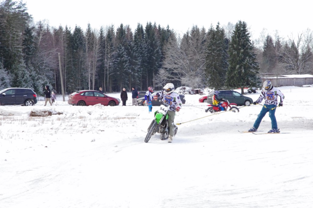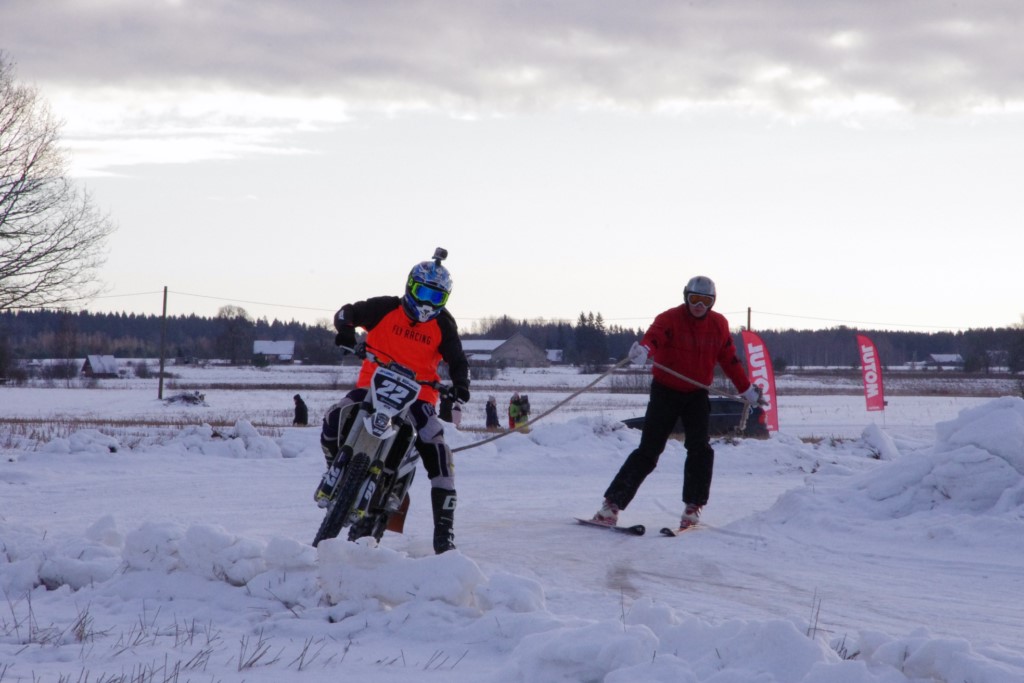 Lieliski organizēts skijoringa treniņš Ropažos! Laika apstākļi lieliski, pats pa priekšu mazo meistaru kalsē slēpojot, neviegli līdz finišam izturēju...nu, ne jau tik smagi, bet, bailes bij' nokrist, slēpojot ar vienu kāju pa trases ārmalas motoriepu risi, kurā katrā nākamajā aplī nezināju, ko sagaidīt - kūleni, vai ko tāsdā garā!