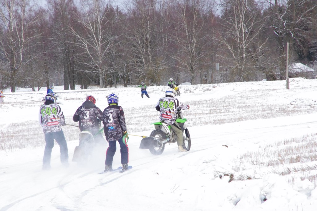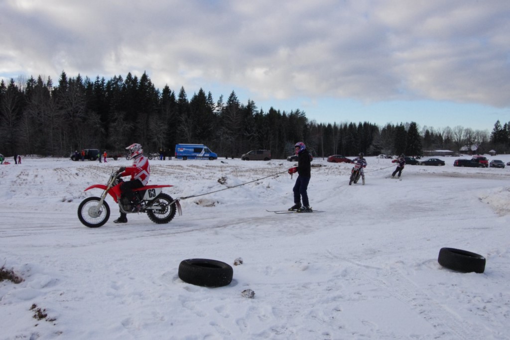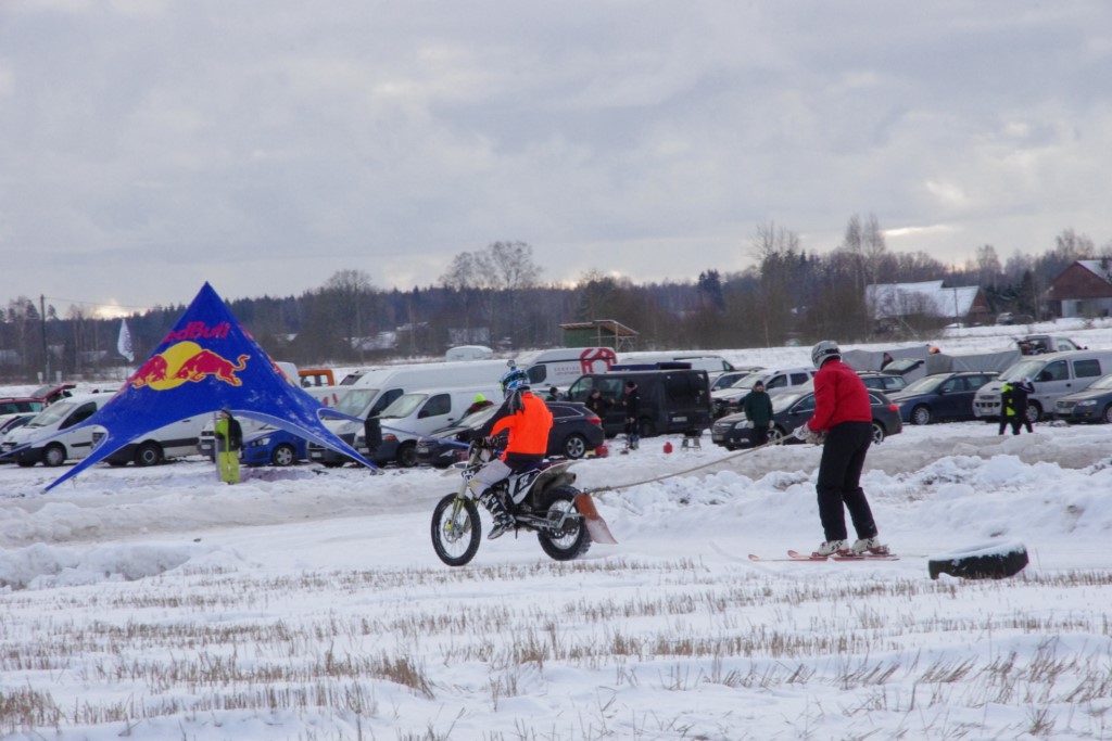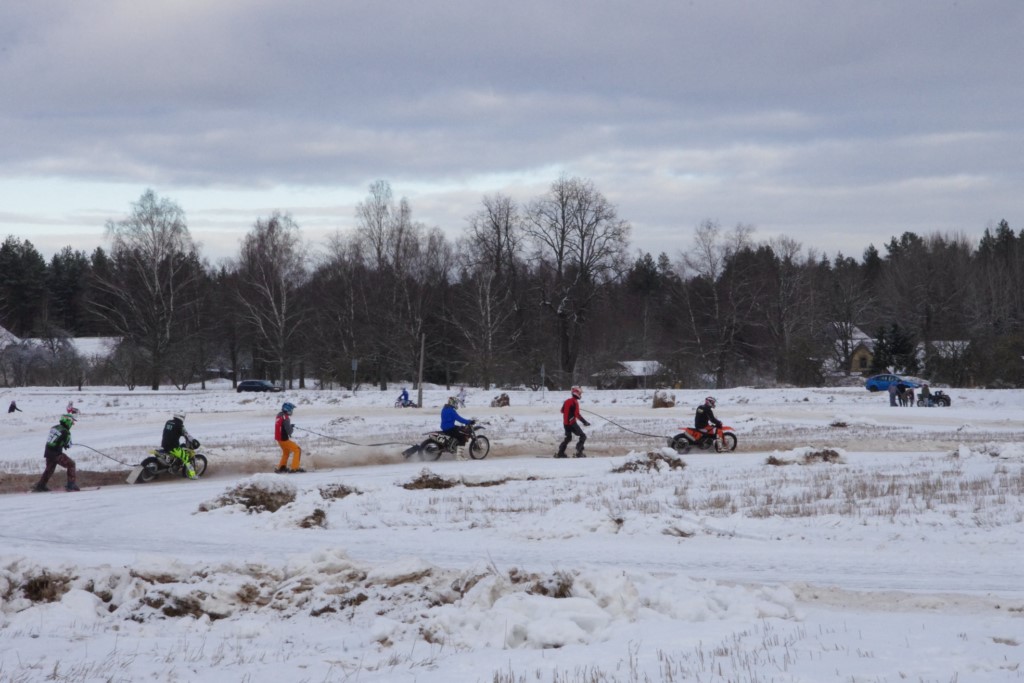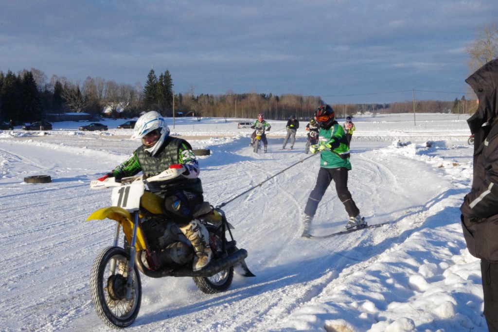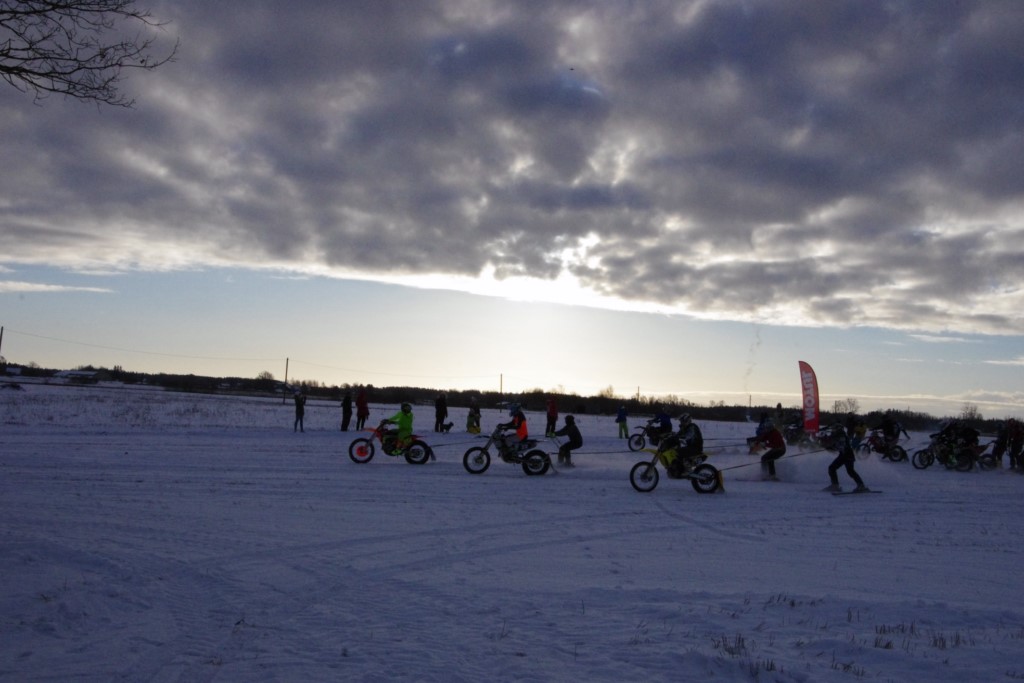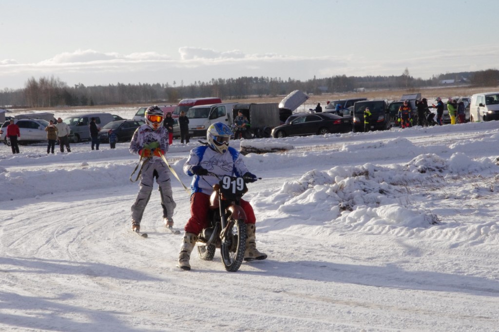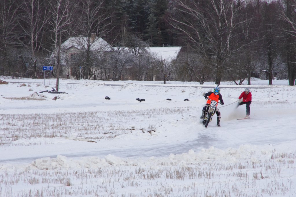 Lieliski organizēts skijoringa treniņš Ropažos! Laika apstākļi lieliski, pats pa priekšu mazo meistaru kalsē slēpojot, neviegli līdz finišam izturēju...nu, ne jau tik smagi, bet, bailes bij' nokrist, slēpojot ar vienu kāju pa trases ārmalas motoriepu risi, kurā katrā nākamajā aplī nezināju, ko sagaidīt - kūleni, vai ko tāsdā garā!