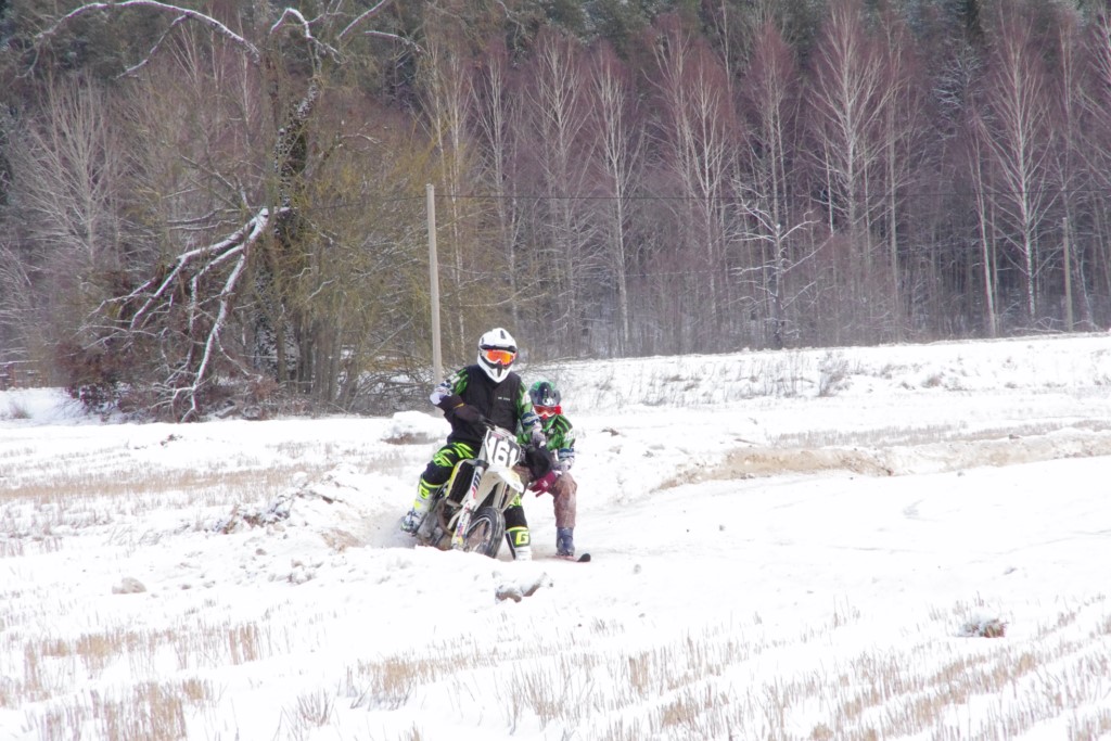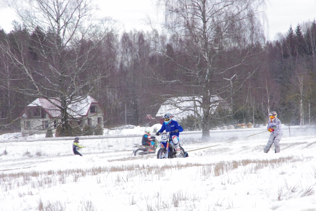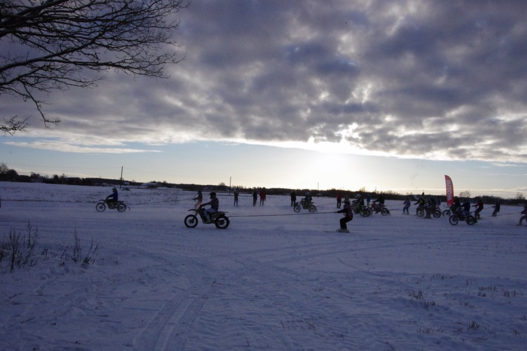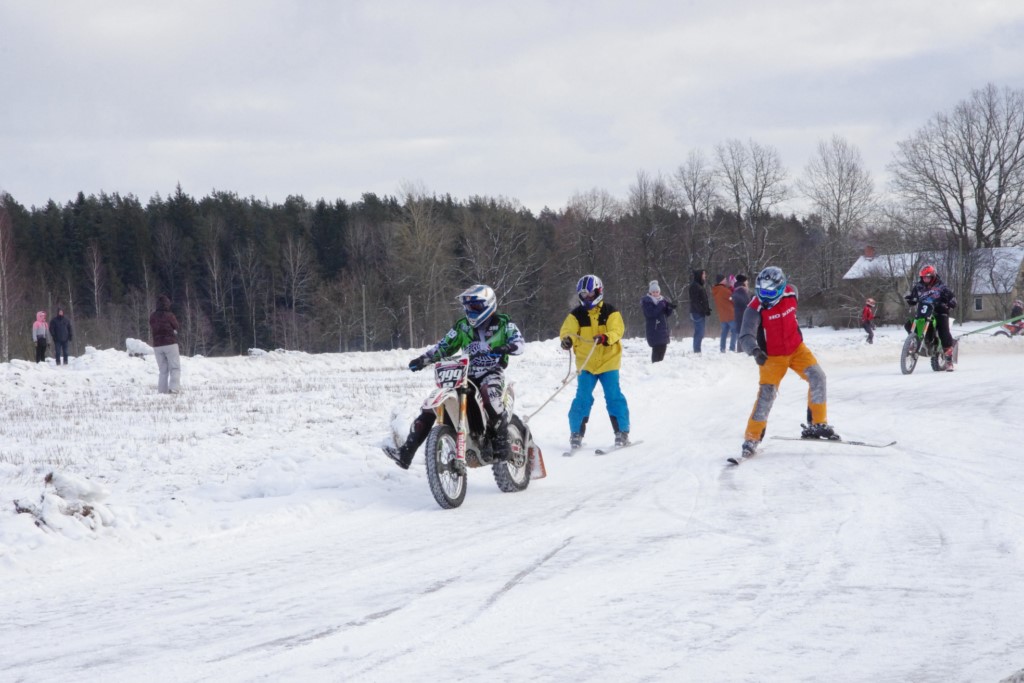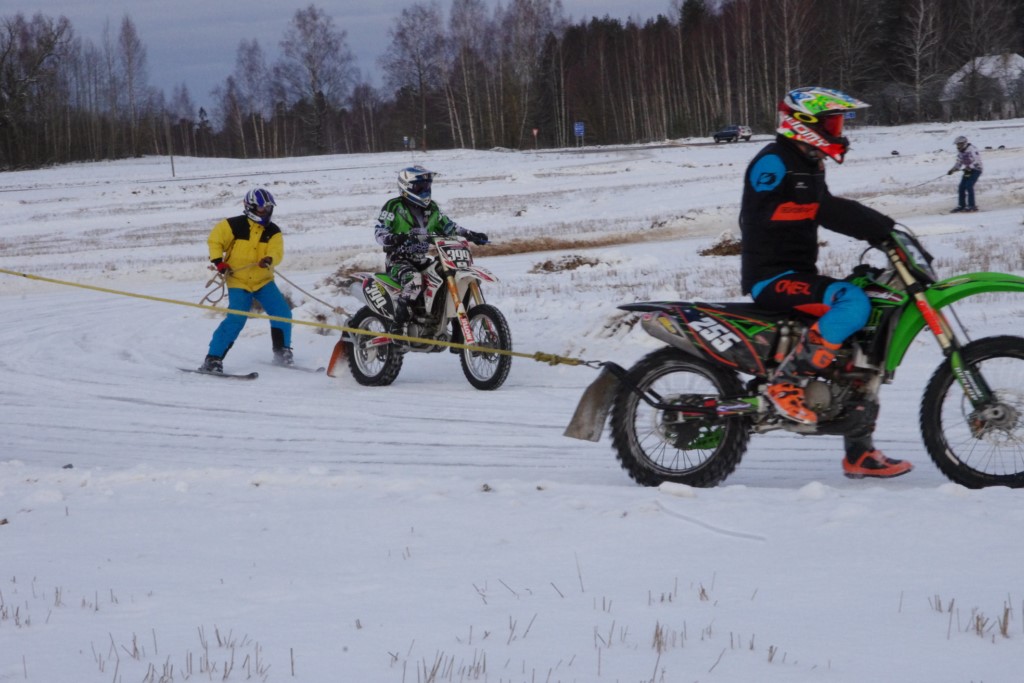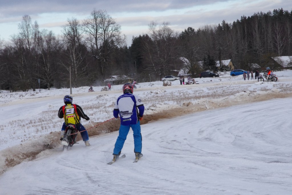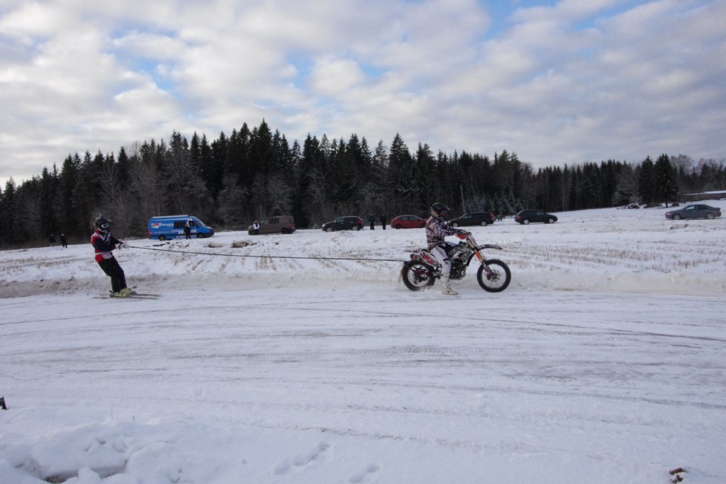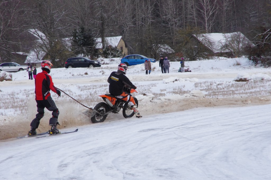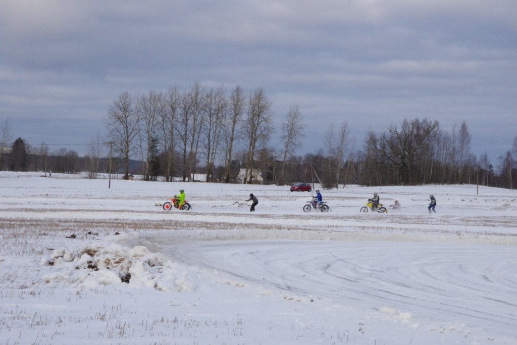 Lieliski organizēts skijoringa treniņš Ropažos! Laika apstākļi lieliski, pats pa priekšu mazo meistaru kalsē slēpojot, neviegli līdz finišam izturēju...nu, ne jau tik smagi, bet, bailes bij' nokrist, slēpojot ar vienu kāju pa trases ārmalas motoriepu risi, kurā katrā nākamajā aplī nezināju, ko sagaidīt - kūleni, vai ko tāsdā garā!