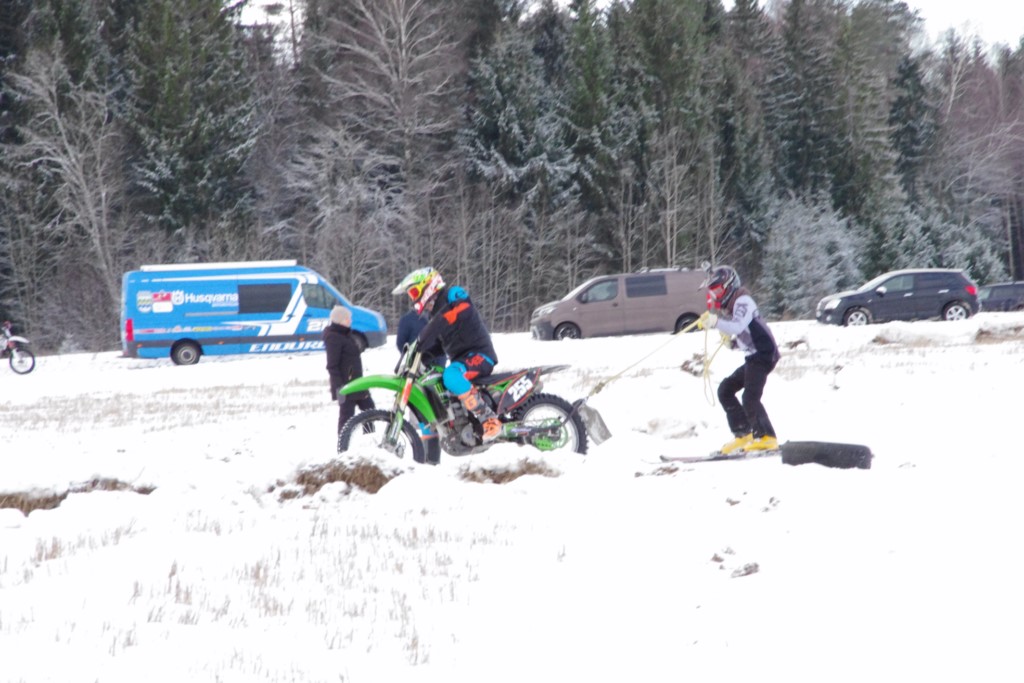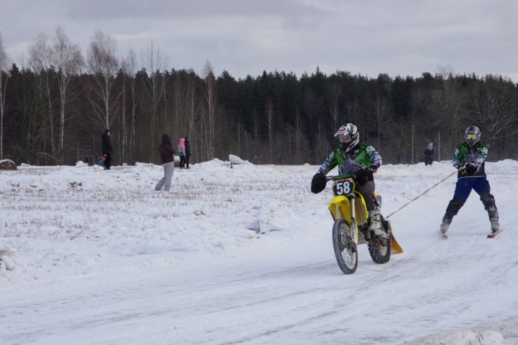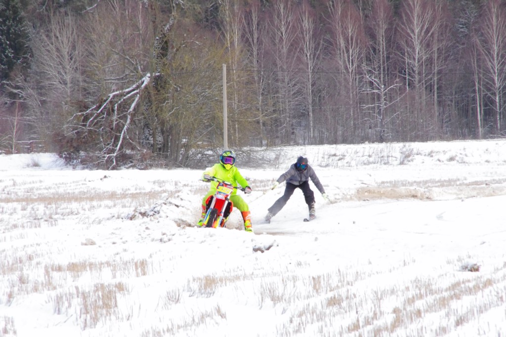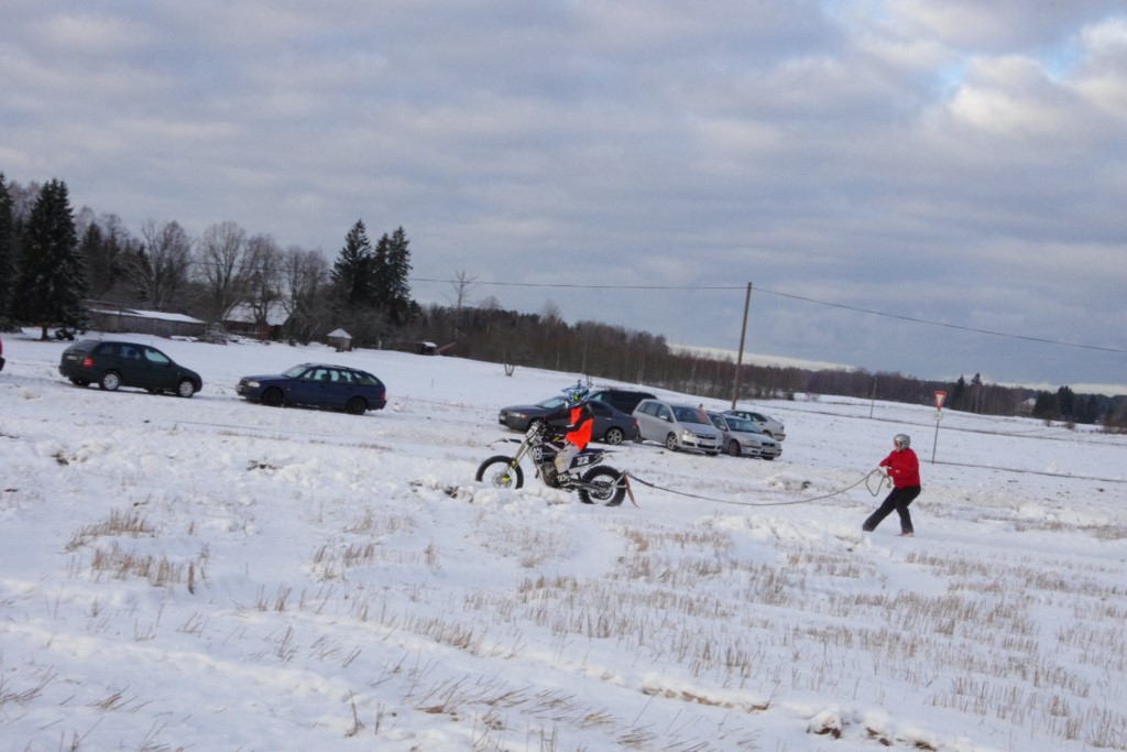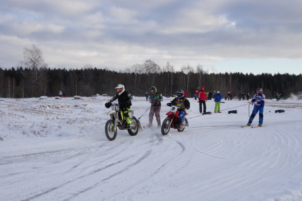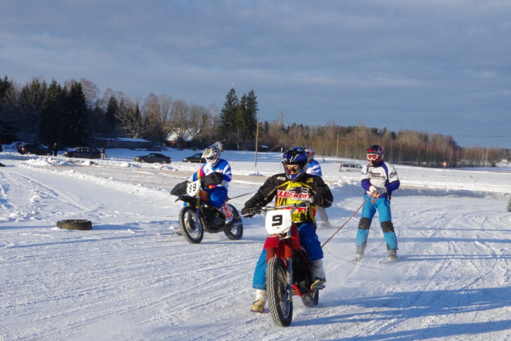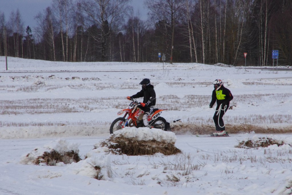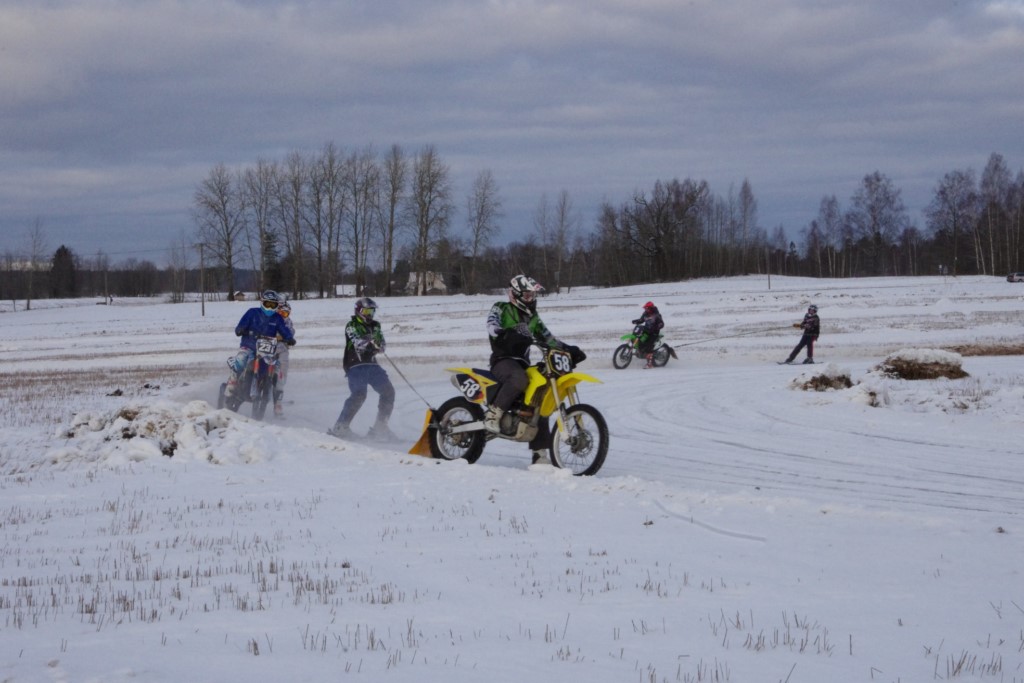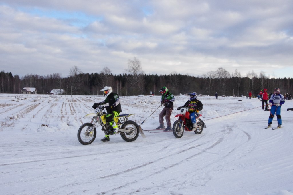 Lieliski organizēts skijoringa treniņš Ropažos! Laika apstākļi lieliski, pats pa priekšu mazo meistaru kalsē slēpojot, neviegli līdz finišam izturēju...nu, ne jau tik smagi, bet, bailes bij' nokrist, slēpojot ar vienu kāju pa trases ārmalas motoriepu risi, kurā katrā nākamajā aplī nezināju, ko sagaidīt - kūleni, vai ko tāsdā garā!