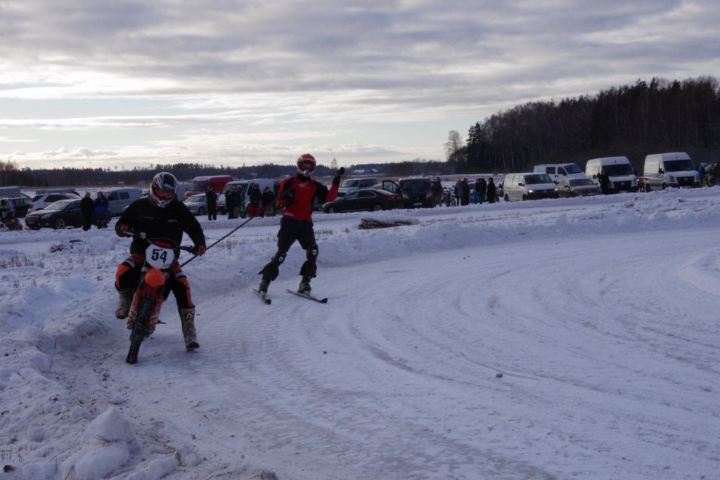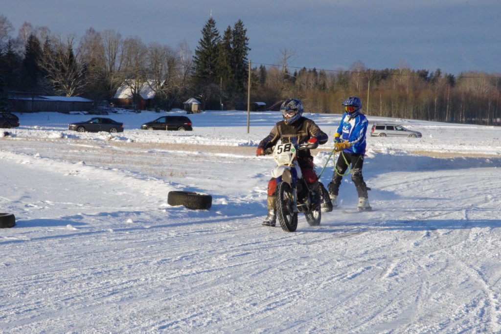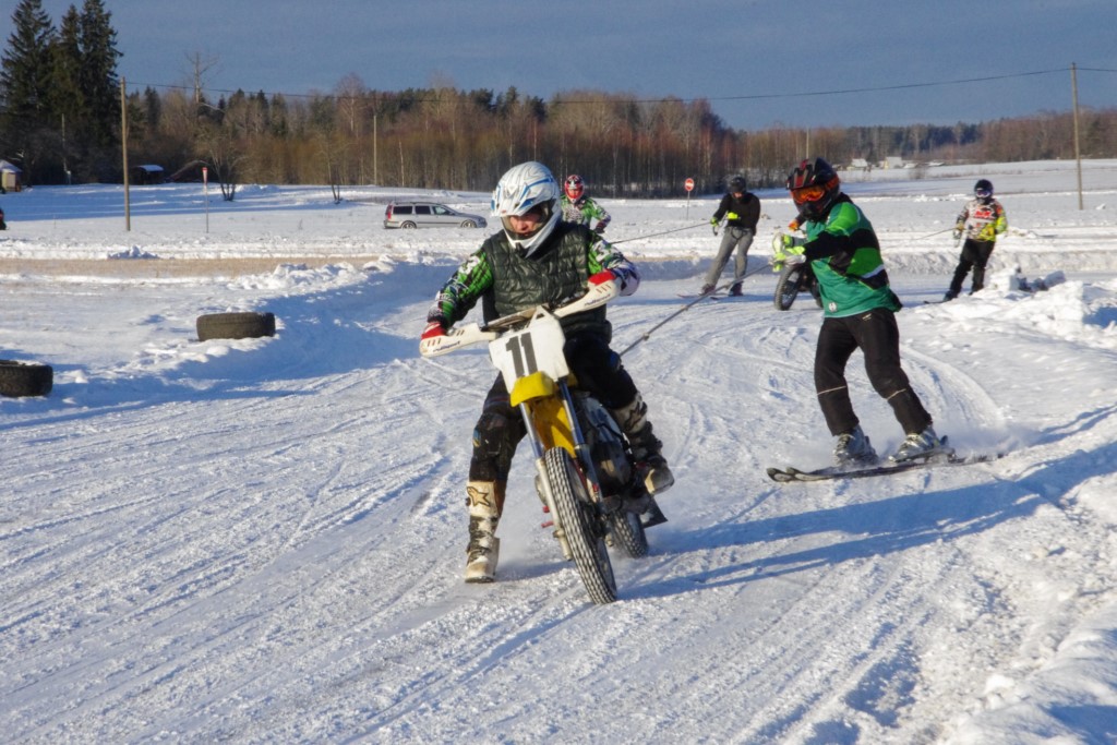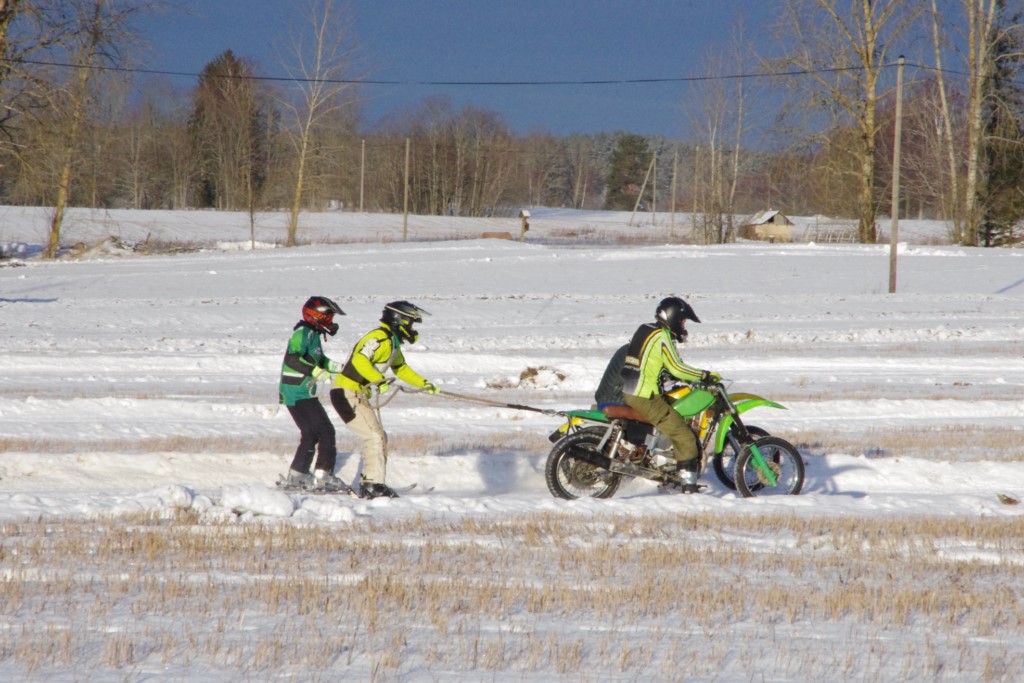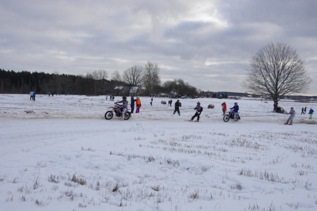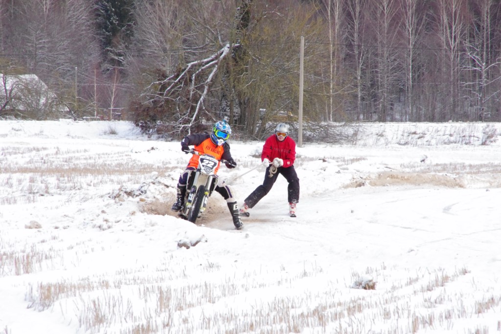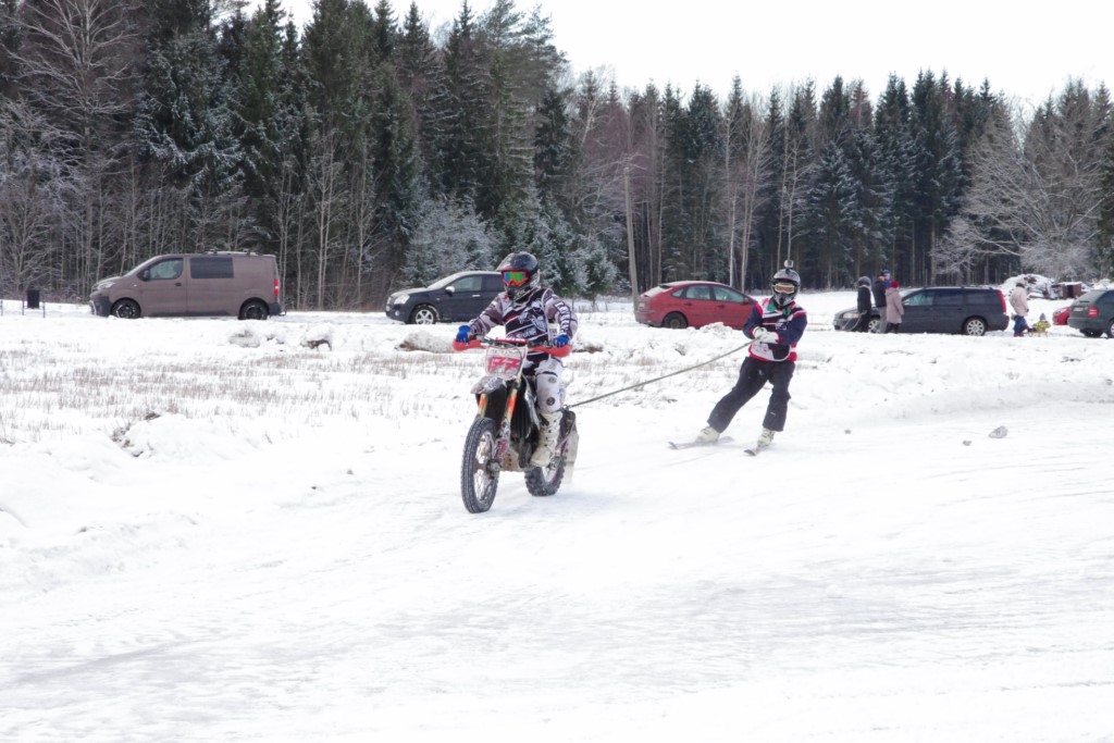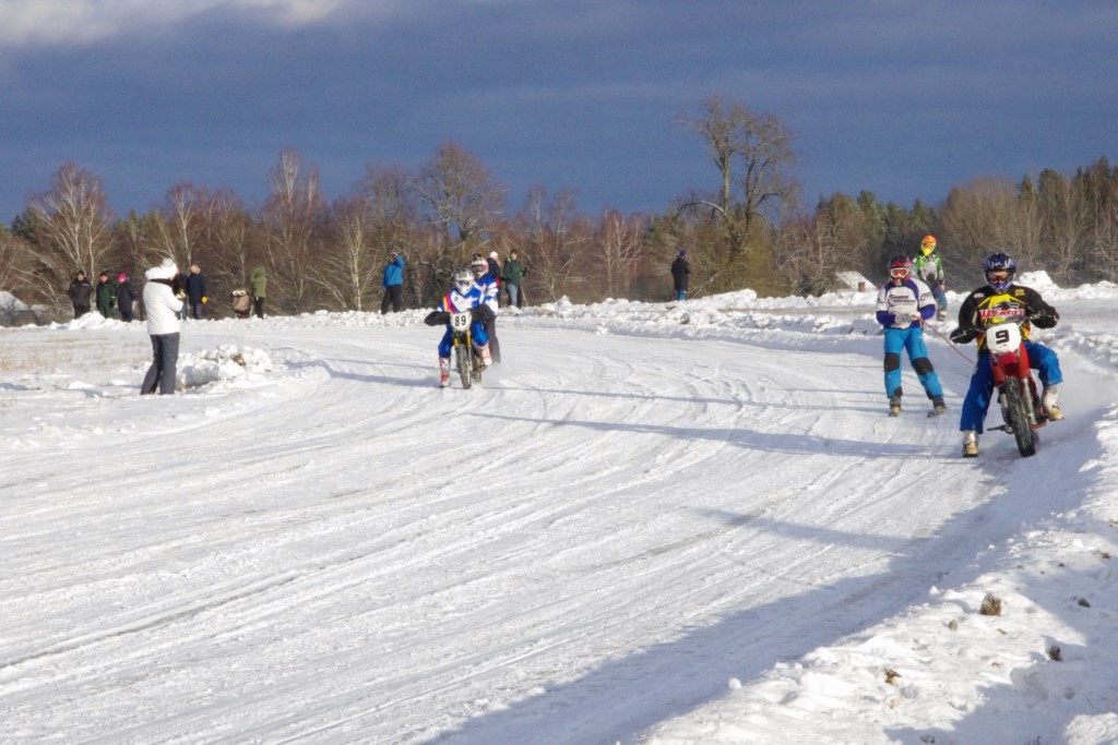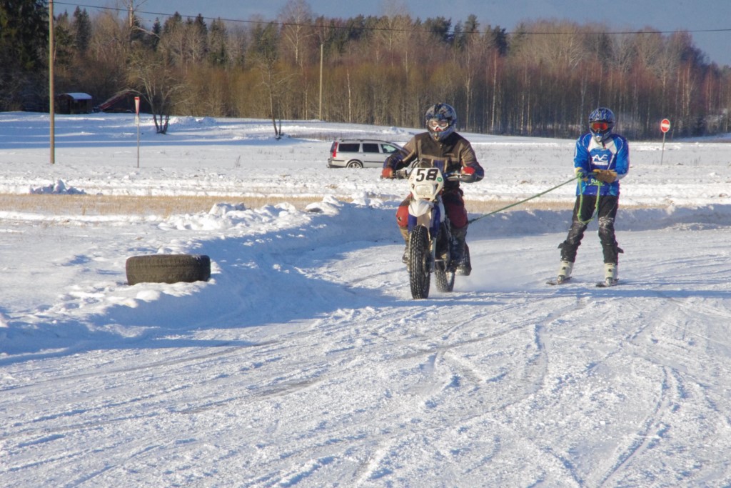 Lieliski organizēts skijoringa treniņš Ropažos! Laika apstākļi lieliski, pats pa priekšu mazo meistaru kalsē slēpojot, neviegli līdz finišam izturēju...nu, ne jau tik smagi, bet, bailes bij' nokrist, slēpojot ar vienu kāju pa trases ārmalas motoriepu risi, kurā katrā nākamajā aplī nezināju, ko sagaidīt - kūleni, vai ko tāsdā garā!