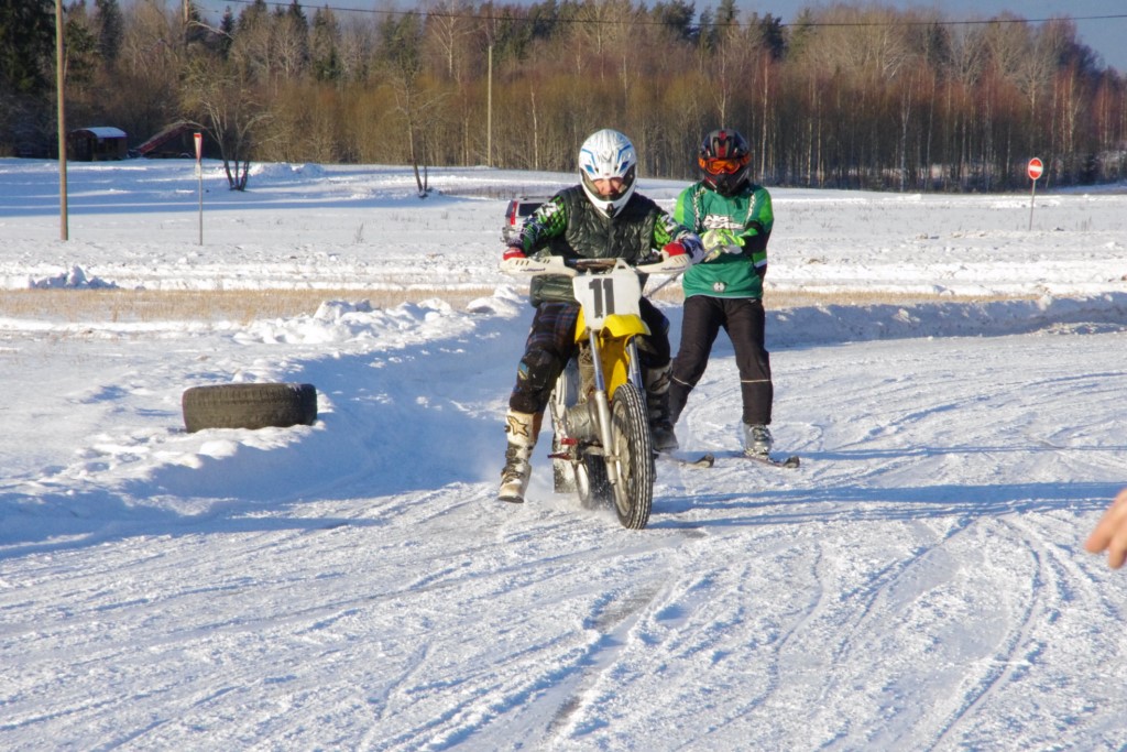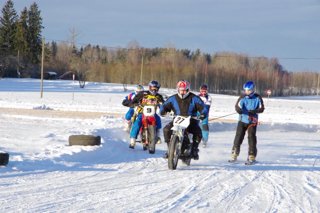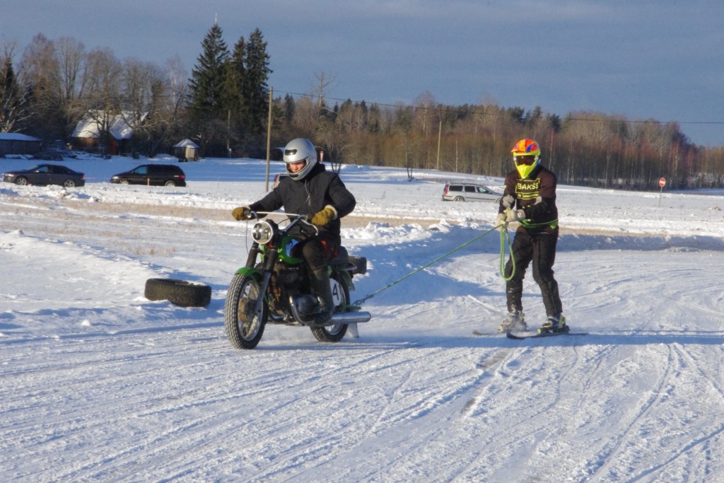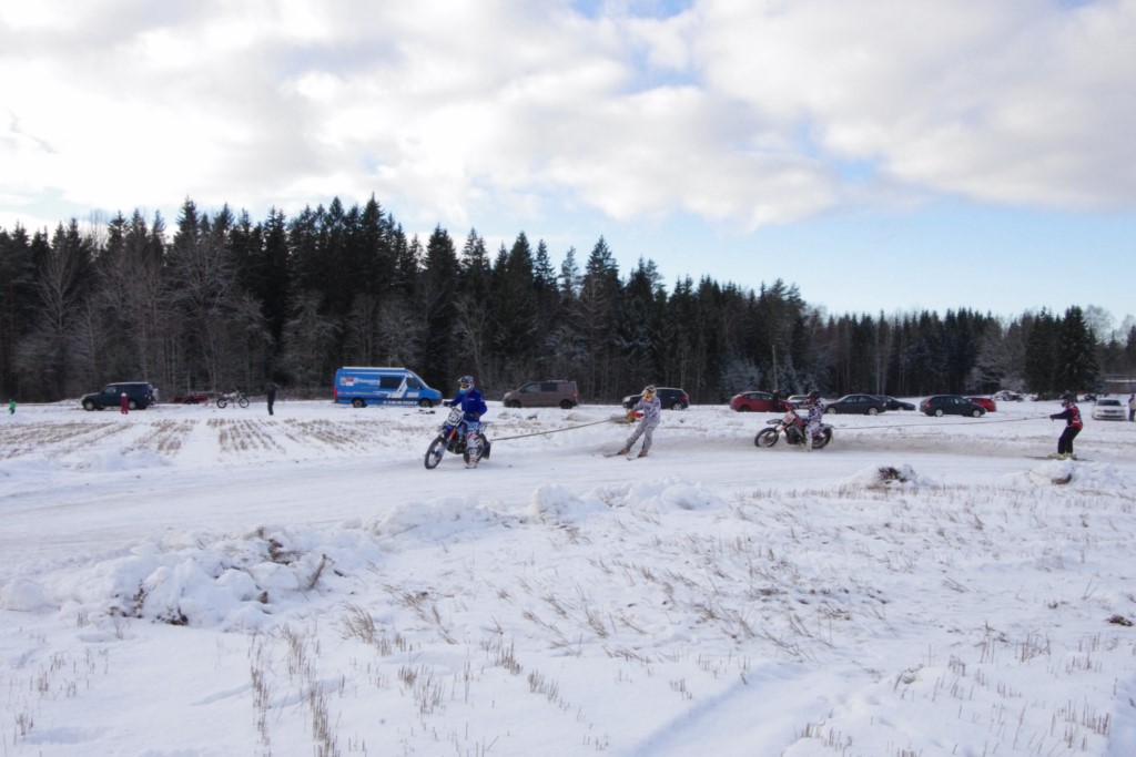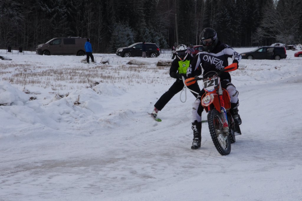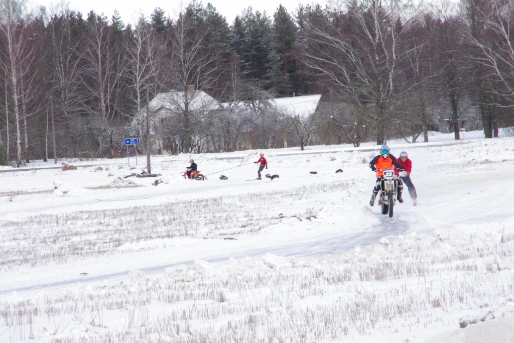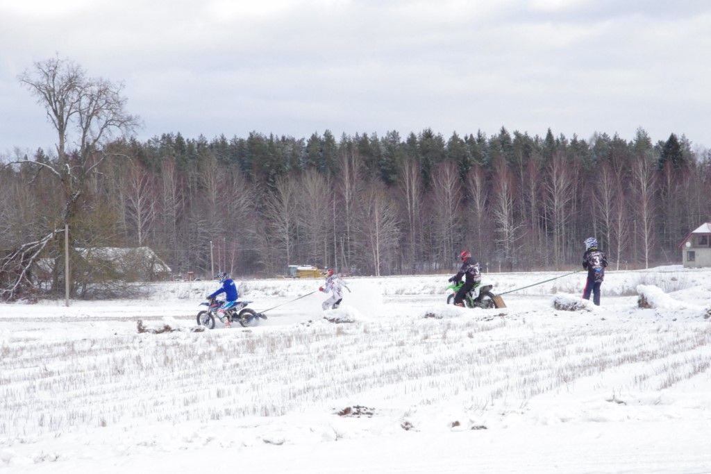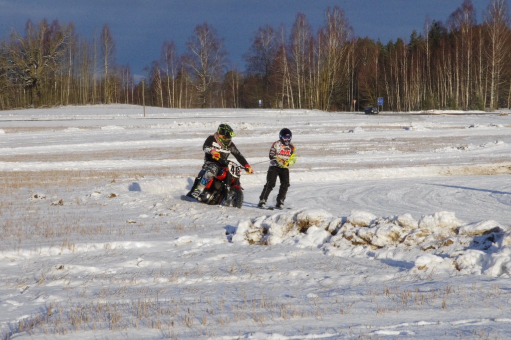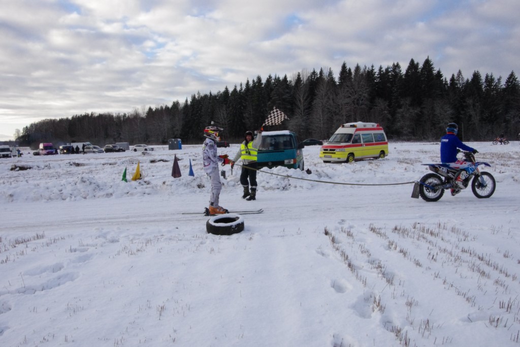 Lieliski organizēts skijoringa treniņš Ropažos! Laika apstākļi lieliski, pats pa priekšu mazo meistaru kalsē slēpojot, neviegli līdz finišam izturēju...nu, ne jau tik smagi, bet, bailes bij' nokrist, slēpojot ar vienu kāju pa trases ārmalas motoriepu risi, kurā katrā nākamajā aplī nezināju, ko sagaidīt - kūleni, vai ko tāsdā garā!
