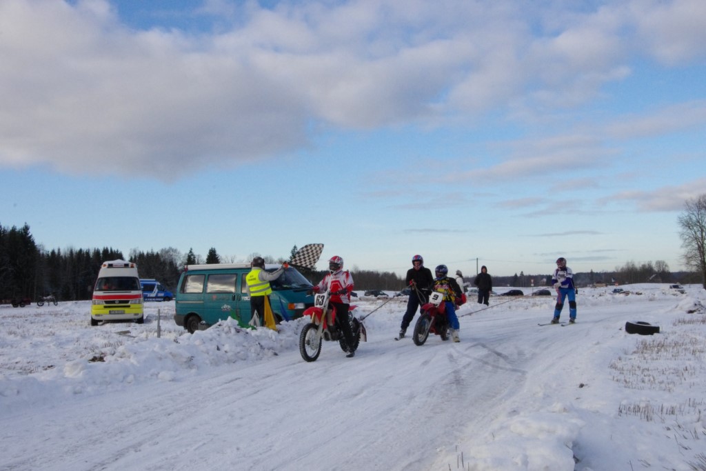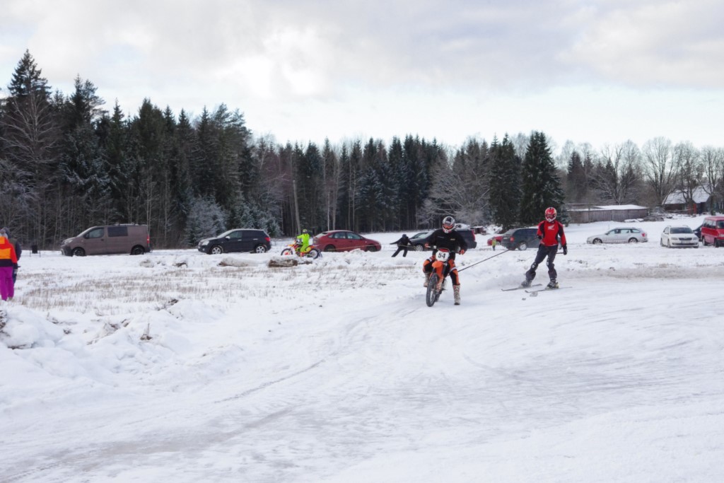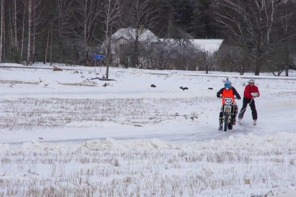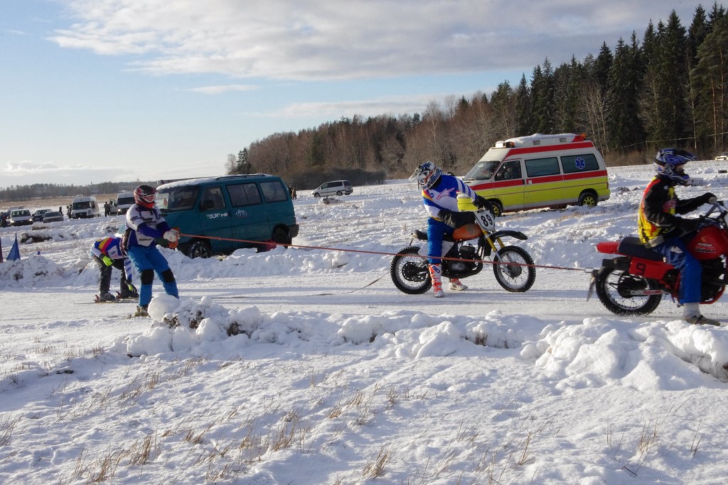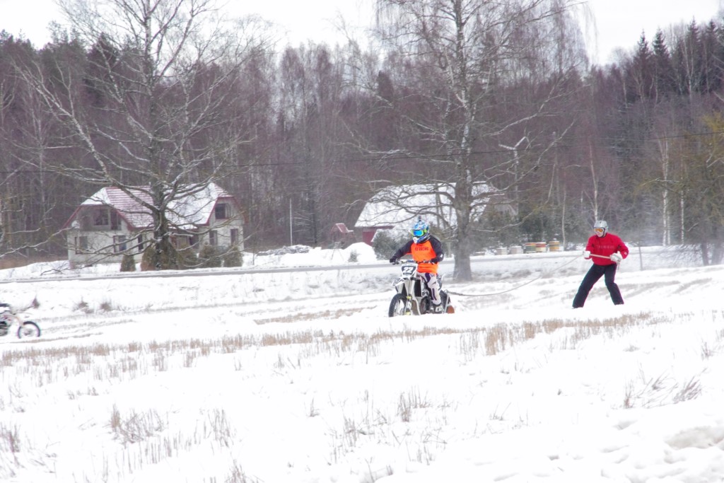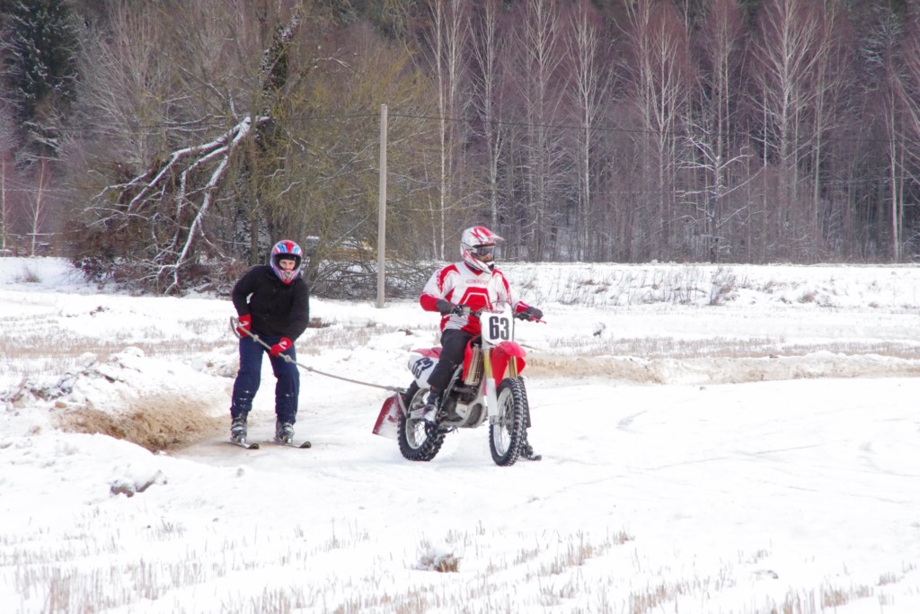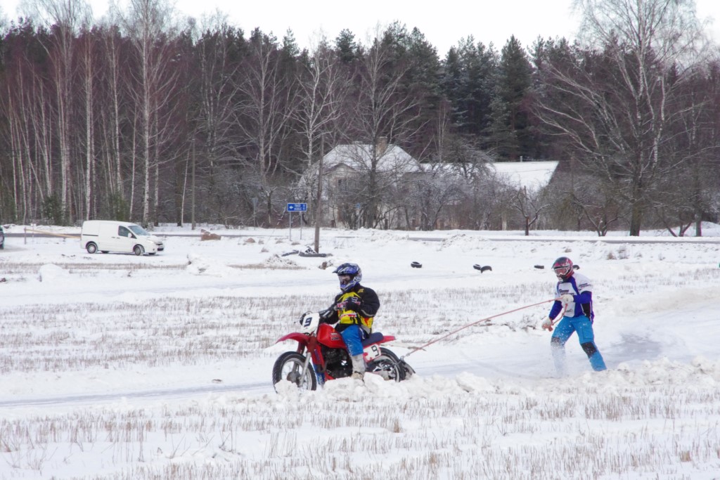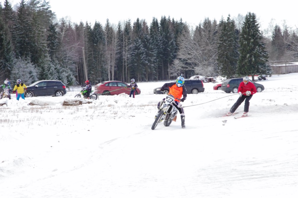 Lieliski organizēts skijoringa treniņš Ropažos! Laika apstākļi lieliski, pats pa priekšu mazo meistaru kalsē slēpojot, neviegli līdz finišam izturēju...nu, ne jau tik smagi, bet, bailes bij' nokrist, slēpojot ar vienu kāju pa trases ārmalas motoriepu risi, kurā katrā nākamajā aplī nezināju, ko sagaidīt - kūleni, vai ko tāsdā garā!