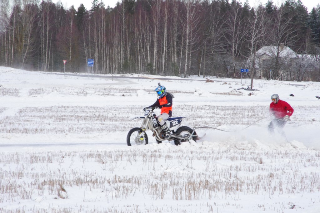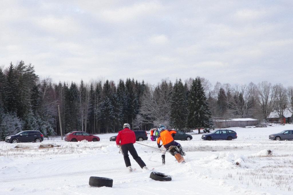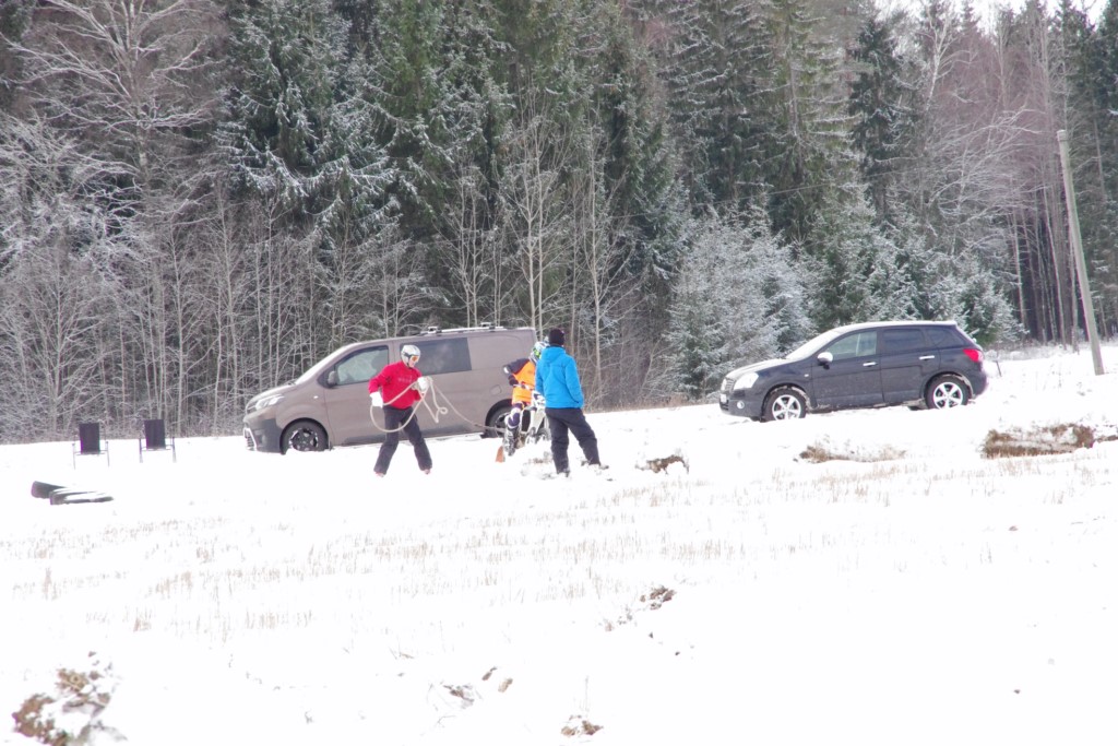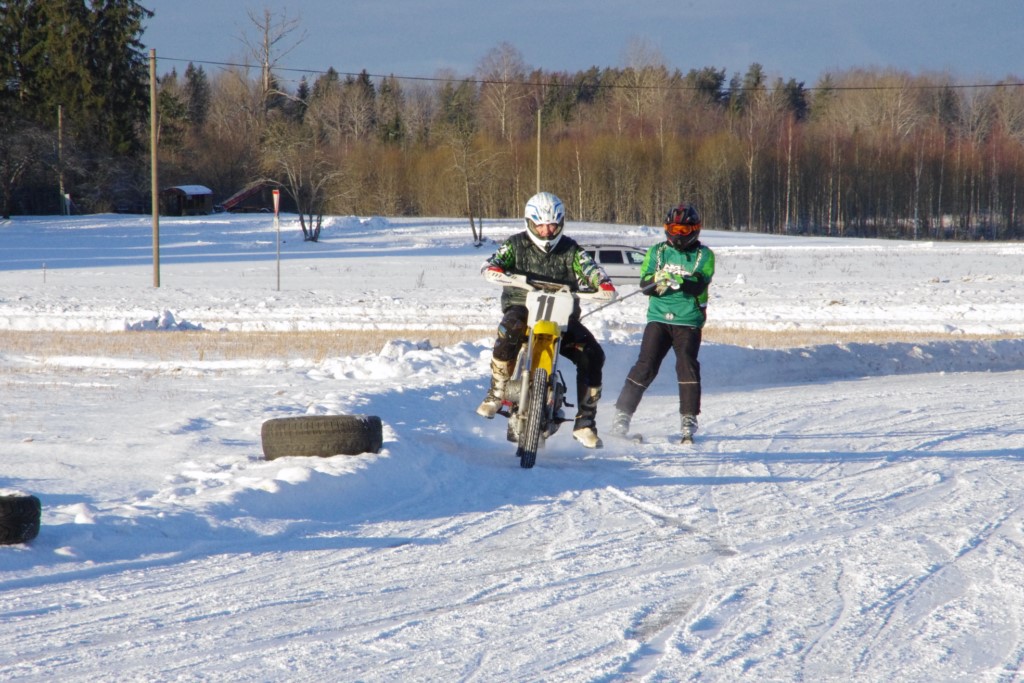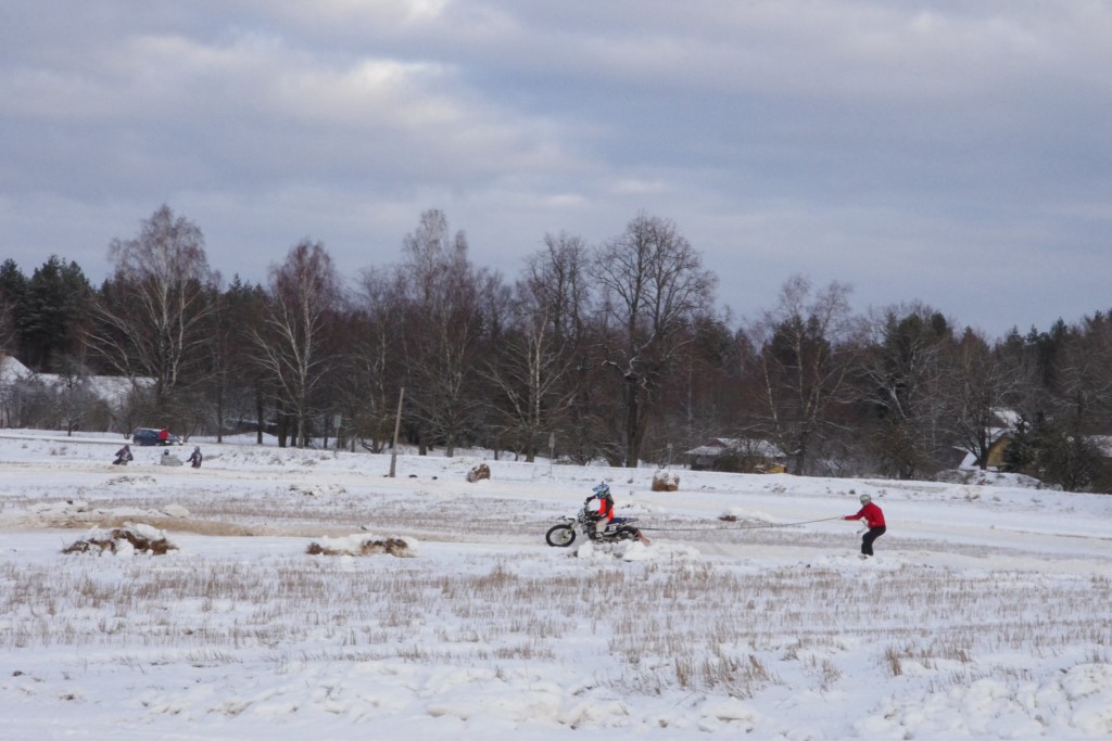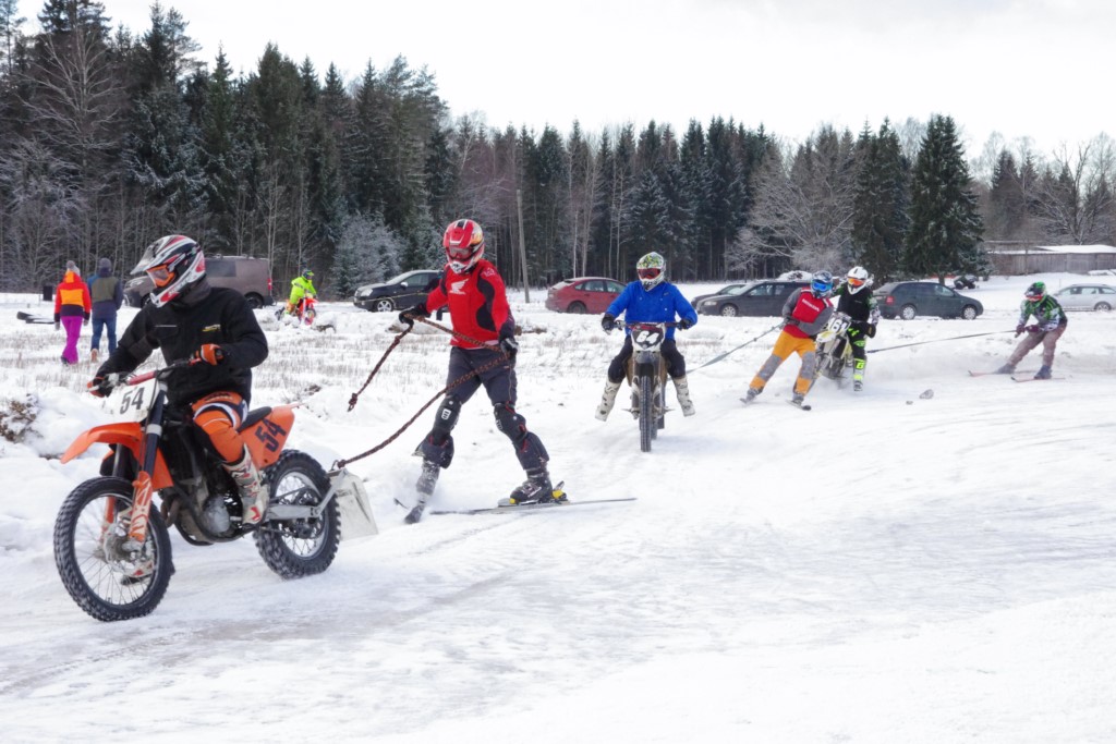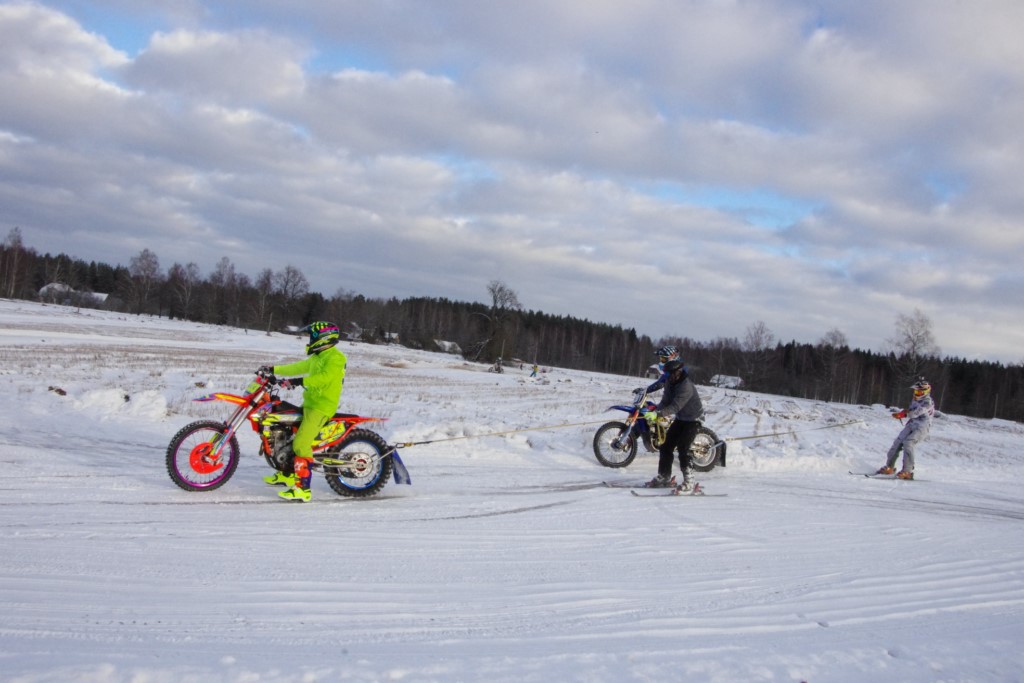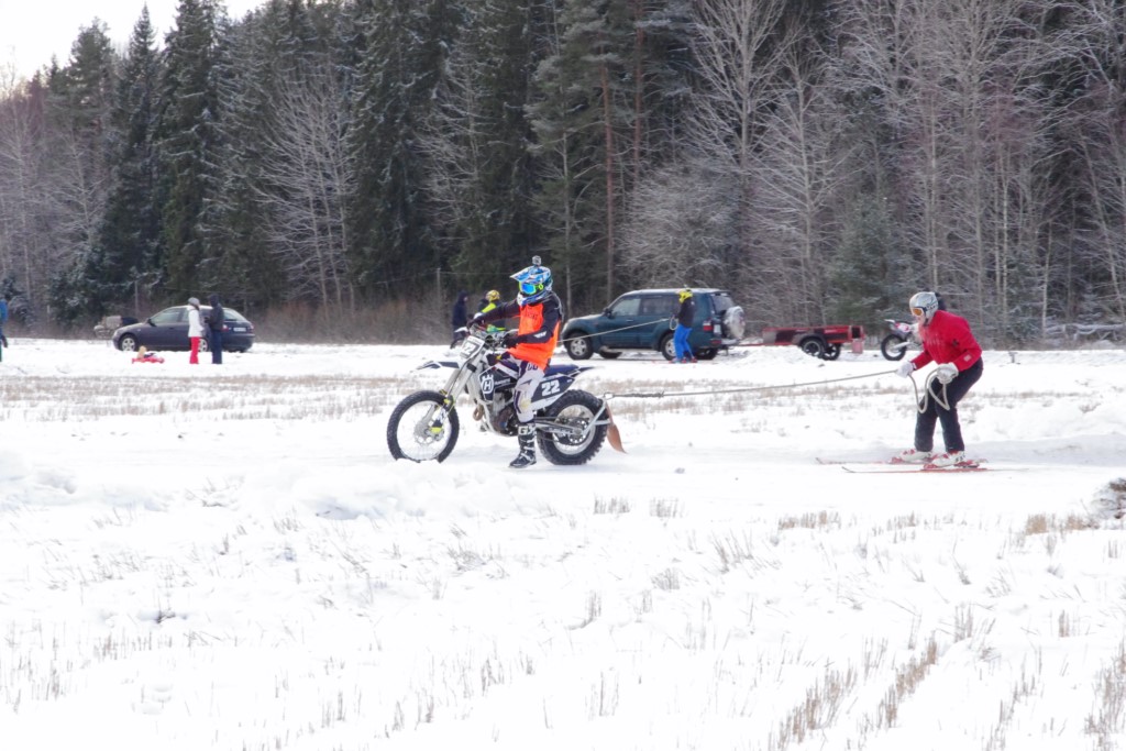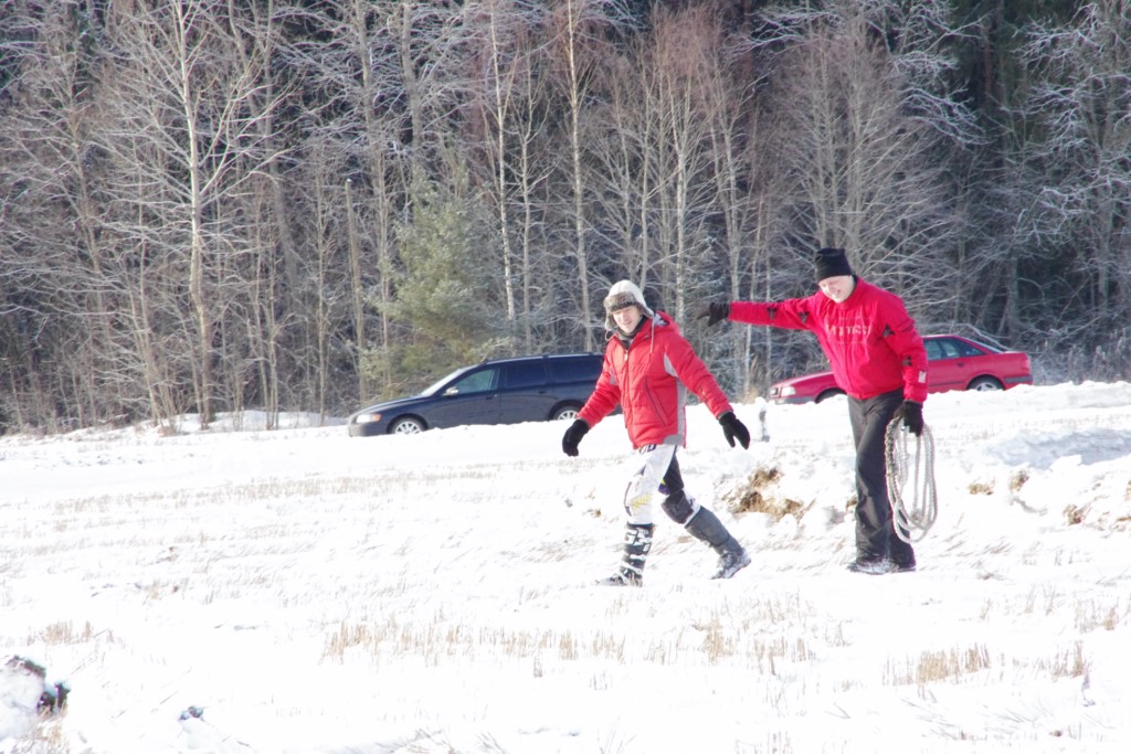 Lieliski organizēts skijoringa treniņš Ropažos! Laika apstākļi lieliski, pats pa priekšu mazo meistaru kalsē slēpojot, neviegli līdz finišam izturēju...nu, ne jau tik smagi, bet, bailes bij' nokrist, slēpojot ar vienu kāju pa trases ārmalas motoriepu risi, kurā katrā nākamajā aplī nezināju, ko sagaidīt - kūleni, vai ko tāsdā garā!