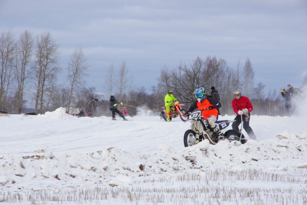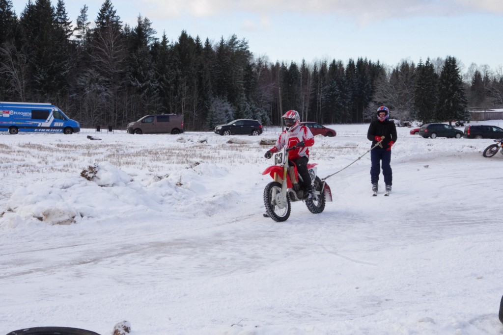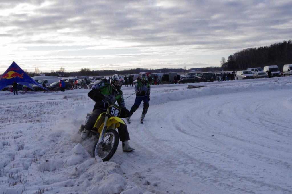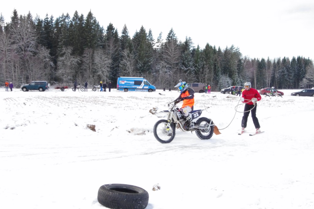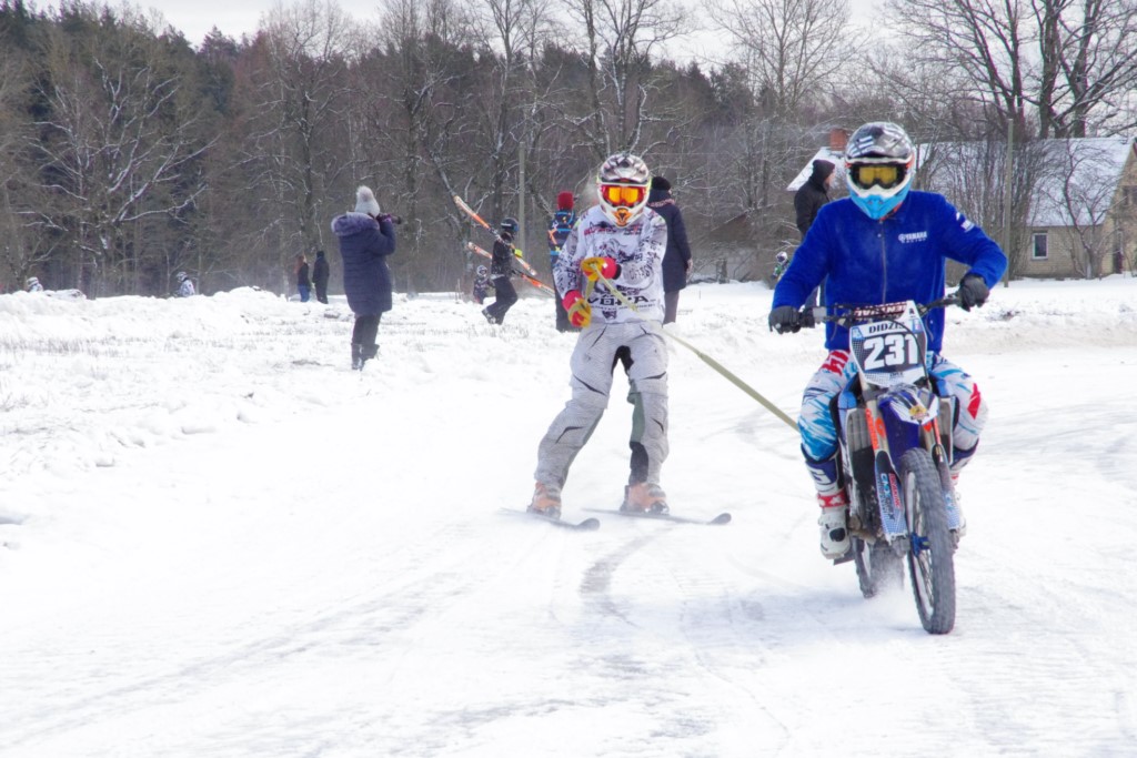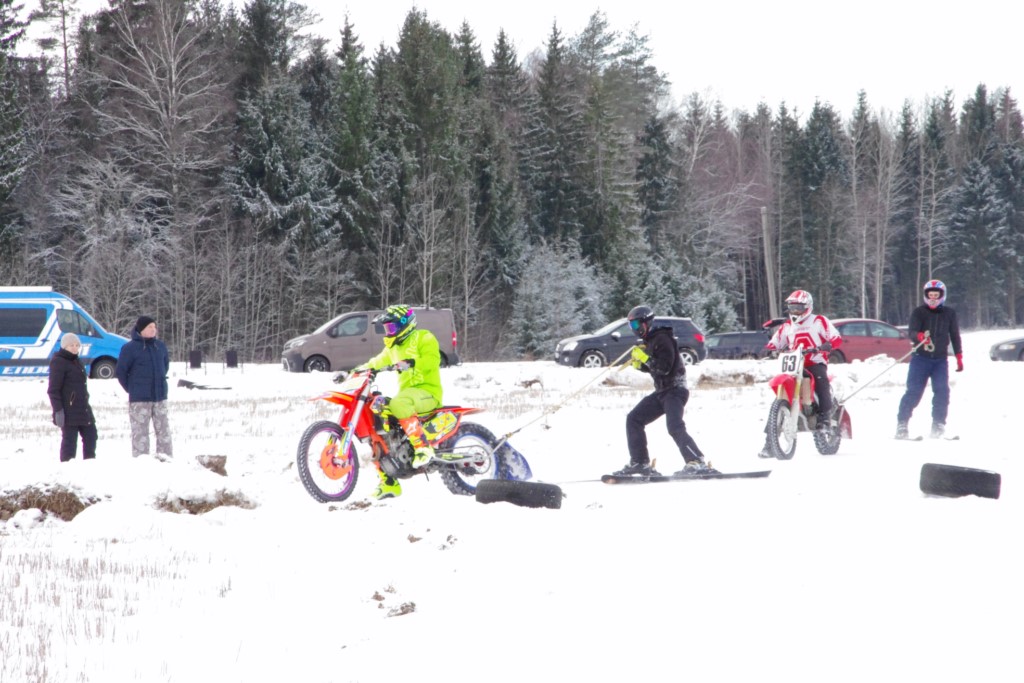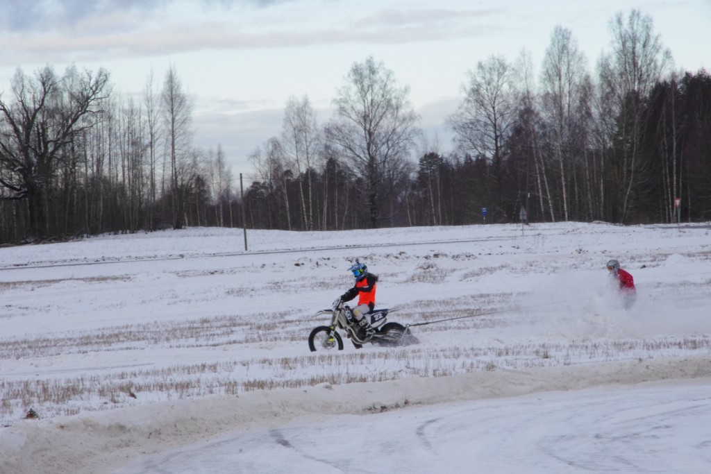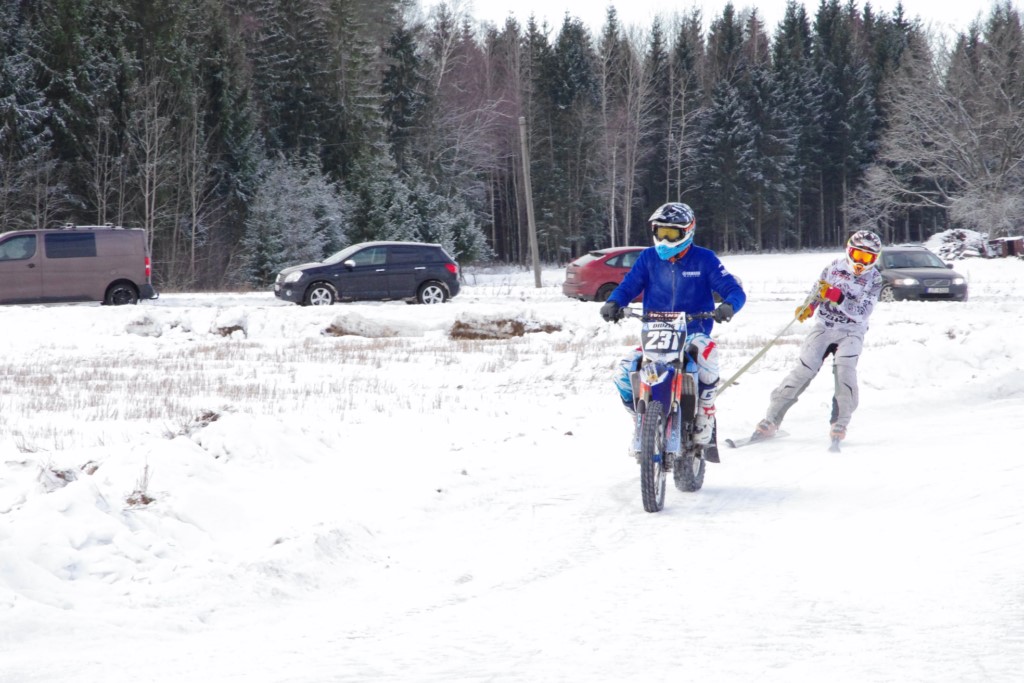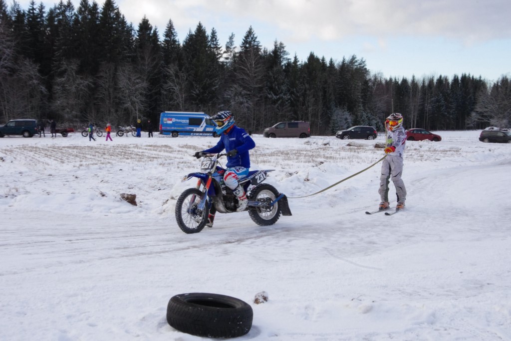 Lieliski organizēts skijoringa treniņš Ropažos! Laika apstākļi lieliski, pats pa priekšu mazo meistaru kalsē slēpojot, neviegli līdz finišam izturēju...nu, ne jau tik smagi, bet, bailes bij' nokrist, slēpojot ar vienu kāju pa trases ārmalas motoriepu risi, kurā katrā nākamajā aplī nezināju, ko sagaidīt - kūleni, vai ko tāsdā garā!