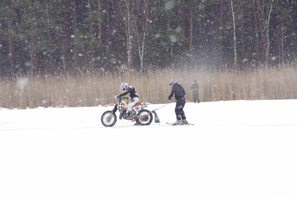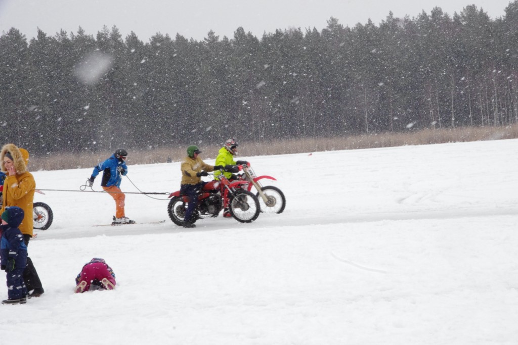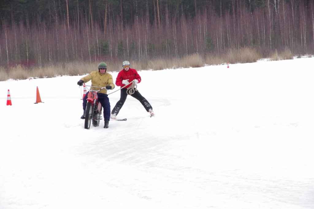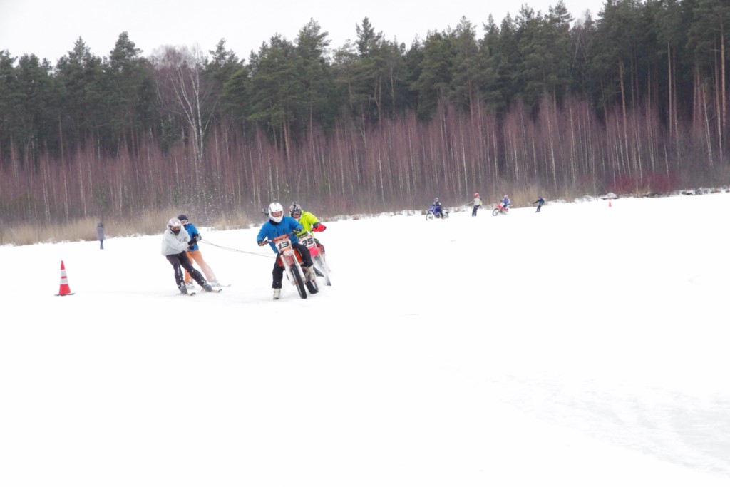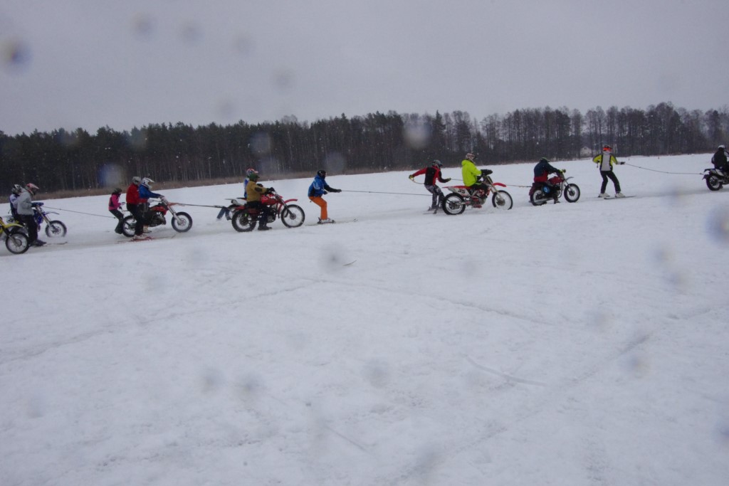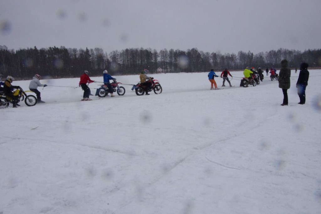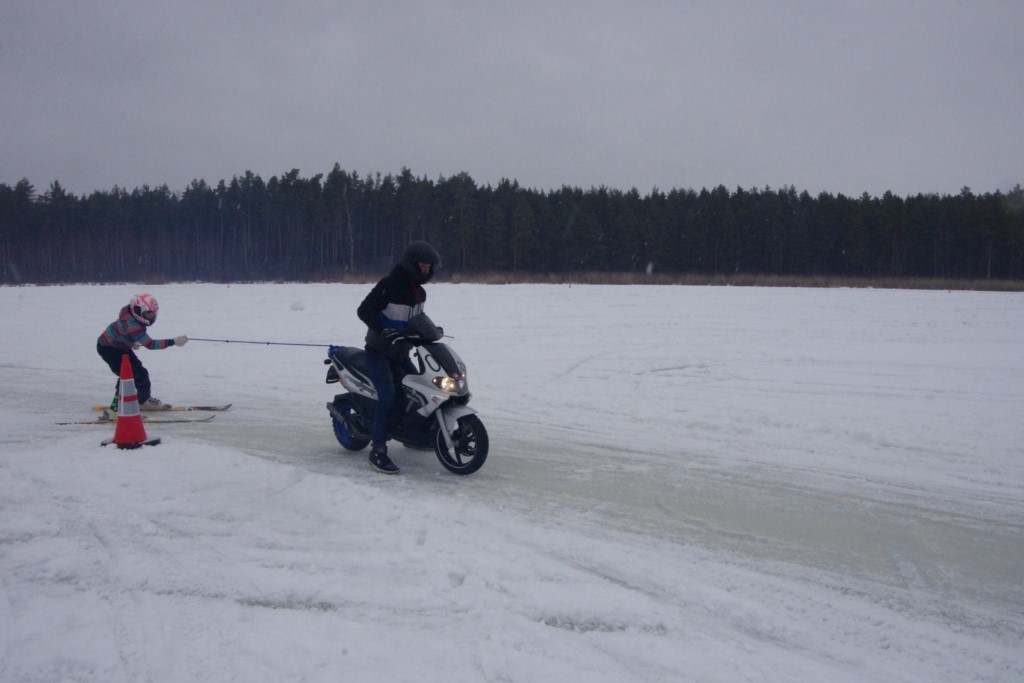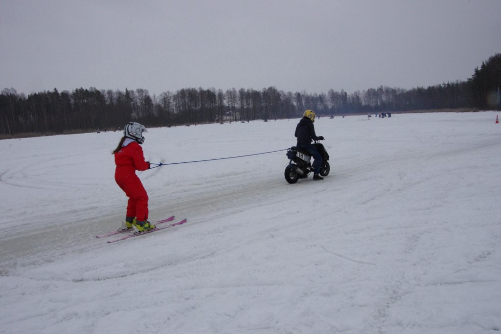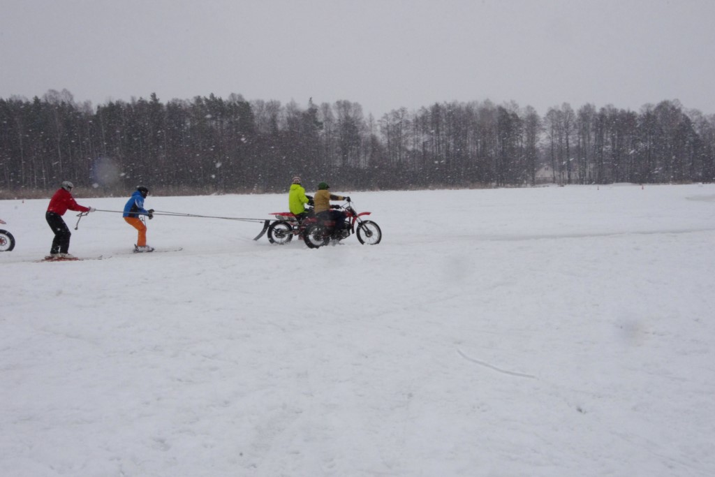 Vecā labā Brieža organizēts skijoringa treniņš Titurgā! Ledus,slapjš. Pats slēpoju aiz izcilā ledus meistera Jura Valeiņa. Lieliski, skaisti, slapji!