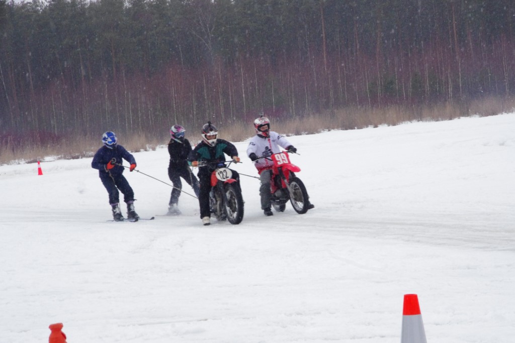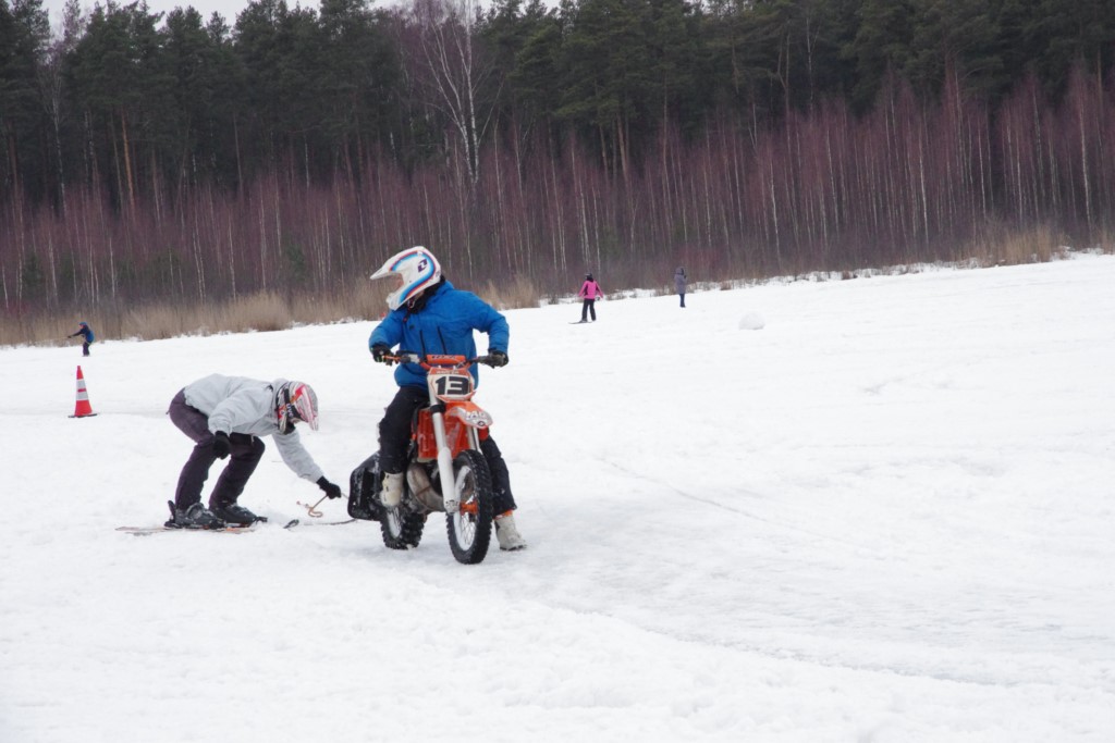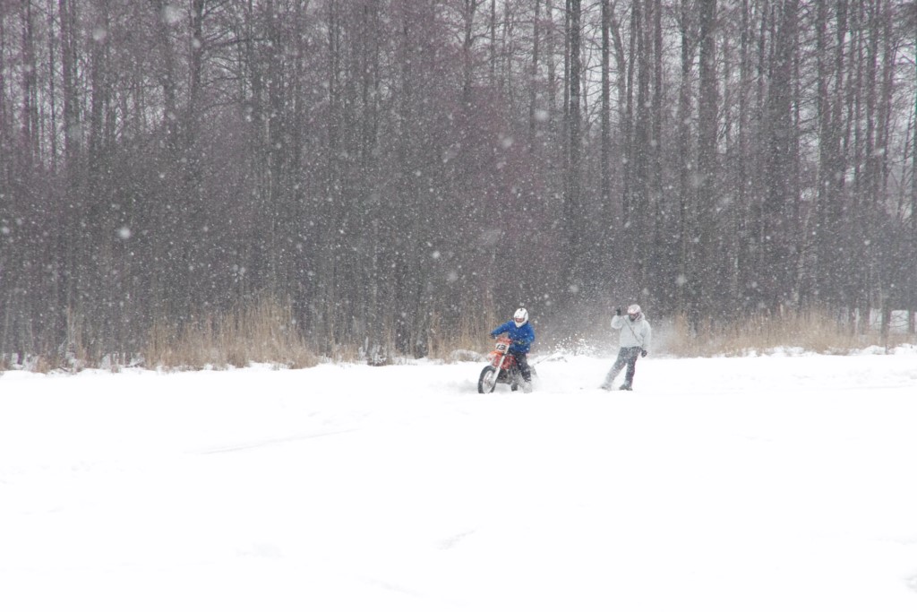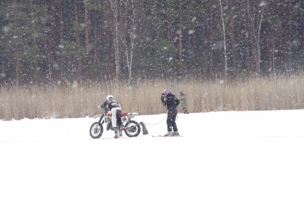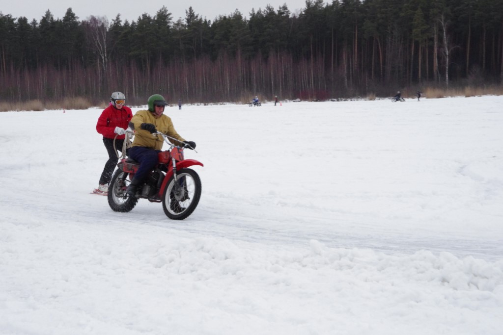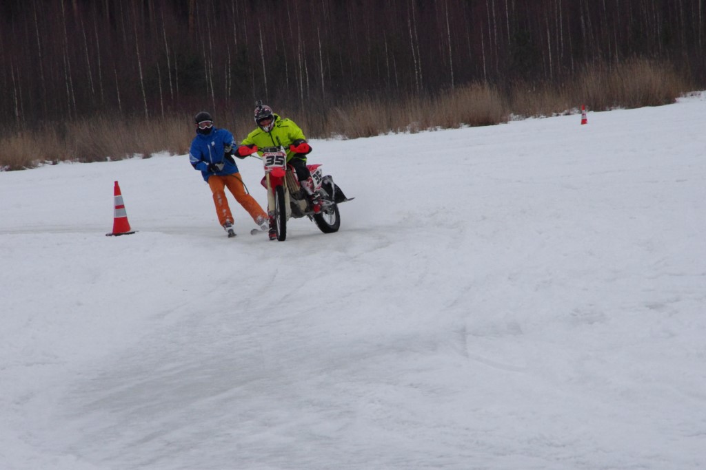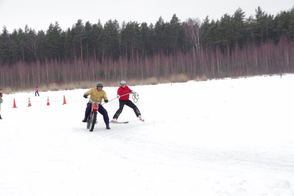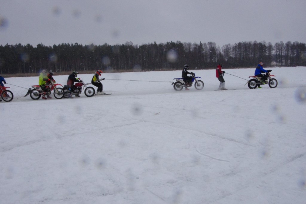 Vecā labā Brieža organizēts skijoringa treniņš Titurgā! Ledus,slapjš. Pats slēpoju aiz izcilā ledus meistera Jura Valeiņa. Lieliski, skaisti, slapji!