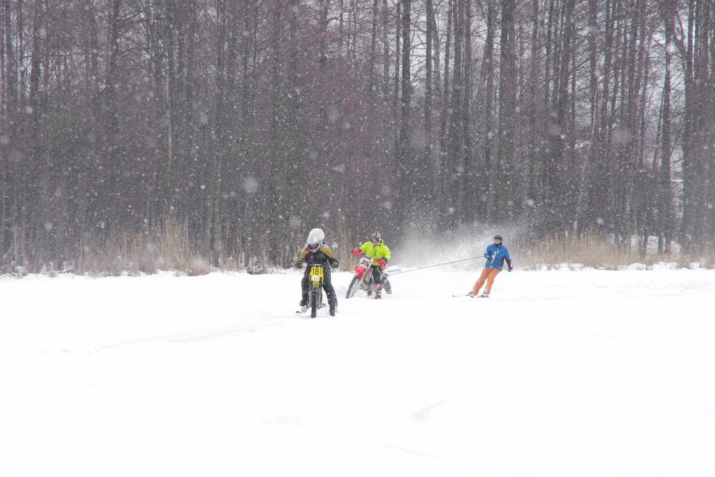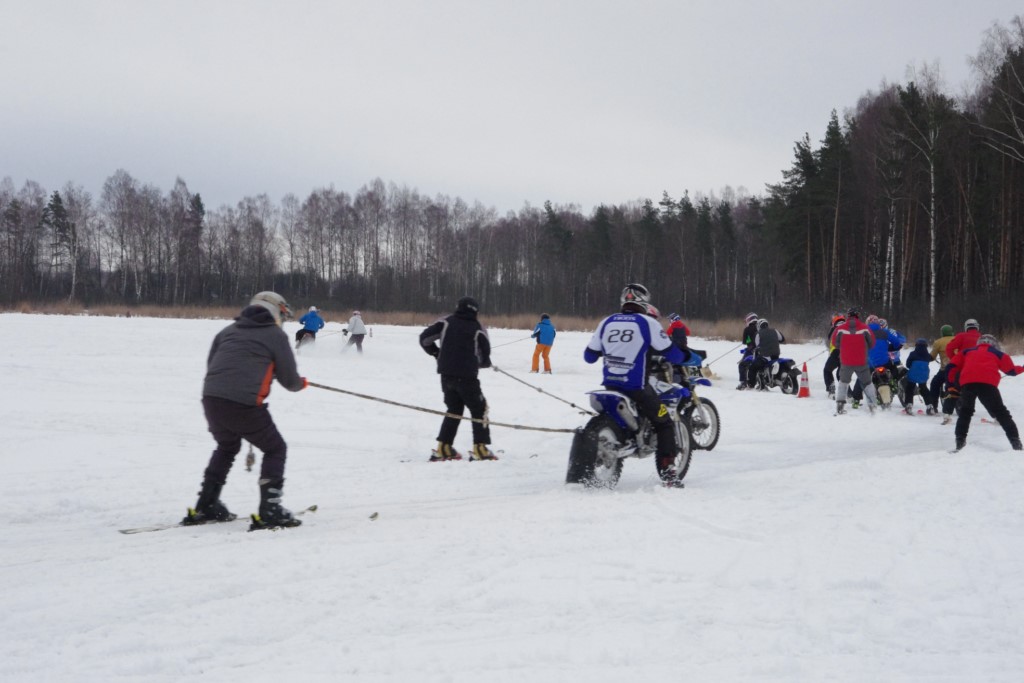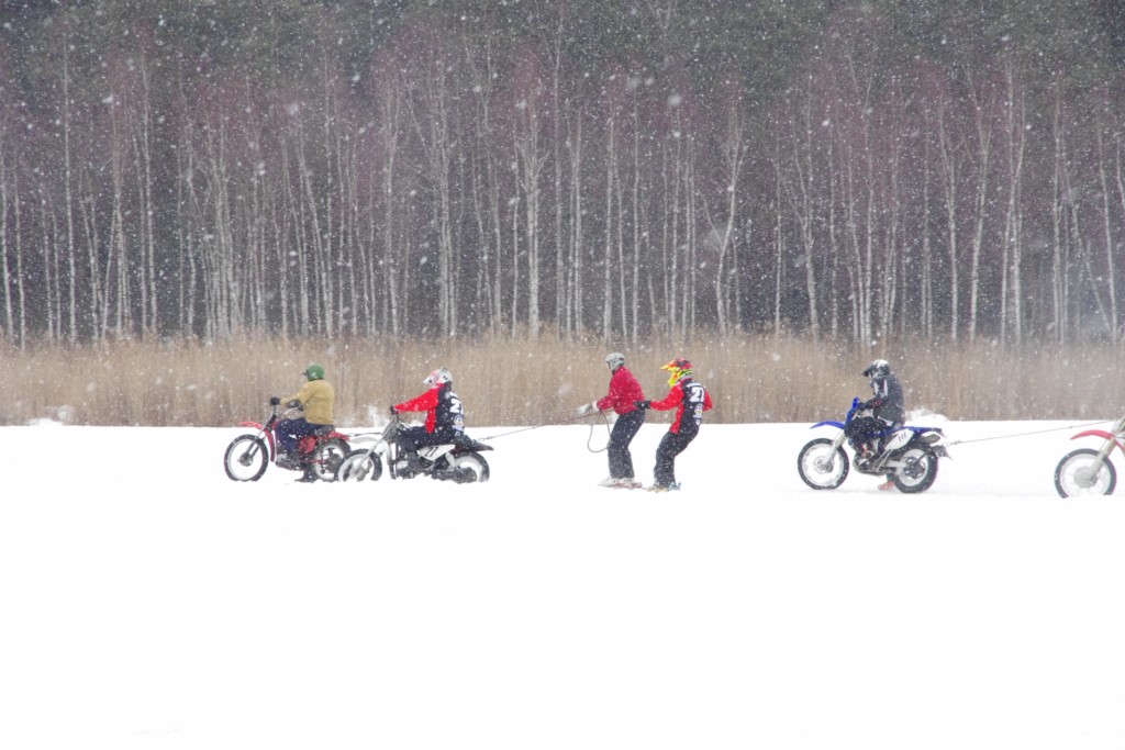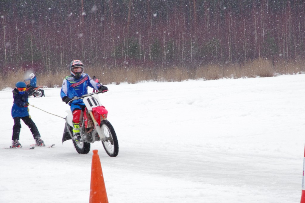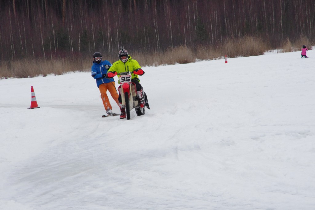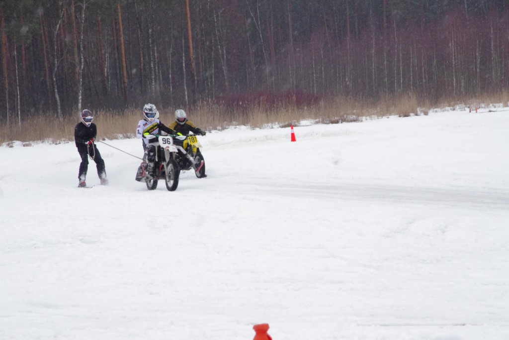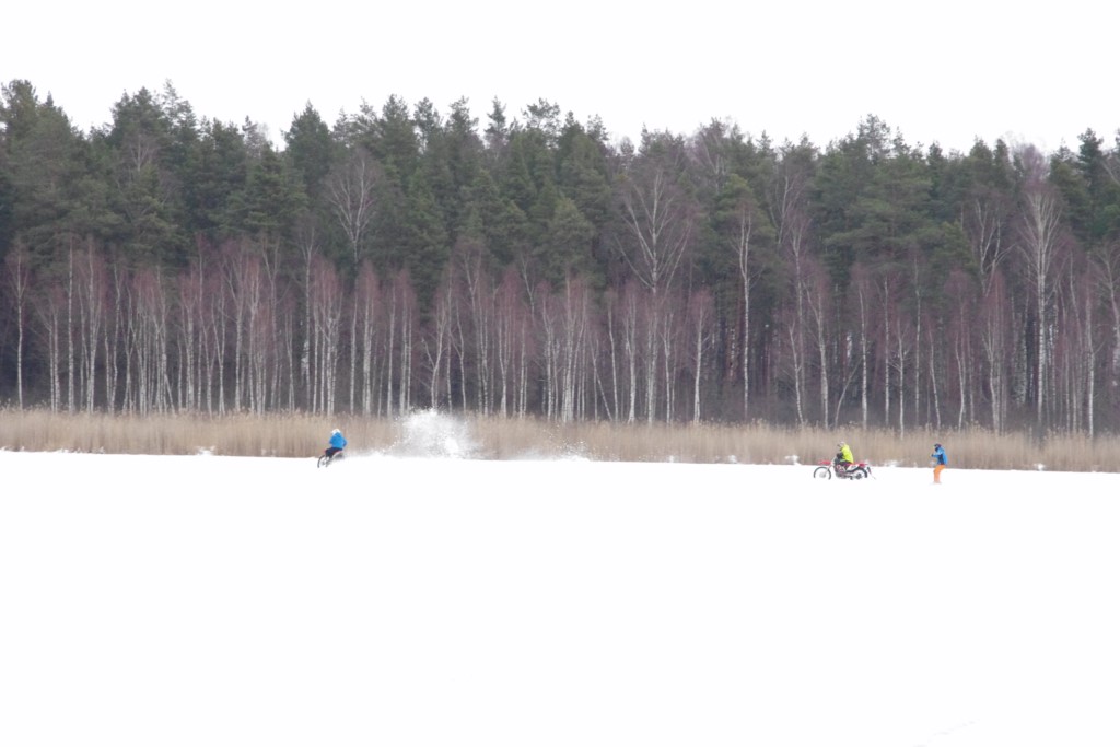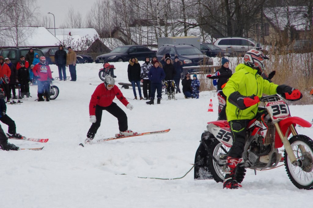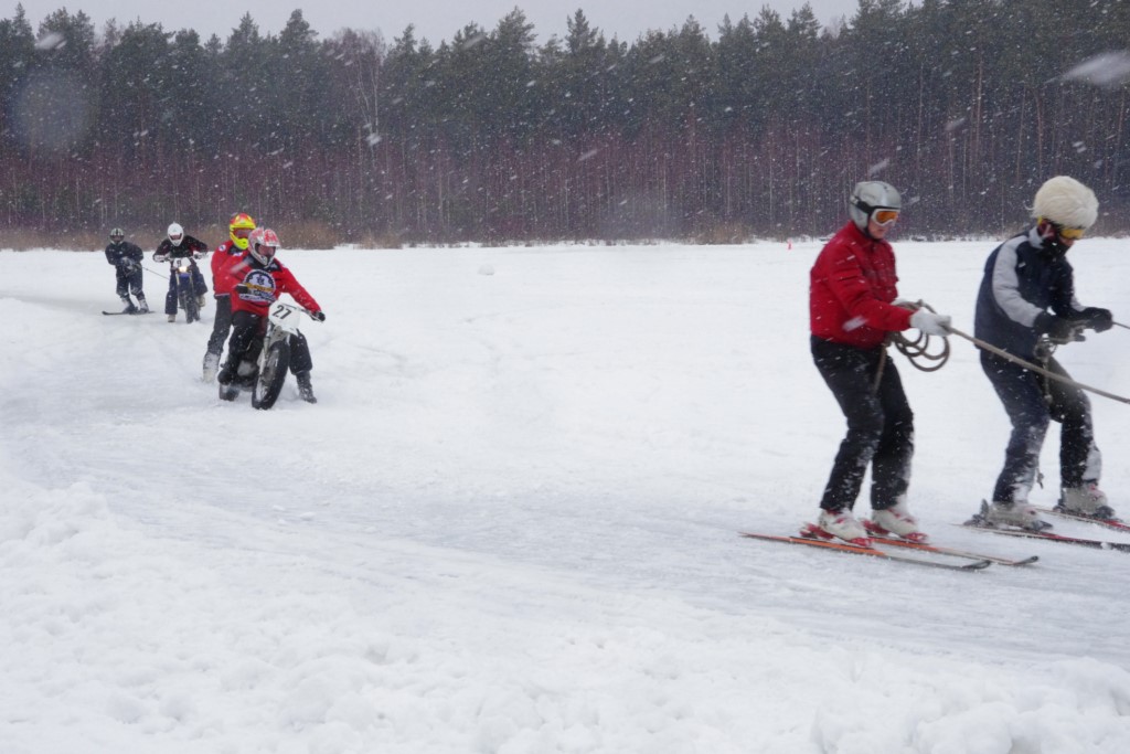 Vecā labā Brieža organizēts skijoringa treniņš Titurgā! Ledus,slapjš. Pats slēpoju aiz izcilā ledus meistera Jura Valeiņa. Lieliski, skaisti, slapji!