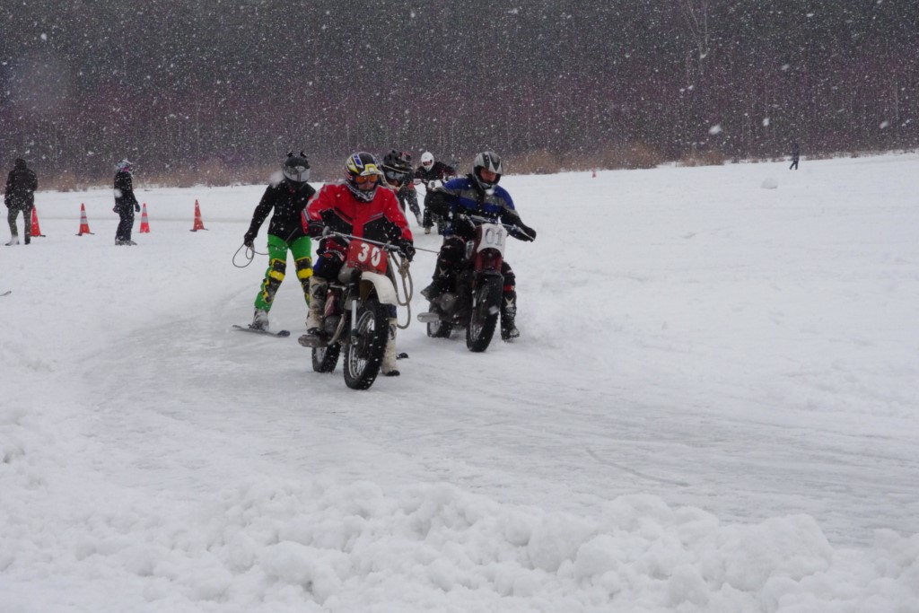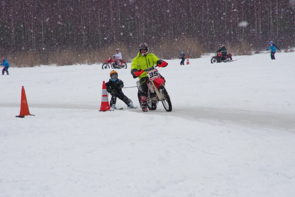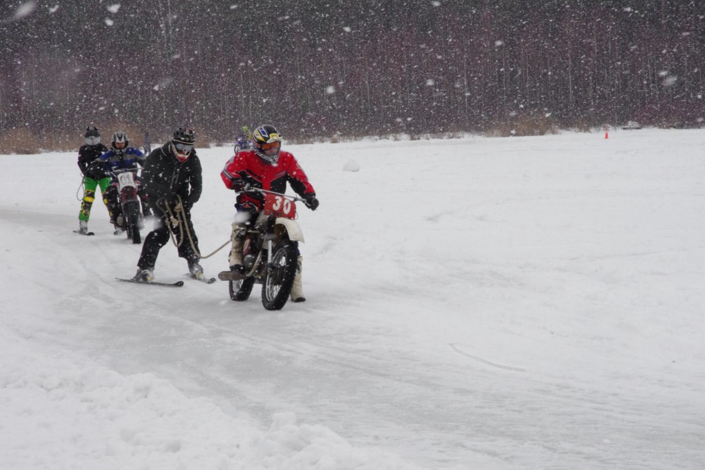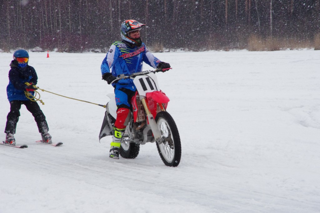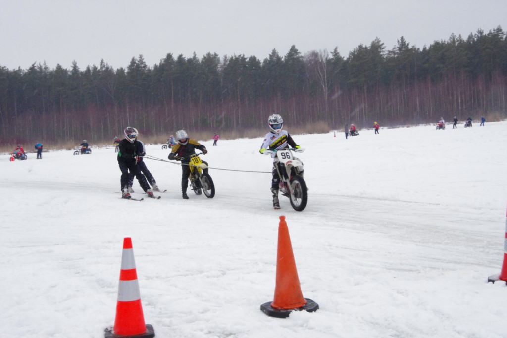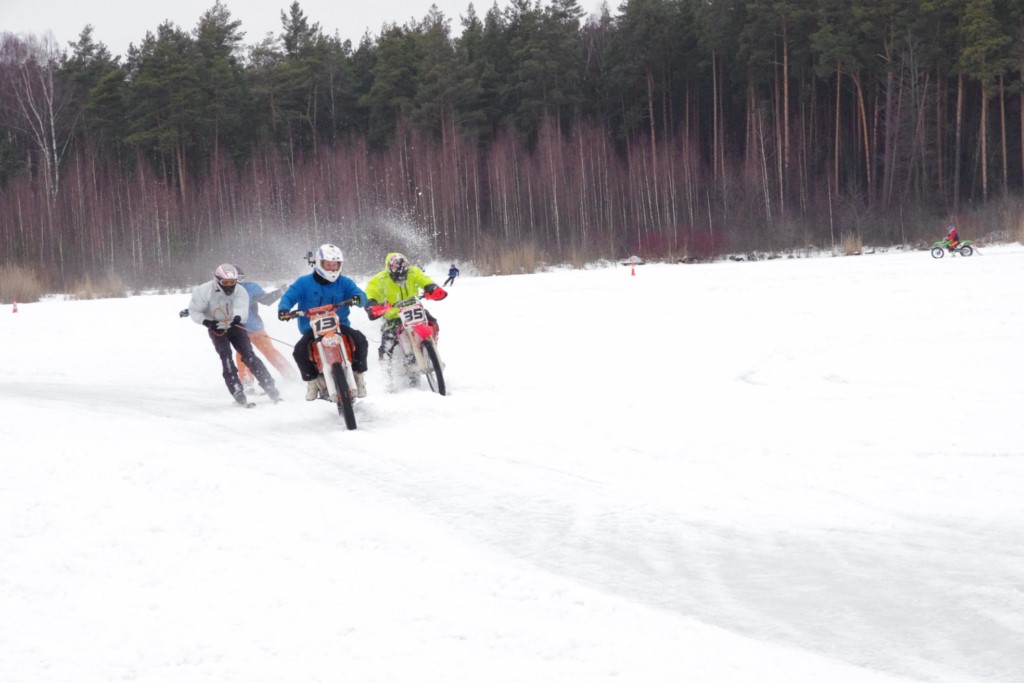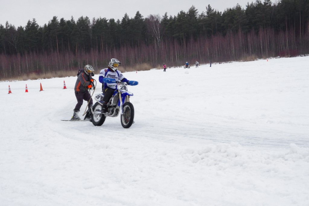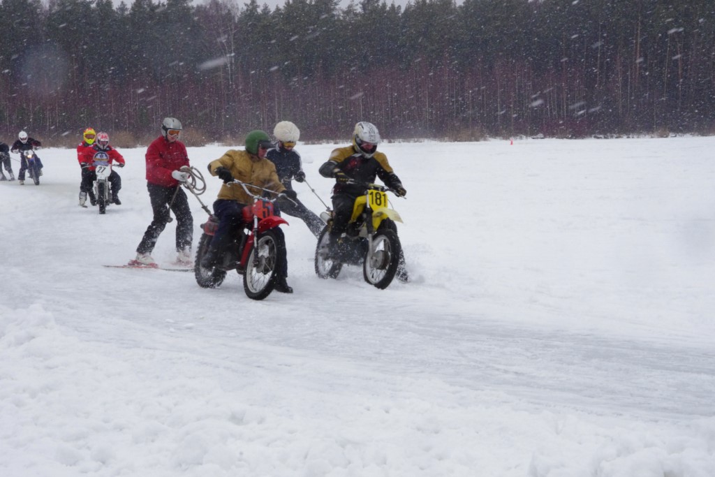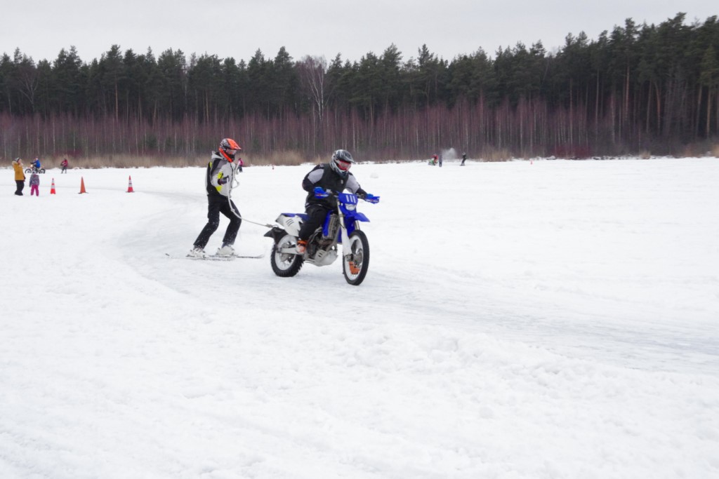 Vecā labā Brieža organizēts skijoringa treniņš Titurgā! Ledus,slapjš. Pats slēpoju aiz izcilā ledus meistera Jura Valeiņa. Lieliski, skaisti, slapji!
