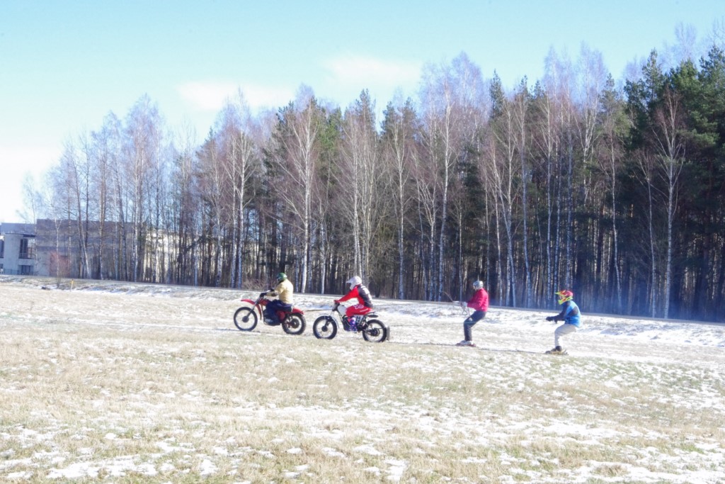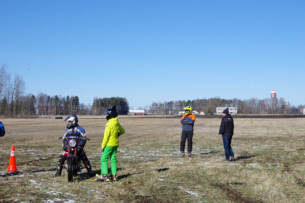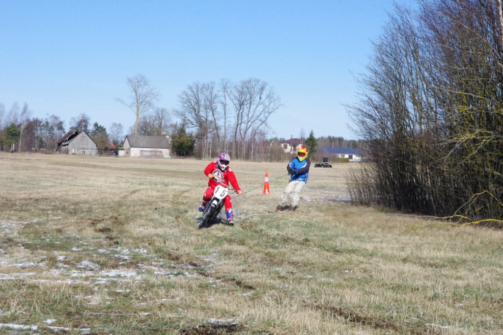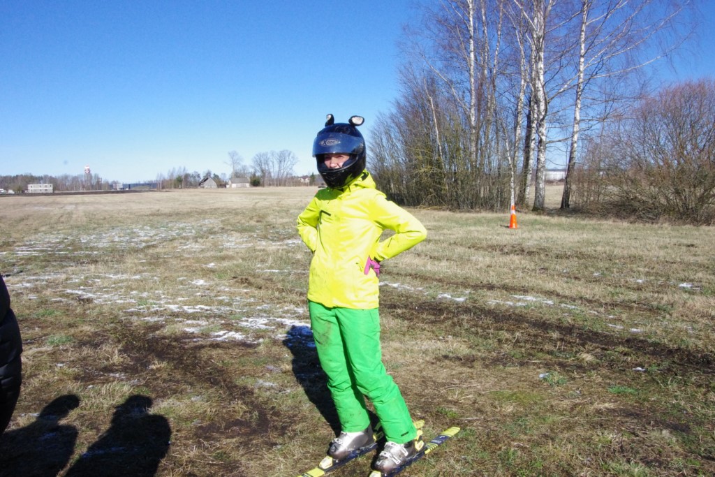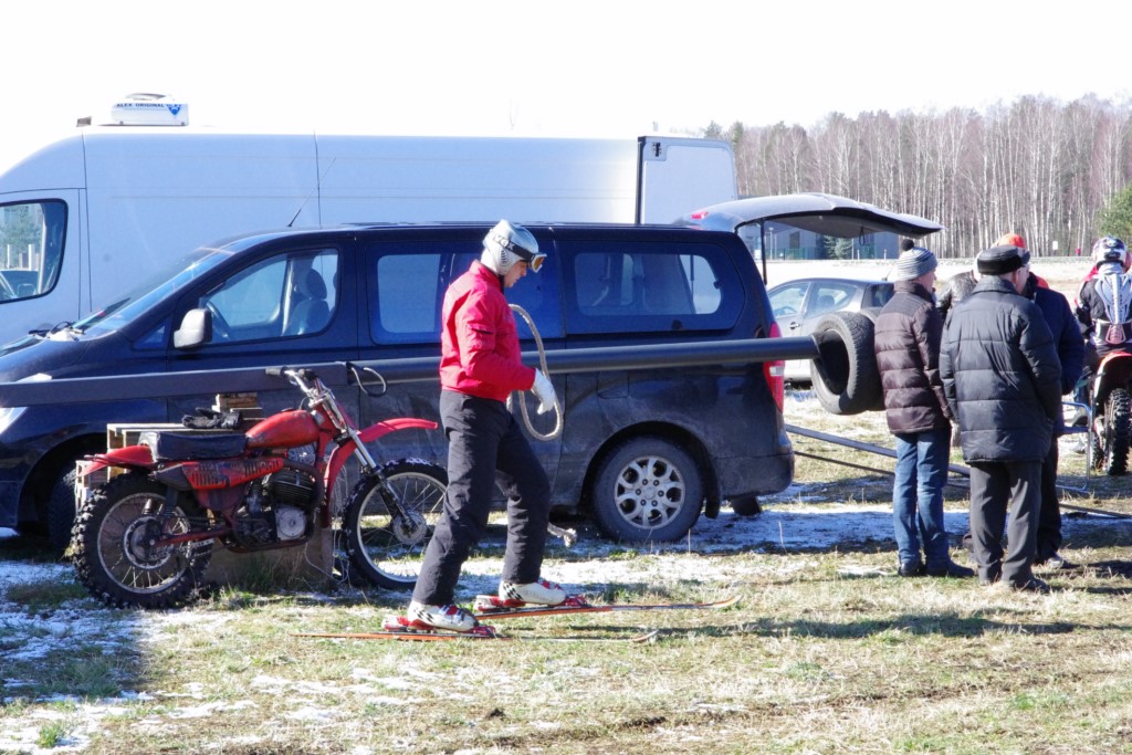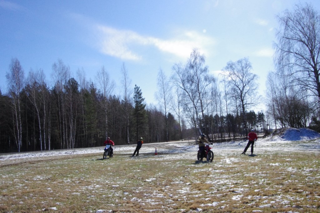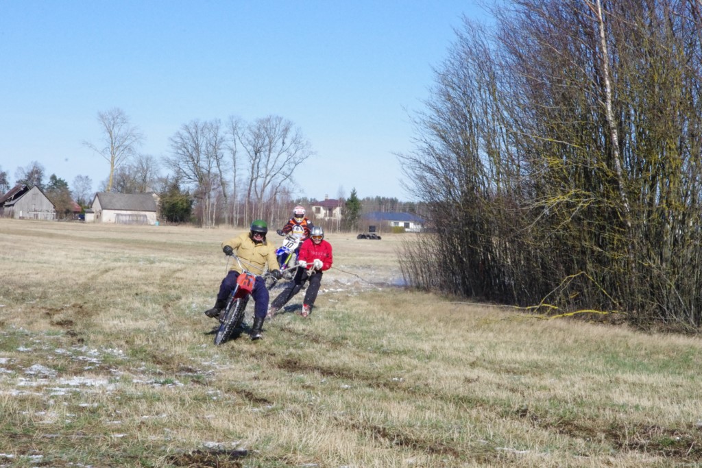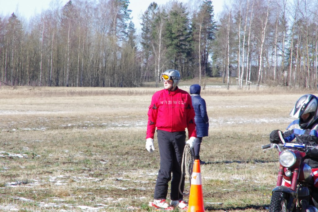Laiciņu pēc piedalīšanās Korejas TV filmā "Sporta lielvalsts Latvija" mani vajāja doma papētīt tuvāk manis paša filmā nodemonstrēto skijoringa slēpošanu bezsniega apstākļos. 29.02.2020. gadskārtējā Latvijas motosporta veterānu tusiņā šo ideju pastāstīju Jurim Valeinim, un arī viņu šī doma šīgada apstākļos, kuros rudens plūstoši pārgāja pavasarī, ieinteresēja. Domāts, darīts un te, nu, mēs jau trešreiz ampelējamies ar skijoringu Jura pļavā, kurā vēl bik' kaukāds sniega pulveris saglabājies. Šodien saulīte. Divi braucieni pa trīs apļiem katrs. Protams, ka pļava ar pavisam drusku snega piebirumu nav nekāda medusmaize slēpošanai, īpaši ... otrajā braucienā. Bet tas sacensību zibens formāts trīs mazu apļu veidā ir, pat, slēpotājam, ...pat baudāms. Par bezsniega skija slēpošanas teoriju ko bišku uzrakstīju blakus sadaļā.