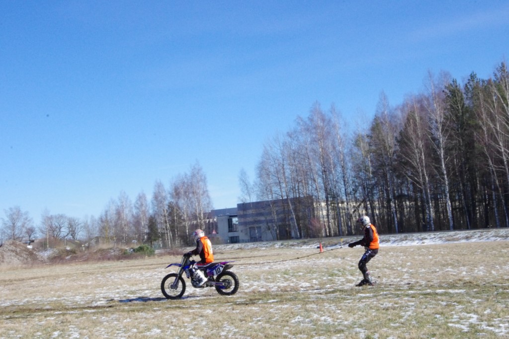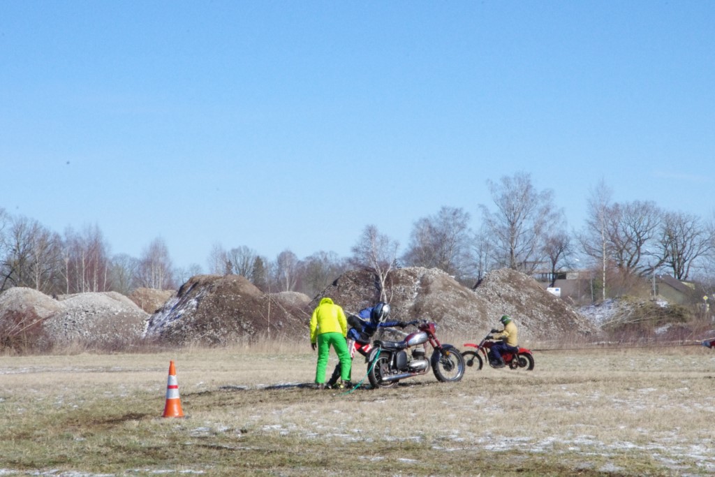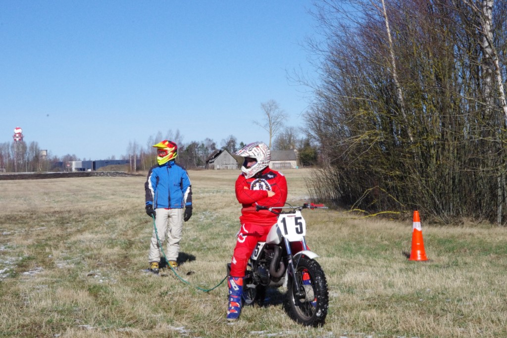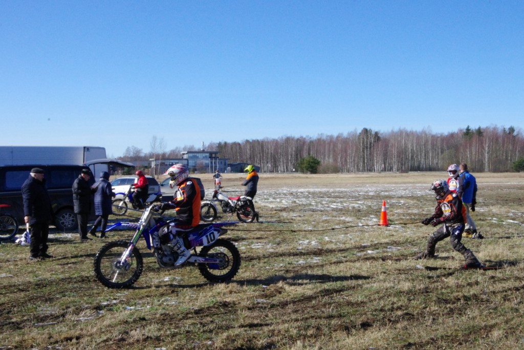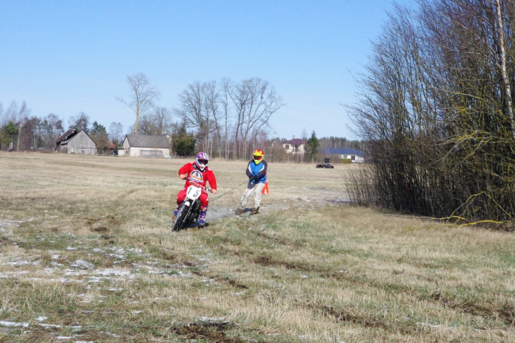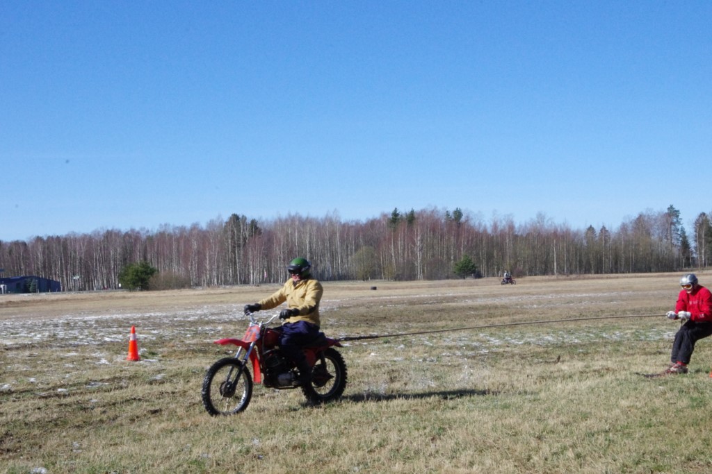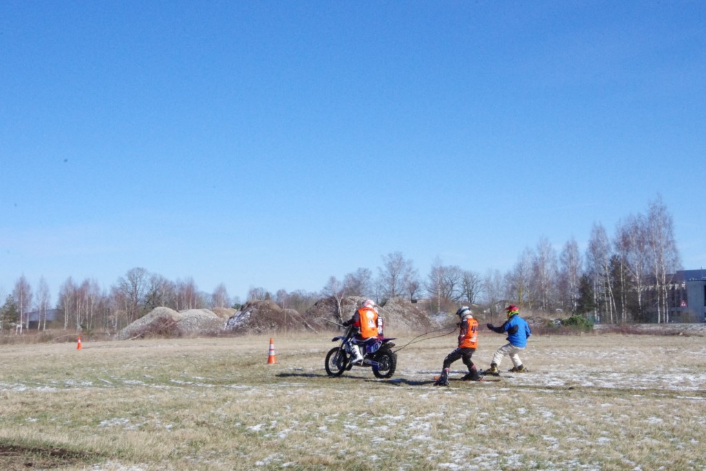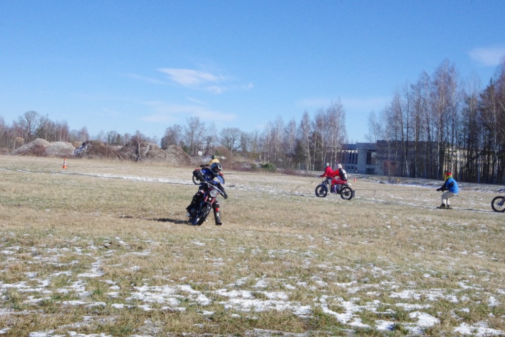 Laiciņu pēc piedalīšanās Korejas TV filmā "Sporta lielvalsts Latvija" mani vajāja doma papētīt tuvāk manis paša filmā nodemonstrēto skijoringa slēpošanu bezsniega apstākļos. 29.02.2020. gadskārtējā Latvijas motosporta veterānu tusiņā šo ideju pastāstīju Jurim Valeinim, un arī viņu šī doma šīgada apstākļos, kuros rudens plūstoši pārgāja pavasarī, ieinteresēja. Domāts, darīts un te, nu, mēs jau trešreiz ampelējamies ar skijoringu Jura pļavā, kurā vēl bik' kaukāds sniega pulveris saglabājies. Šodien saulīte. Divi braucieni pa trīs apļiem katrs. Protams, ka pļava ar pavisam drusku snega piebirumu nav nekāda medusmaize slēpošanai, īpaši ... otrajā braucienā. Bet tas sacensību zibens formāts trīs mazu apļu veidā ir, pat, slēpotājam, ...pat baudāms. Par bezsniega skija slēpošanas teoriju ko bišku uzrakstīju blakus sadaļā.