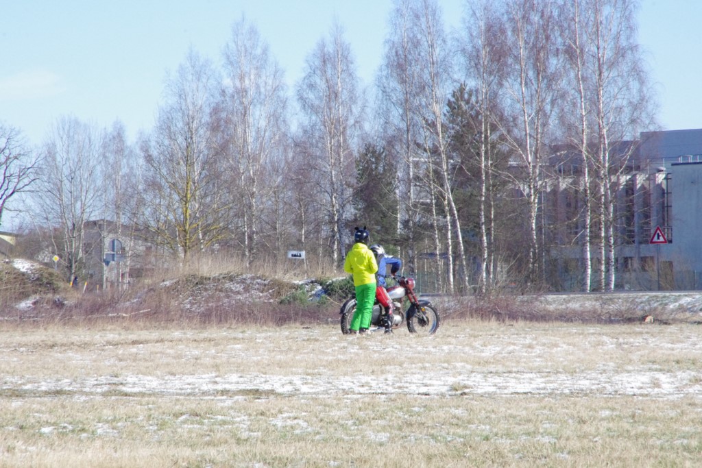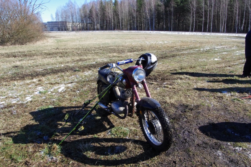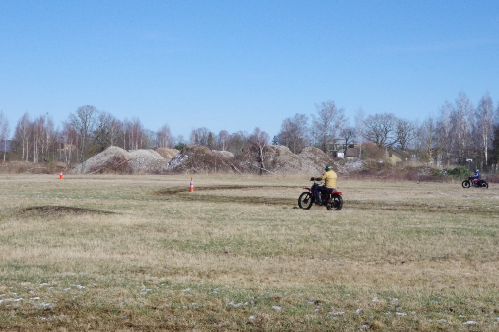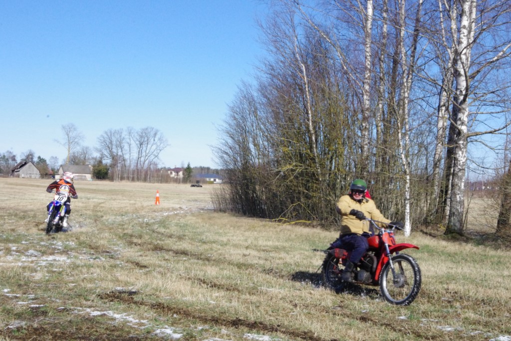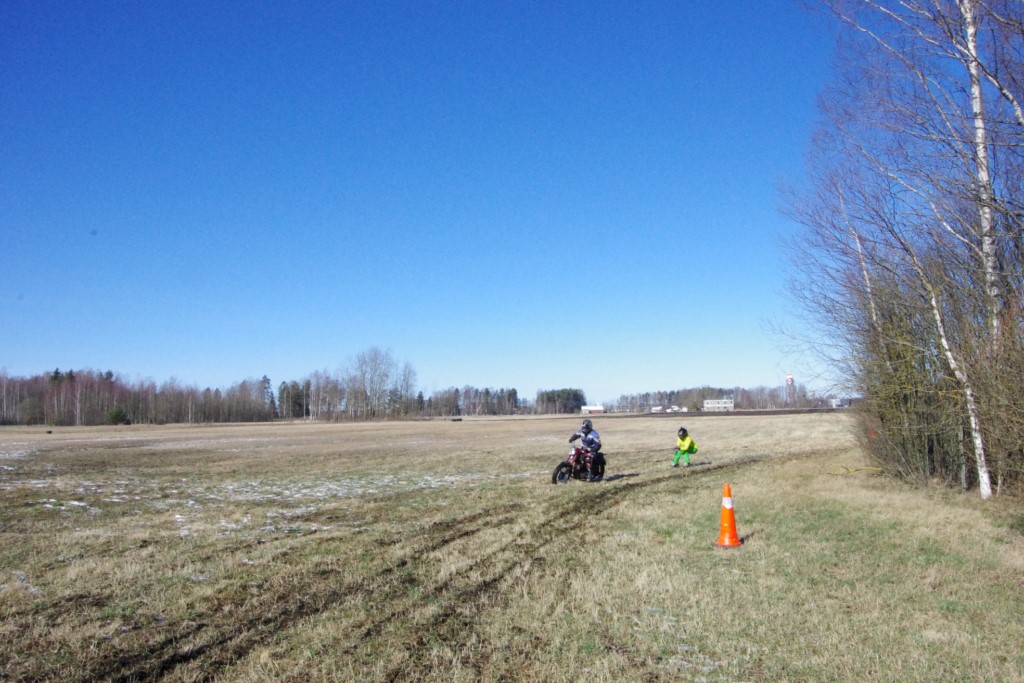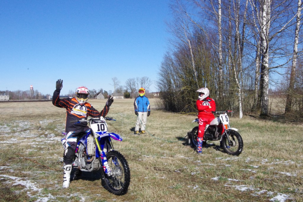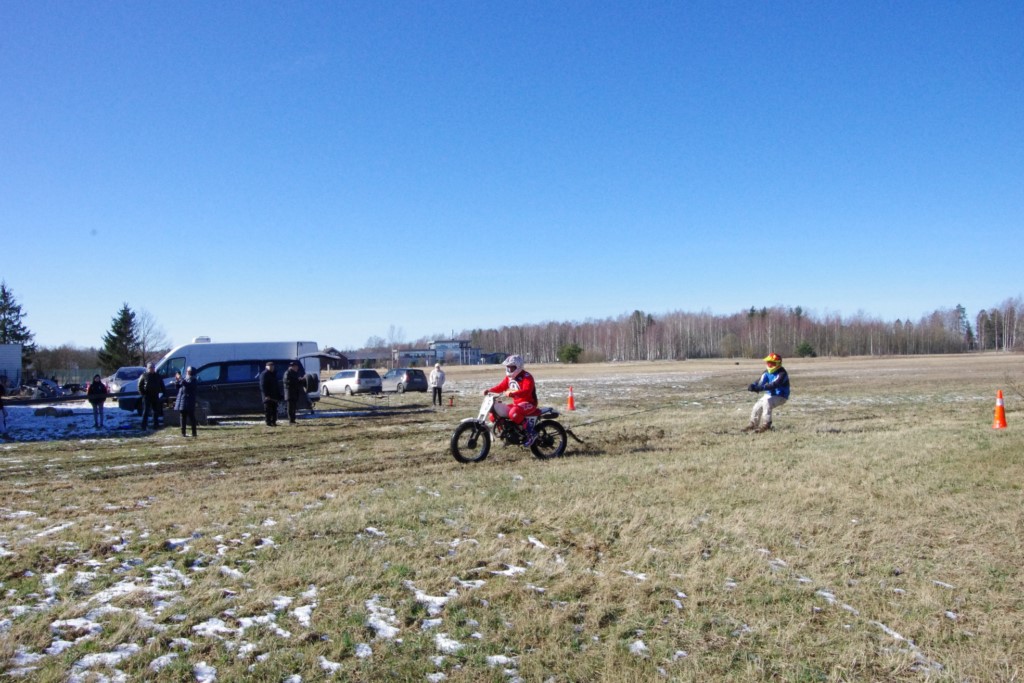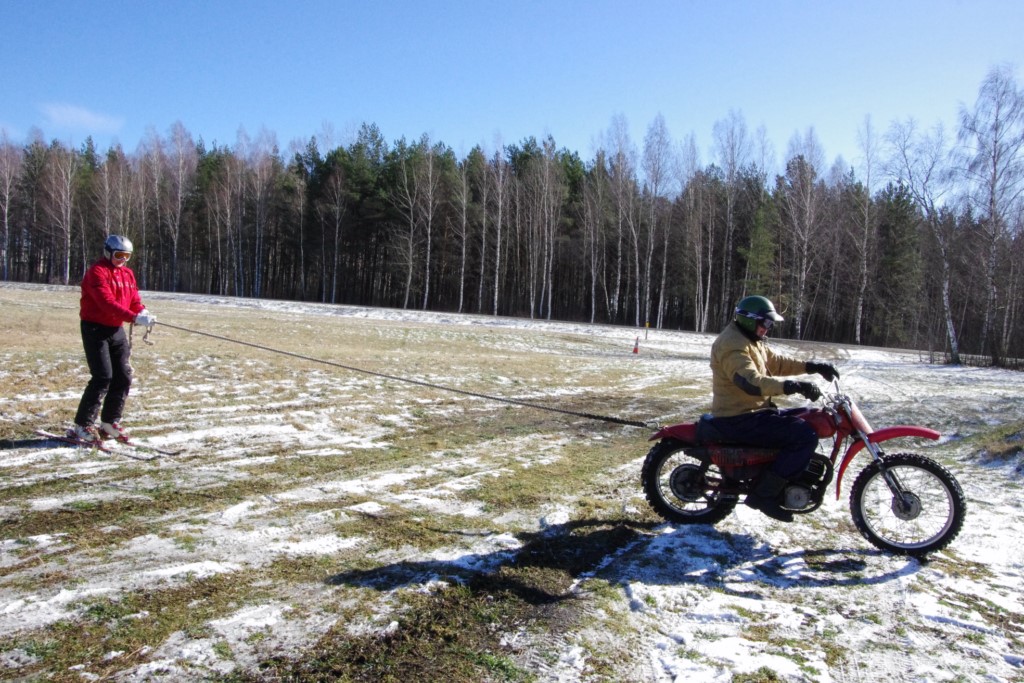 Laiciņu pēc piedalīšanās Korejas TV filmā "Sporta lielvalsts Latvija" mani vajāja doma papētīt tuvāk manis paša filmā nodemonstrēto skijoringa slēpošanu bezsniega apstākļos. 29.02.2020. gadskārtējā Latvijas motosporta veterānu tusiņā šo ideju pastāstīju Jurim Valeinim, un arī viņu šī doma šīgada apstākļos, kuros rudens plūstoši pārgāja pavasarī, ieinteresēja. Domāts, darīts un te, nu, mēs jau trešreiz ampelējamies ar skijoringu Jura pļavā, kurā vēl bik' kaukāds sniega pulveris saglabājies. Šodien saulīte. Divi braucieni pa trīs apļiem katrs. Protams, ka pļava ar pavisam drusku snega piebirumu nav nekāda medusmaize slēpošanai, īpaši ... otrajā braucienā. Bet tas sacensību zibens formāts trīs mazu apļu veidā ir, pat, slēpotājam, ...pat baudāms. Par bezsniega skija slēpošanas teoriju ko bišku uzrakstīju blakus sadaļā.