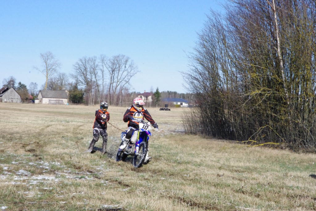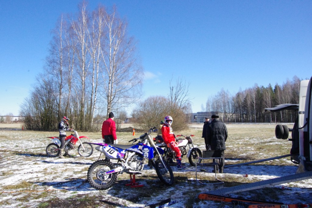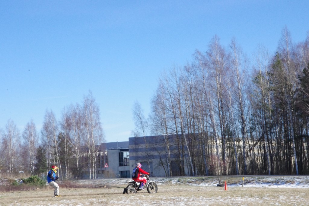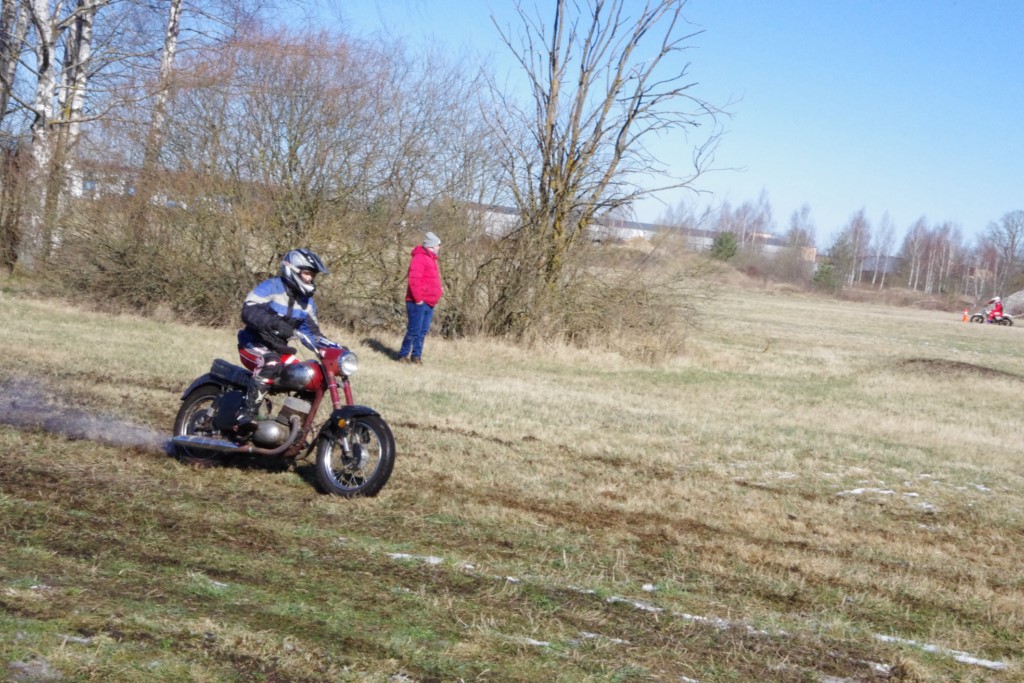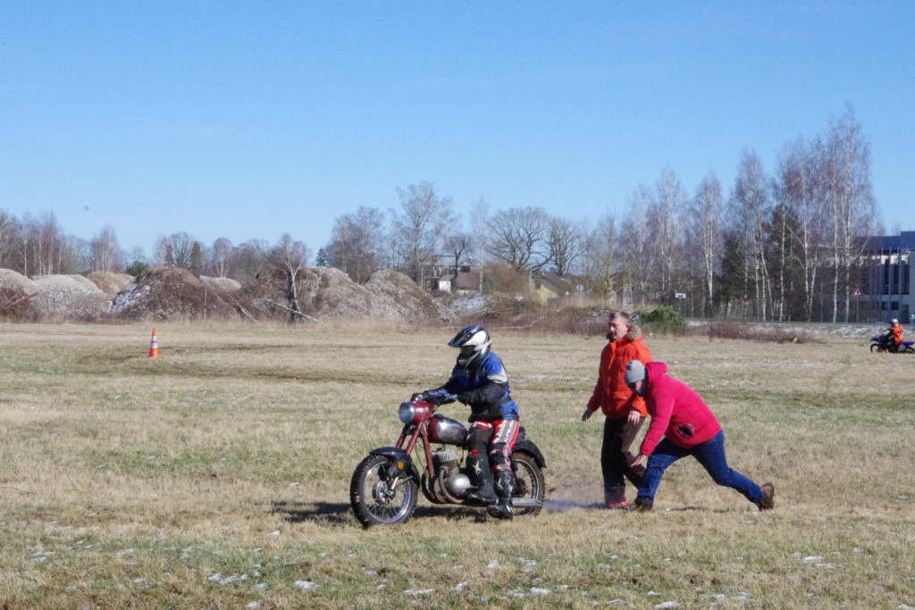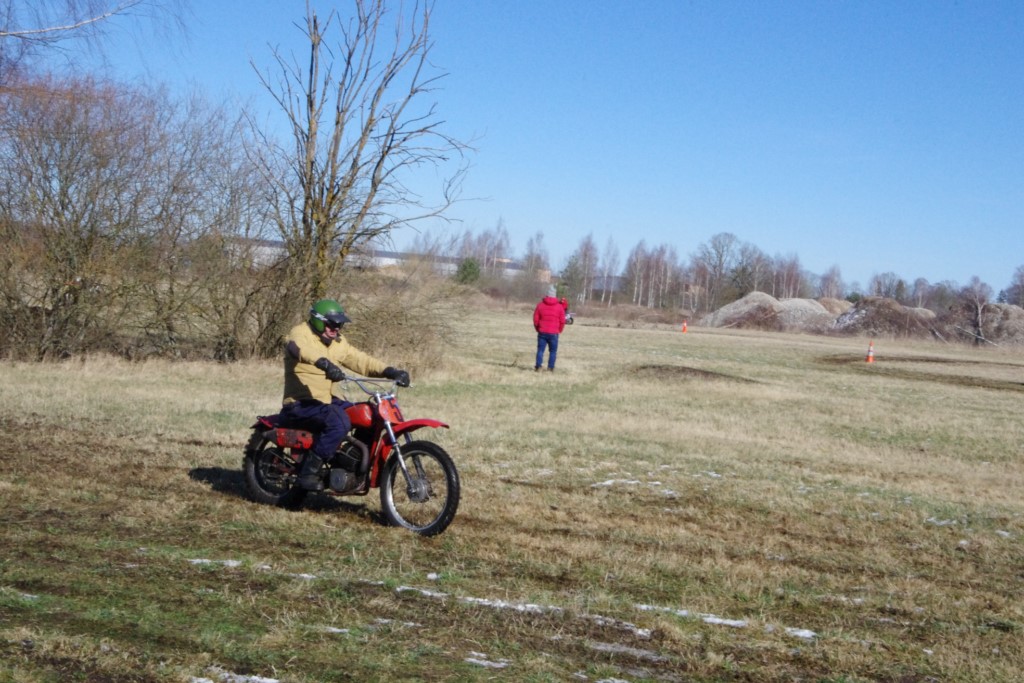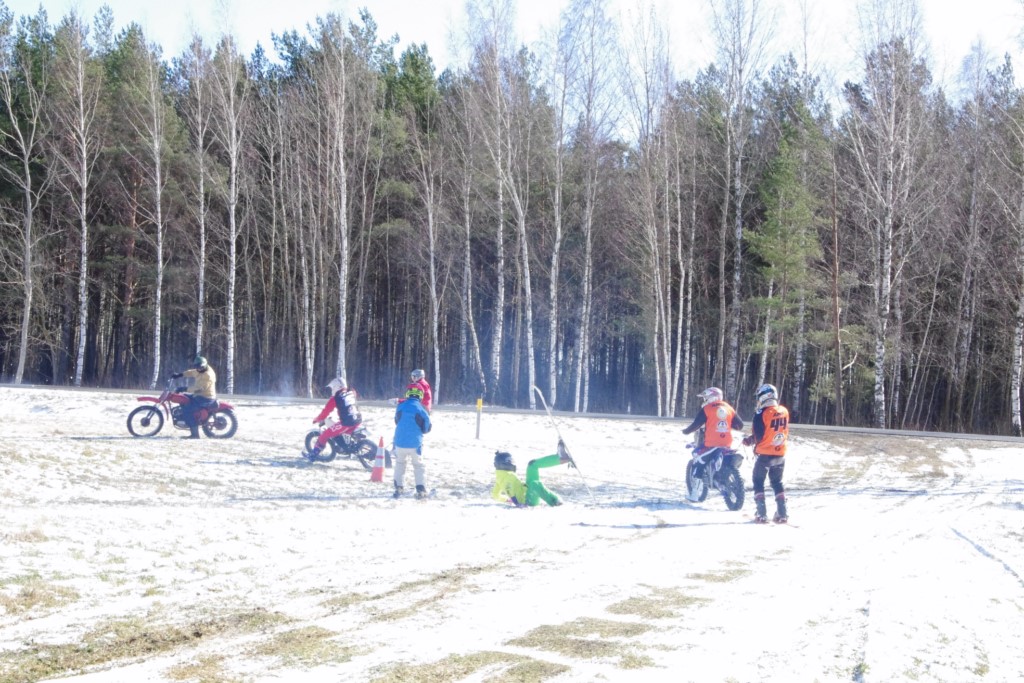 Laiciņu pēc piedalīšanās Korejas TV filmā "Sporta lielvalsts Latvija" mani vajāja doma papētīt tuvāk manis paša filmā nodemonstrēto skijoringa slēpošanu bezsniega apstākļos. 29.02.2020. gadskārtējā Latvijas motosporta veterānu tusiņā šo ideju pastāstīju Jurim Valeinim, un arī viņu šī doma šīgada apstākļos, kuros rudens plūstoši pārgāja pavasarī, ieinteresēja. Domāts, darīts un te, nu, mēs jau trešreiz ampelējamies ar skijoringu Jura pļavā, kurā vēl bik' kaukāds sniega pulveris saglabājies. Šodien saulīte. Divi braucieni pa trīs apļiem katrs. Protams, ka pļava ar pavisam drusku snega piebirumu nav nekāda medusmaize slēpošanai, īpaši ... otrajā braucienā. Bet tas sacensību zibens formāts trīs mazu apļu veidā ir, pat, slēpotājam, ...pat baudāms. Par bezsniega skija slēpošanas teoriju ko bišku uzrakstīju blakus sadaļā.