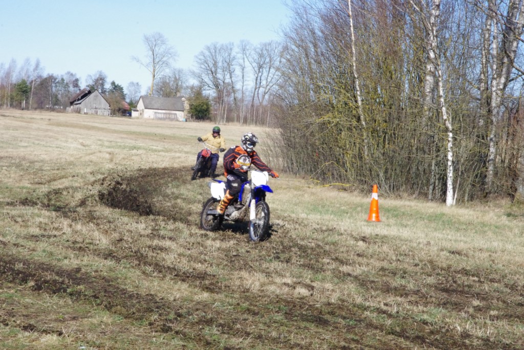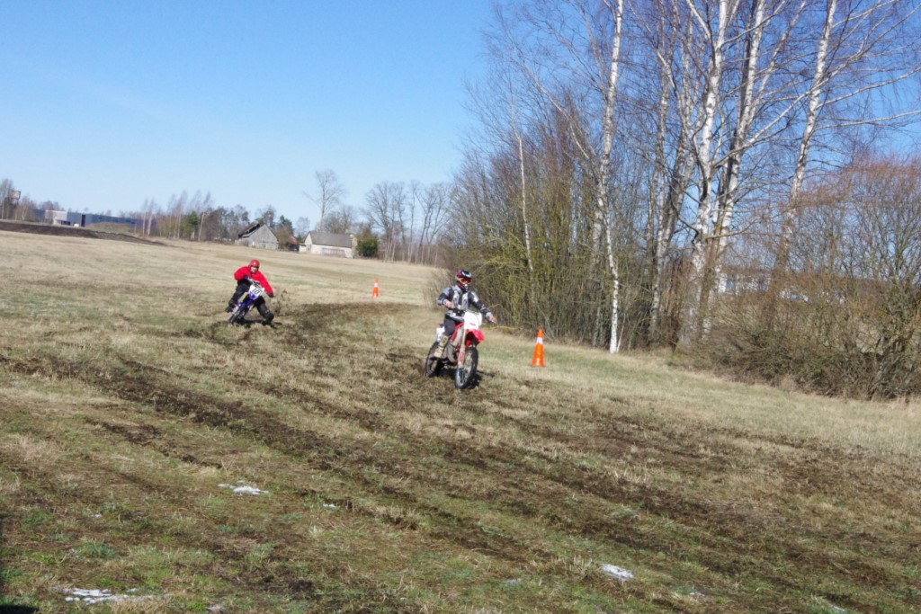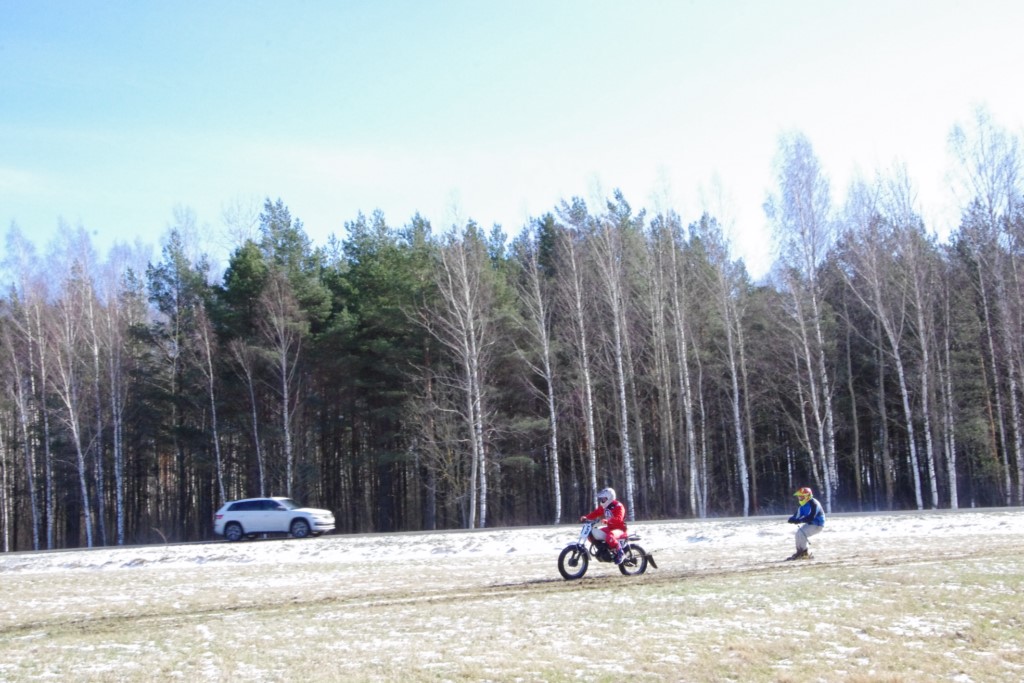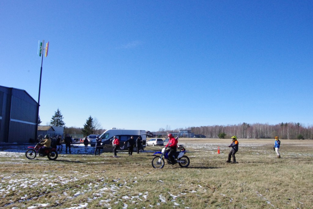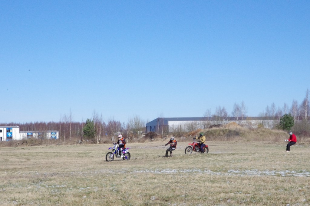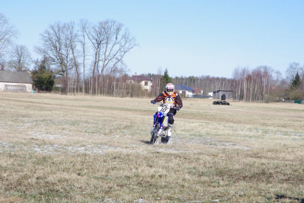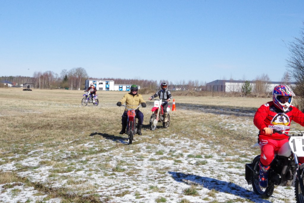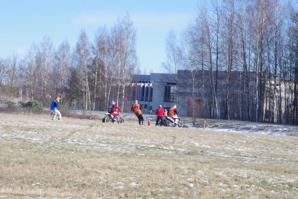 Laiciņu pēc piedalīšanās Korejas TV filmā "Sporta lielvalsts Latvija" mani vajāja doma papētīt tuvāk manis paša filmā nodemonstrēto skijoringa slēpošanu bezsniega apstākļos. 29.02.2020. gadskārtējā Latvijas motosporta veterānu tusiņā šo ideju pastāstīju Jurim Valeinim, un arī viņu šī doma šīgada apstākļos, kuros rudens plūstoši pārgāja pavasarī, ieinteresēja. Domāts, darīts un te, nu, mēs jau trešreiz ampelējamies ar skijoringu Jura pļavā, kurā vēl bik' kaukāds sniega pulveris saglabājies. Šodien saulīte. Divi braucieni pa trīs apļiem katrs. Protams, ka pļava ar pavisam drusku snega piebirumu nav nekāda medusmaize slēpošanai, īpaši ... otrajā braucienā. Bet tas sacensību zibens formāts trīs mazu apļu veidā ir, pat, slēpotājam, ...pat baudāms. Par bezsniega skija slēpošanas teoriju ko bišku uzrakstīju blakus sadaļā.