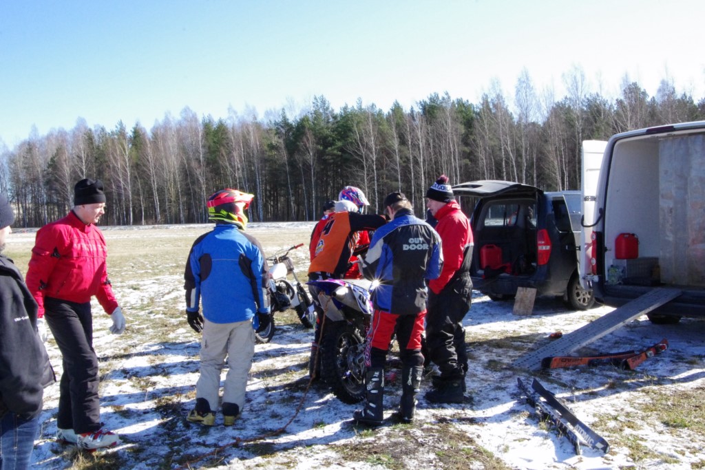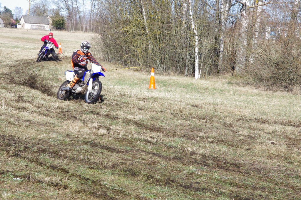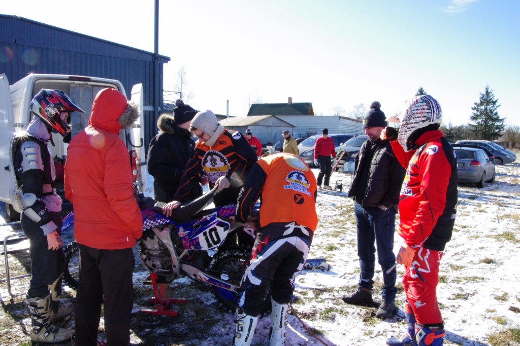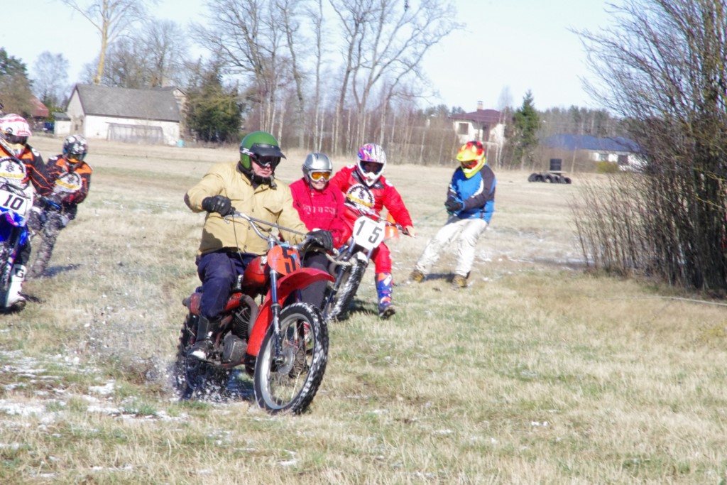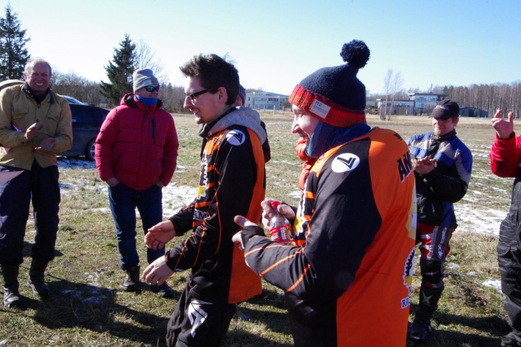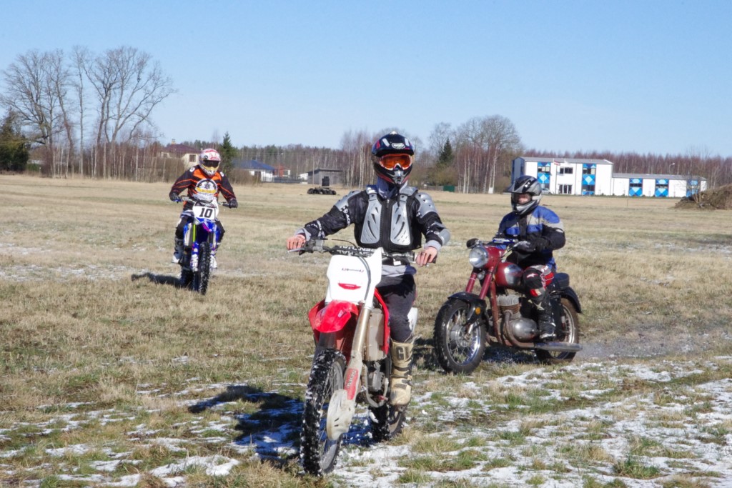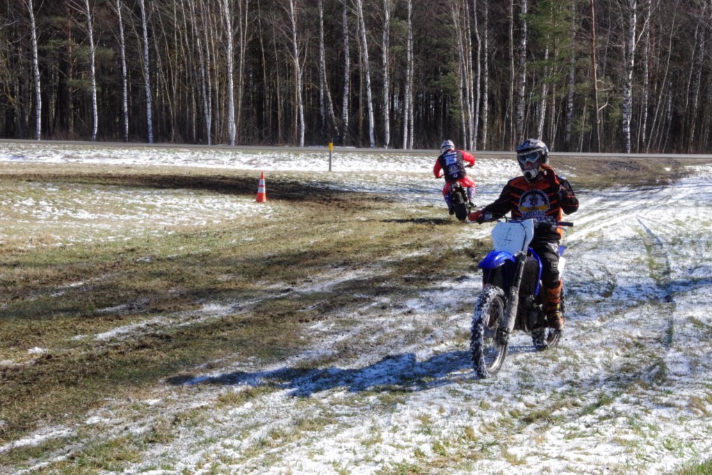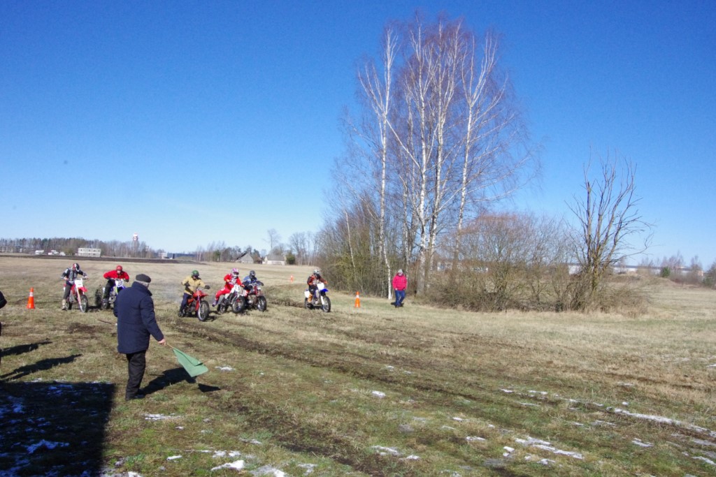 Laiciņu pēc piedalīšanās Korejas TV filmā "Sporta lielvalsts Latvija" mani vajāja doma papētīt tuvāk manis paša filmā nodemonstrēto skijoringa slēpošanu bezsniega apstākļos. 29.02.2020. gadskārtējā Latvijas motosporta veterānu tusiņā šo ideju pastāstīju Jurim Valeinim, un arī viņu šī doma šīgada apstākļos, kuros rudens plūstoši pārgāja pavasarī, ieinteresēja. Domāts, darīts un te, nu, mēs jau trešreiz ampelējamies ar skijoringu Jura pļavā, kurā vēl bik' kaukāds sniega pulveris saglabājies. Šodien saulīte. Divi braucieni pa trīs apļiem katrs. Protams, ka pļava ar pavisam drusku snega piebirumu nav nekāda medusmaize slēpošanai, īpaši ... otrajā braucienā. Bet tas sacensību zibens formāts trīs mazu apļu veidā ir, pat, slēpotājam, ...pat baudāms. Par bezsniega skija slēpošanas teoriju ko bišku uzrakstīju blakus sadaļā.
